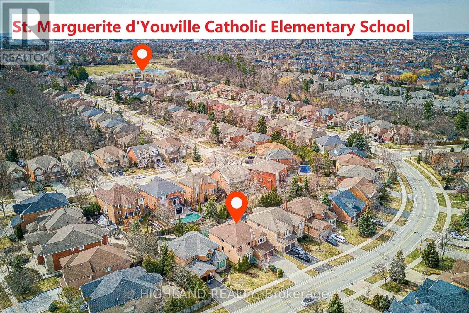 Joshua's Creek/Bayshire Situated on a premium oversized lot in prestigious Joshua Creek, this exceptional 4-bedroom Mattamy home offers over 3,500 sq.ft. of refined family living space * Huge lot around 50x132 feet with a beautiful swimming pool * * Featuring rich cherry hardwood floors throughout and elegant ceramics in the kitchen, foyer, and bathrooms, the home showcases a bright grand foyer and a sophisticated sunken living room. The updated kitchen with solid maple cabinetry and newer windows enhances both style and functionality. The spacious primary suite features a walk-in closet and a luxurious 5-piece ensuite with Jacuzzi tub, while the 4th bedroom includes its own private 4-piece ensuite, ideal for guests or extended family. Two additional well-sized bedrooms complete the upper level. Step outside to a beautifully landscaped, private backyard retreat with mature trees, a patterned concrete patio, and a stunning saltwater pool, perfect for entertaining and summer enjoyment. The interlock driveway adds to the home's impressive curb appeal. * Steps to Upper Joshua Creek school * Located close to top-rated schools, parks, shopping, GO Transit, and major highways. (id:27476)