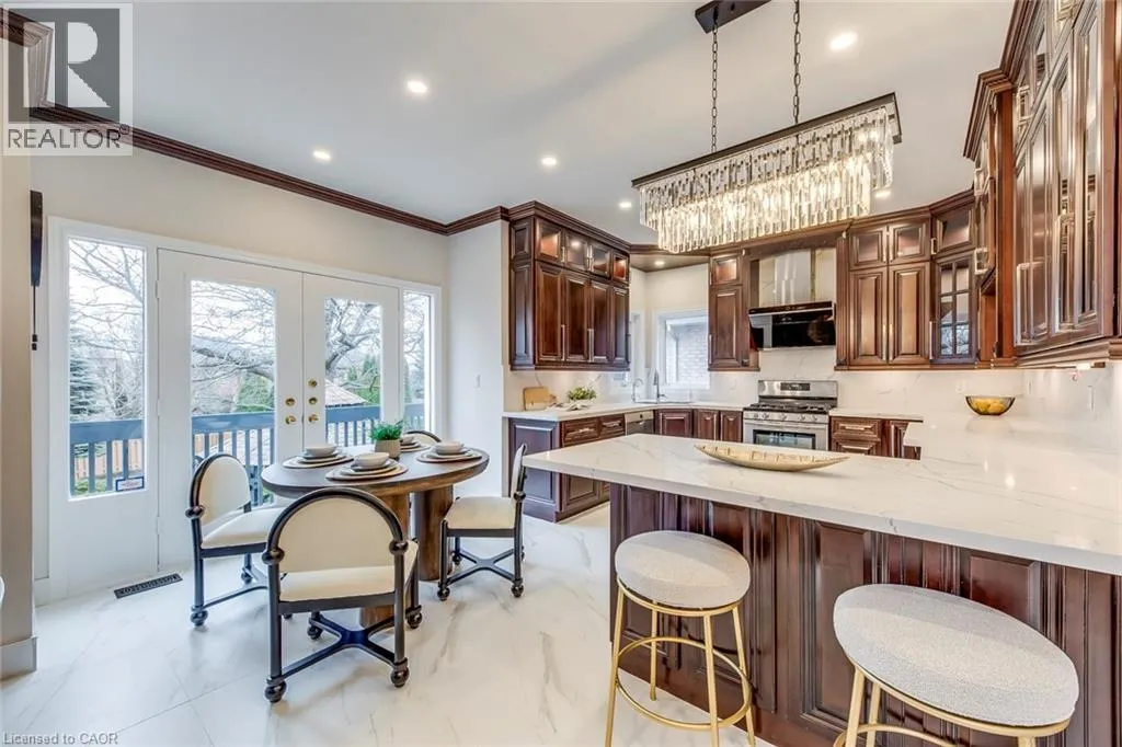 8th Line to Glenashton to Cashey to Galloway Custom-built residence available for lease in the heart of Joshua Creek, offering approx. 4,700 sq. ft. of total living space, including 3,325 sq. ft. above grade, set on a premium 59 x 165 ft. lot with a private in-ground pool. The thoughtfully designed and renovated main level features a welcoming foyer, formal living and dining rooms, and a private office with cathedral ceilingâideal for working from home. The family room showcases soaring ceilings, a fireplace, and oversized windows that fill the space with natural light. The updated kitchen (2020) offers a large centre island, quality cabinetry, premium appliances, and a walk-out to an expansive wood deck overlooking the pool, gazebo, and tranquil ravine setting. A main floor laundry room with garage access and a convenient powder room complete this level. The upper level features a spacious primary suite with a spa-inspired ensuite (2020) and walk-in closet. Additional generously sized bedrooms offer ensuite or semi-ensuite access and overlook the open-to-below family room, enhancing the homeâs sense of space. The professionally finished walk-out lower level (approx. 1,640 sq. ft.) includes a home theatre/recreation room with built-in bar and walk-out to the yard, a separate media room with fireplace, a dedicated music room, a den, full bathroom, cold room, utility space, and ample storageâideal for extended family living. A guest bedroom was added in 2020. The backyard is a private retreat featuring a large deck, gazebo, and beautifully maintained in-ground pool, backing onto mature greenery for exceptional privacy. Located within a highly sought-after school district, including Joshua Creek Public School and Iroquois Ridge High School, and just minutes to highways, shopping, parks, and amenities. A rare lease opportunity in one of Oakvilleâs most desirable communities. (id:27476)