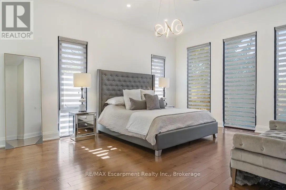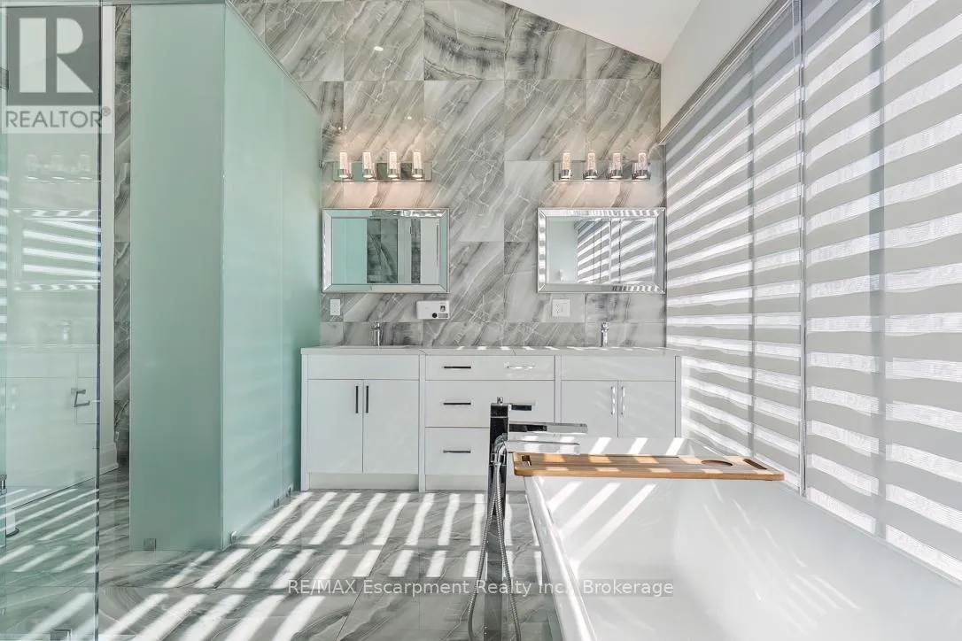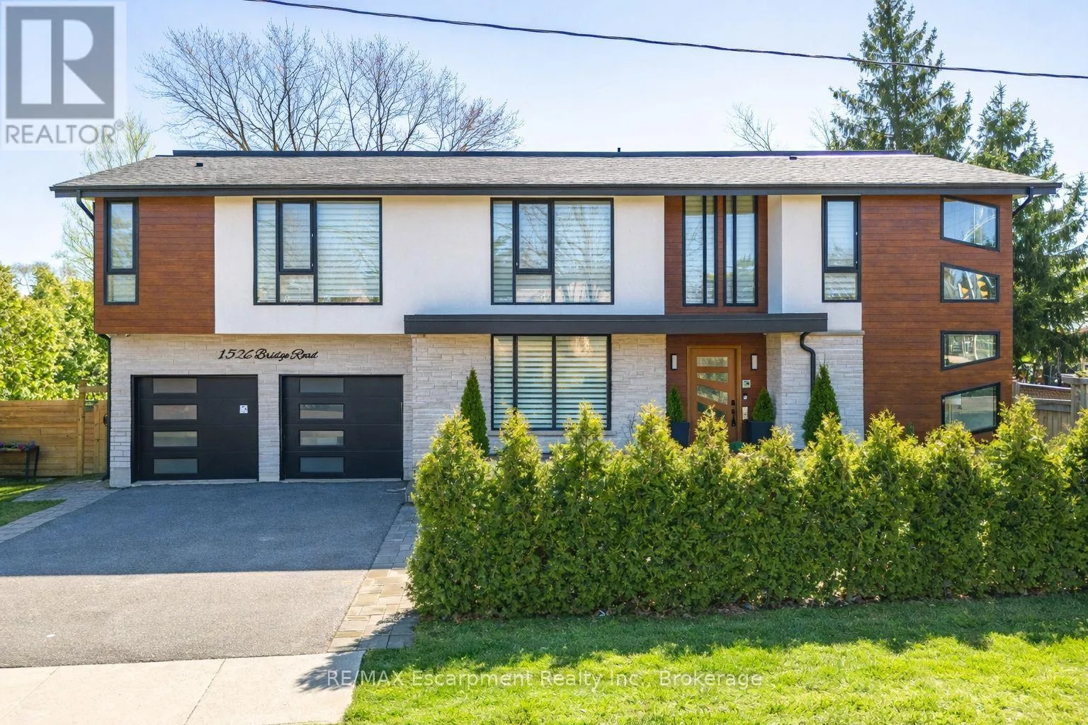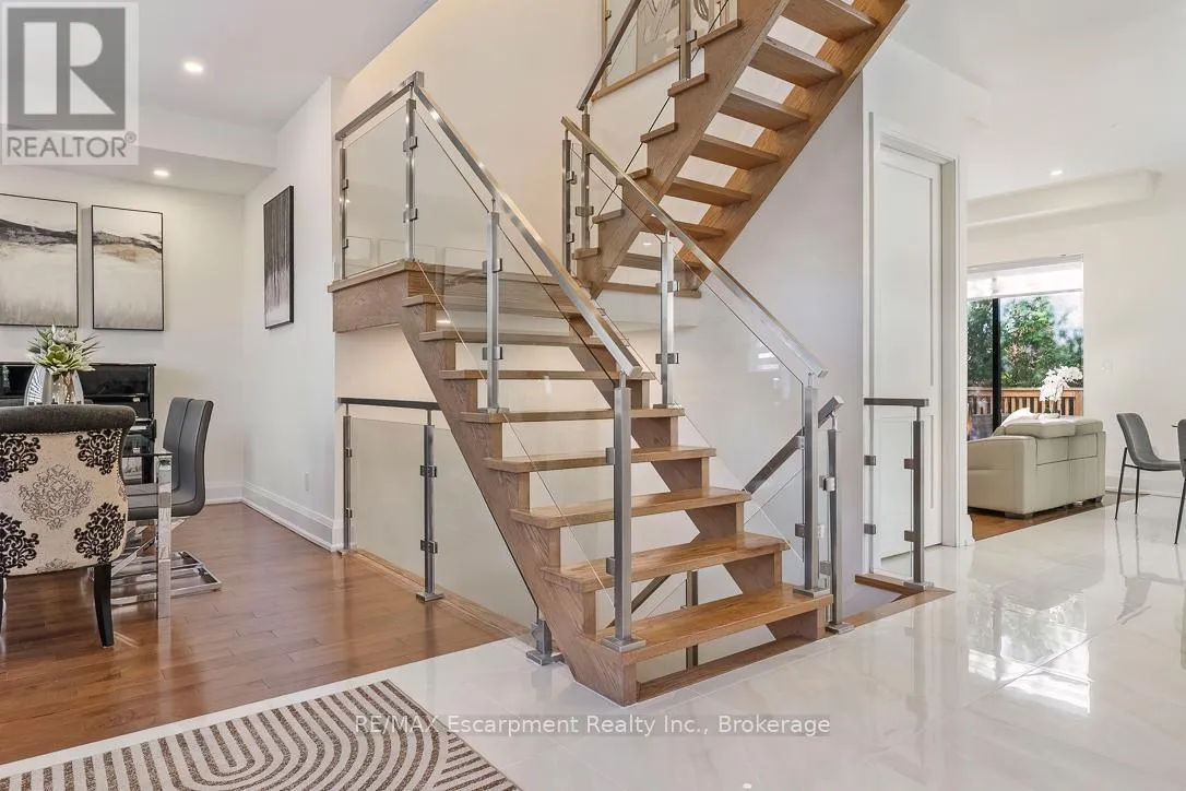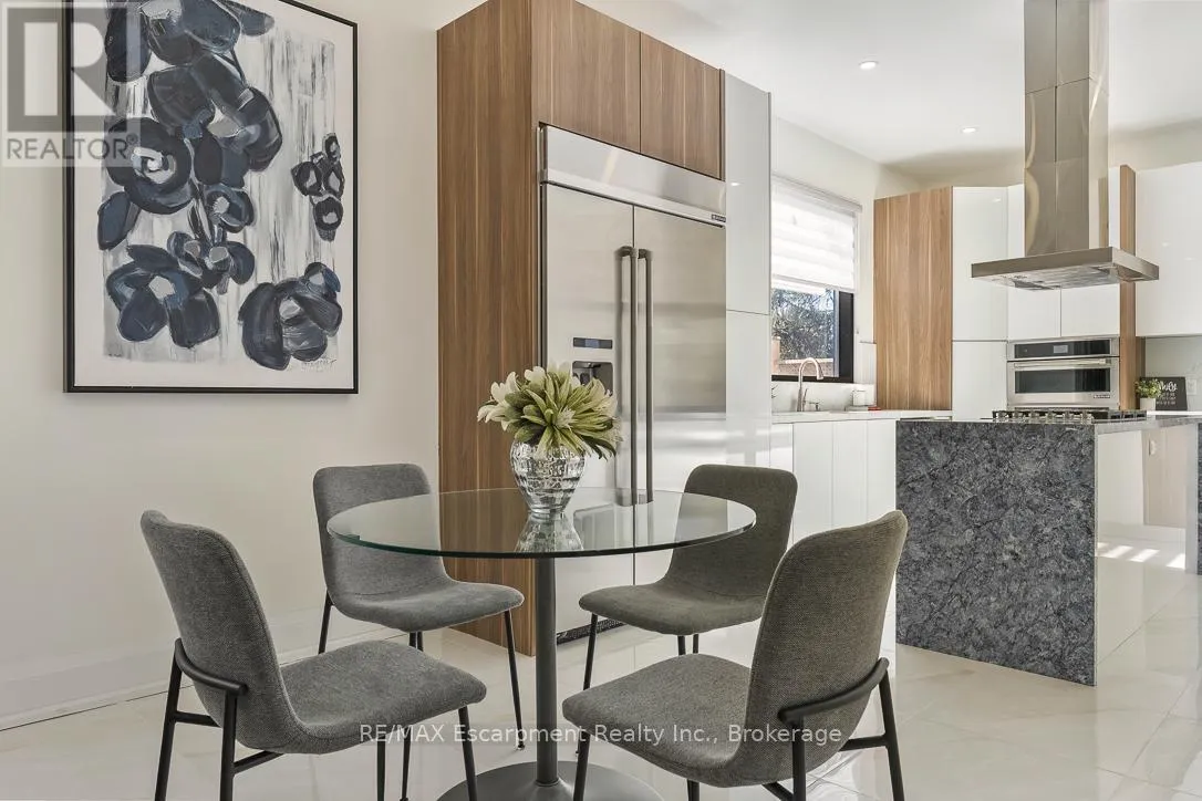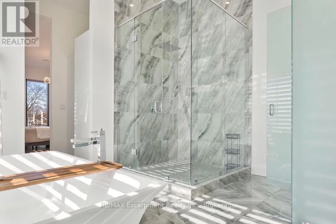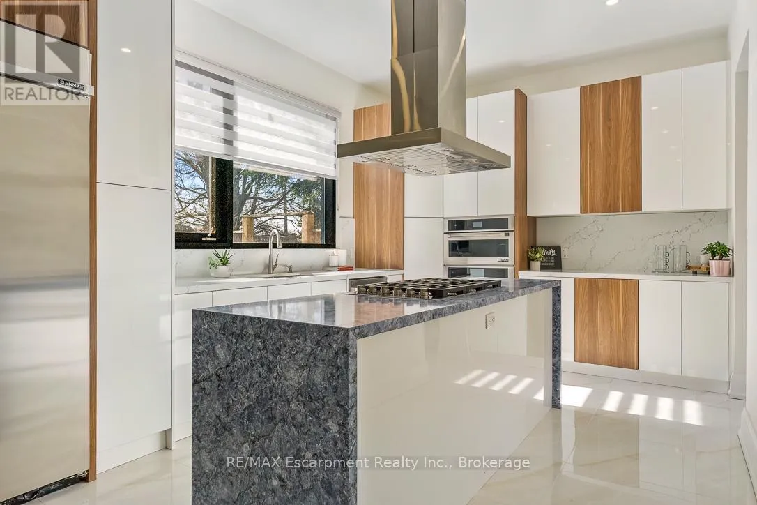 Cross Streets: Bridge Rd and Third Line. ** Directions: Third Line to Bridge Road. Welcome to 1526 Bridge Road, in the highly sought-after West Oakville community. This exceptional custom-built home, completed in 2021, offers approximately 5,000 sqft of thoughtfully designed living space, showcasing modern design and attention to detail. Step into the impressive foyer with soaring 10 ft ceilings and natural light streaming through architectural floor to ceiling windows. The main level features an open-concept layout with elegant living and dining areas, ideal for everyday living. The sleek kitchen boasts premium built-in appliances, a spacious pantry, and a side entrance for easy outdoor access. The kitchen flows seamlessly into the sophisticated great room, highlighted by a striking blue marble slab feature wall with a fireplace. The main floor also includes a functional mudroom with direct access from the double-car garage and a conveniently located laundry room, offering both style and practicality. Ascend the modern staircase with glass railings to the second level, where 12-ft ceilings in the hallway enhance the sense of space. This level offers 5 bedrooms with 10'9 ft ceilings, 4 with luxurious ensuites. The primary suite is a true retreat with separate his-and-hers closets and a spa-like ensuite featuring 12'-ft ceilings, a freestanding soaker tub, oversized glass shower, double vanity, and elegant porcelain tiles with quartz countertops. The fully finished basement features 9-ft ceilings and abundant natural light. Enclosed with frosted glass doors, it's ideal as an income unit, nanny suite, or in-law accommodation, with a full kitchen, bathroom, bedroom, spacious rec area, and a separate side entrance with backyard access. Located with easy access to major highways and top schools, including Appleby College, St. Thomas Aquinas, Oakville Christian School, T.A. Blakelock High School, Brookdale School, and Pine Grove School, this home combines functionality, and thoughtful design-truly a home that must be experienced in person. (id:27476)
