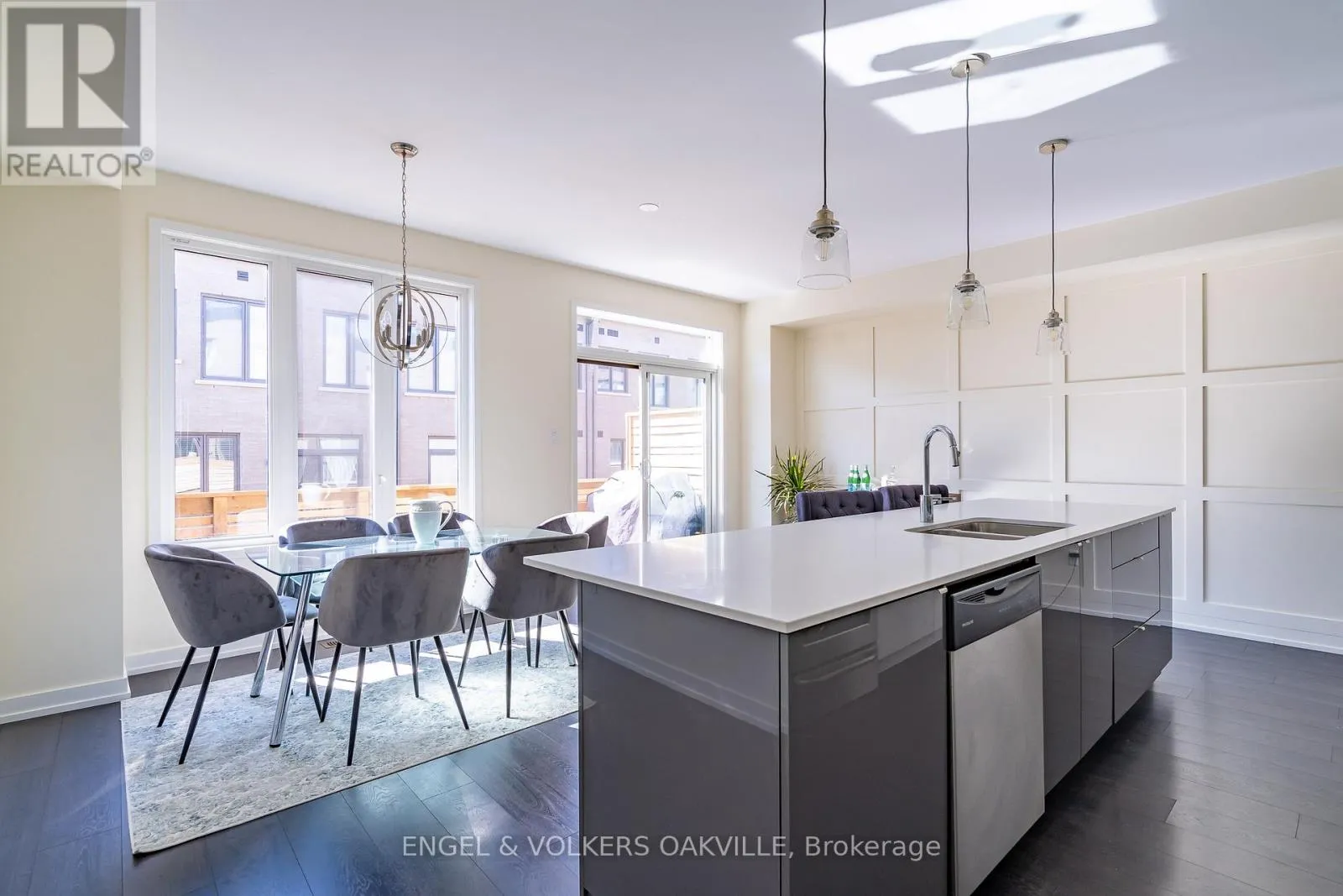 Dundas and Trafalgar Bright and Luxurious 3 Bedroom 2+2 Bath, 2210 sq.ft. townhouse in Trafalgar Landing! This Townhome has been updated throughout; Including high-end theatre room with a massive 120inch screen and projector system, worth over 15k (included). Open concept modern kitchen with Island. S/S appliances. W/O to deck from the dining room. Wide plank wood laminate flooring throughout. A GORGEOUS entertainers Back Yard! (Closed currently for winter). Huge windows on both sides. 9foot ceilings throughout. Large Master Bedroom with Beautiful Ensuite Bathroom & Walk-in Closet. Upper-level Laundry. Walking distance to shopping, restaurants, services & the new Trafalgar Transit Hub. Only a short drive to the Oakville GO Train Station. (id:27476)