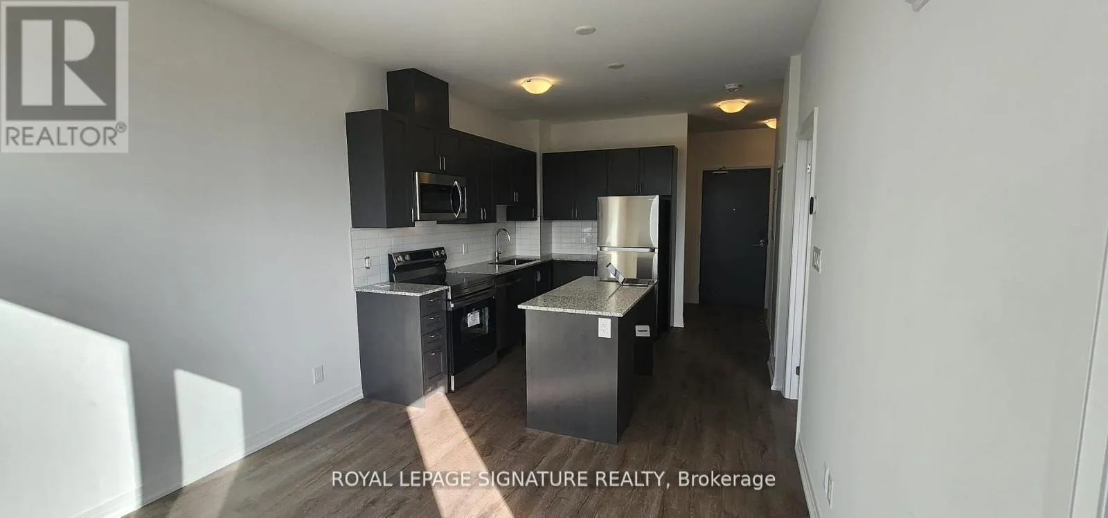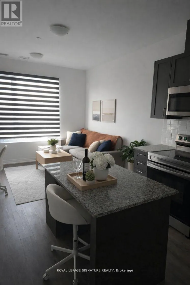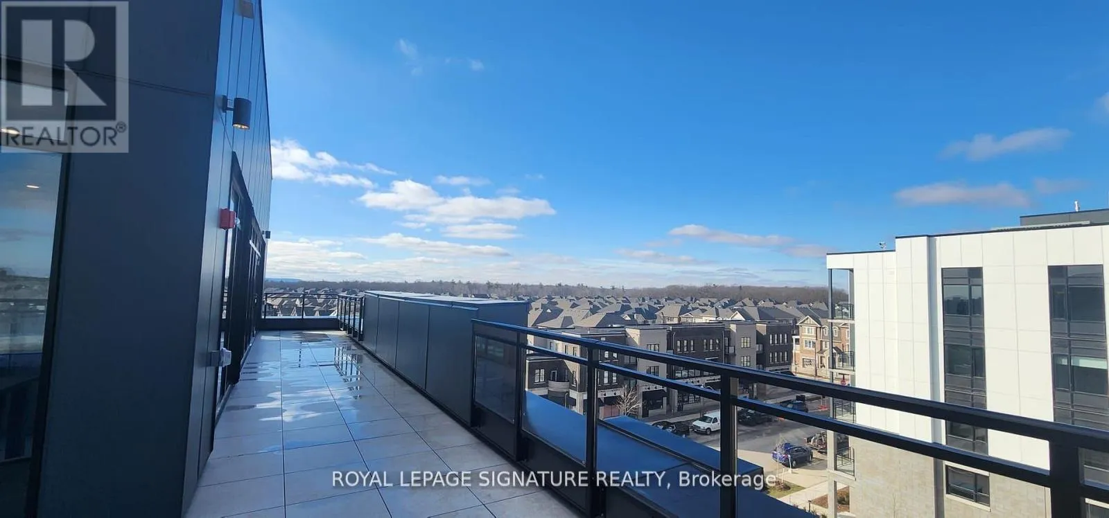 Sixth Line/Dundas St Stunning 1BR + Den Unit in Oakville's Preserve Community. This bright and sunny condo offers modern living at its finest. Located in Oakville's prestigious Glenorchy community, the unit features an open-concept layout, granite countertops, stainless steel appliances, and wide-plank laminate flooring. Enjoy your morning coffee during summer days from your open balcony, and walks around the pond. The bedroom includes a spacious closet, and the den is perfect for a home office or extra living space. Building amenities include a social lounge, rooftop terrace, and fitness studio. The unit also offers digital keyless entry, automated parcel delivery, 24-hour security, one underground parking space, and a locker for added convenience. Located near hospitals, schools, parks, public transit, highways, and shopping, this condo is the ideal place to call home. Book a viewing today! (id:27476)