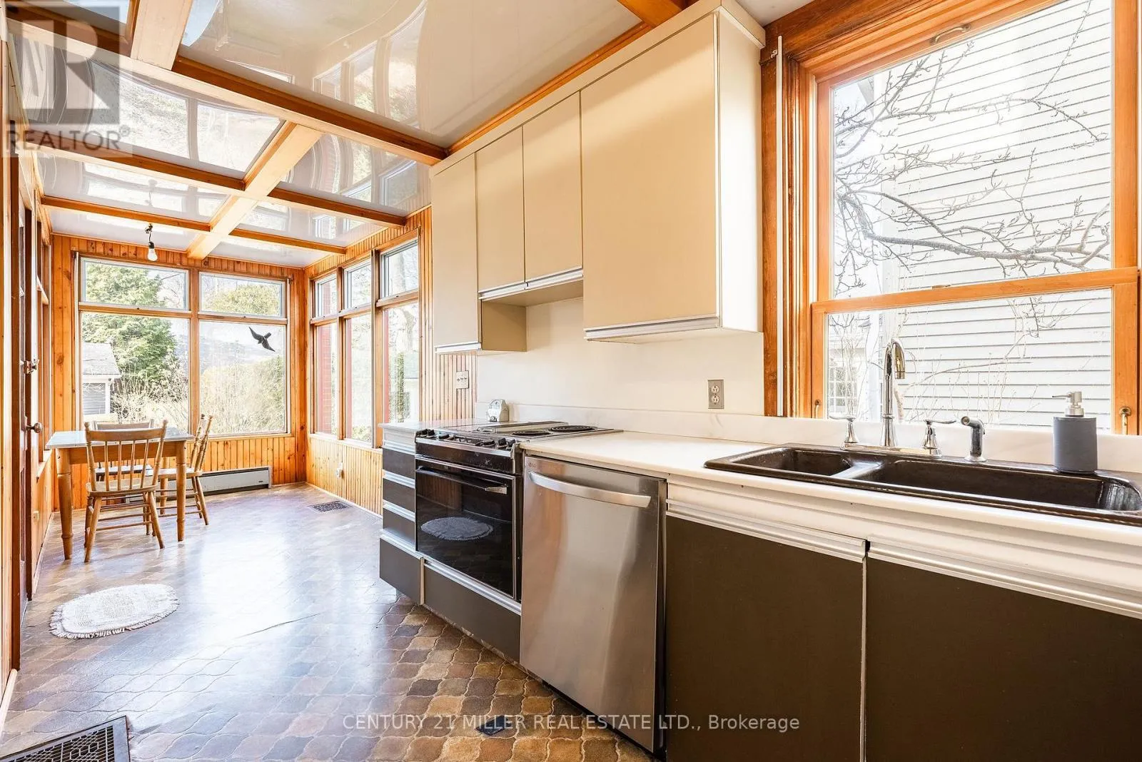 Lakeshore Rd E / Douglas Ave Dating back to circa 1911, this handsome Edwardian brick home offers a lovely blend of period charm and practical updates. Positioned on a west backing 50' x 142' lot, complemented by a newer double car garage - something of a rarity in this coveted pocket - and a welcoming, full-width front porch and back porch, perfect for relaxing and greeting passerby's. Inside, you'll find hallmarks of its era: notably high ceilings, nicely proportioned principal rooms and original millwork that lends a warmth throughout. Offering four well-sized bedrooms, alongside a finished attic complete with its own bathroom and loads of finished storage space. Key updates include most windows replaced in 2009, furnace/air conditioning and tankless hot water 2014. Central vac and a contemporary metal roof 1998 backed by a 50-year warranty, offering both peace of mind and a pleasing architectural contrast. With over 2,500 sq ft above grade, this property represents an exceptional opportunity in the heart of Old Oakville. Tucked along the south end of Douglas Ave, the setting offers mature trees and a quiet street yet is only a short stroll from the lake, downtown and nearby schools. While well maintained, the home presents an exciting canvas for those with vision, a chance to renovate and elevate a genuine heritage property. For buyers drawn to character and location, this is a rare offering, not least given the inclusion of a double garage. An enticing opportunity for a new family ready to make it their own! (id:27476)