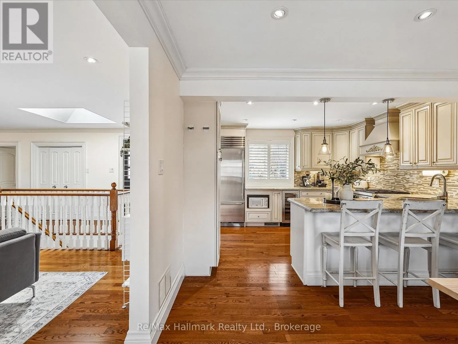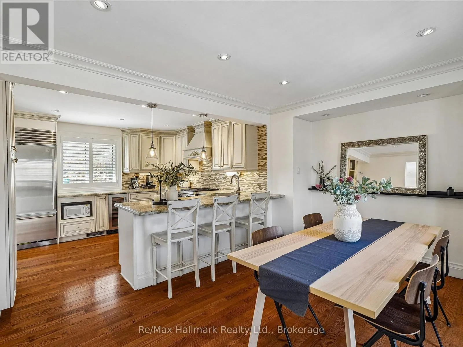 Cross Streets: Lakeshore/Morrison. ** Directions: Lakeshore Rd E & Baldwin Dr. Nestled in the heart of prestigious Morrison, this fabulous bright open-concept bungalow sits on an exceptional 0.35-acre premium lot backing onto tranquil Morrison Creek and fronting onto Lawson Park-offering a rare "Muskoka-like" setting just moments from downtown Oakville, Gairloch Gardens, and the lake. This beautifully maintained 3+2 bedroom residence features a spacious living room with a wood burning fireplace and an effortless flow into the dining area, where a walkout leads to a private balcony overlooking lush gardens and an inviting in-ground swimming pool. The gourmet kitchen is equipped with premium Sub-Zero refrigeration, Sub-Zero wine fridge, and a Wolf gas stove-perfect for both everyday living and entertaining. The primary suite offers a renovated ensuite, while California shutters throughout enhance both elegance and privacy. Newly upgraded broadloom flooring extends through the bedrooms and into the fully finished lower level, which features a large recreation room with gas fireplace, two additional bedrooms (or office/den), a self-contained kitchen, laundry, and a 3-piece bath with heated floors-ideal for an in-law or nanny suite. A tiled walkout provides seamless access to the backyard oasis. An extra-long, updated asphalt driveway accommodates parking for 8+ vehicles. Located within a top-tier school district and directly across from a park, this rare offering combines natural beauty, luxury, and convenience in one of Oakville's most sought-after neighbourhoods. (id:27476)