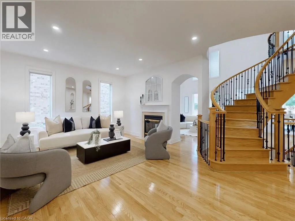 Arrowhead Rd/Gamble St/Lyndhurst Dr MOVE BEYOND THE STANDARD in Oakvilleâs prestigious Joshua Creek. This refined 4,200+ SF residential asset is a masterclass in architectural volume and intentional flow. Engineered for grand-scale entertaining, the residence opens to a soaring double-height foyer and a curved staircase, leading into a light-filled living space anchored by a sophisticated two-sided gas fireplace. The formal dining room features custom coffered ceilings, while the chef-inspired kitchen and breakfast room offer a seamless transition to the private porch and rear grounds. STRATEGIC LAYOUT & DESIGN A secondary staircase provides direct lower-level access, complemented by a dedicated mudroom/laundry and abundant storage solutions. The upper gallery leads to a primary suite designed as a private sanctuary, featuring a spa-caliber ensuite and dual walk-in closets. Three additional oversized bedrooms offer unparalleled versatility, including a semi-ensuite and a private ensuite with a custom window bench. PREMIER LOCATION & ACCESS Positioned within the catchment of Ontarioâs top-tier institutionsâJoshua Creek Elementary and Iroquois Ridge SSâthis property offers proximity to elite golf clubs, tranquil trail systems, and rapid transit/highway corridors (403/QEW/407). Experience the intersection of luxury and logic. Move Beyond the Search. (id:27476)