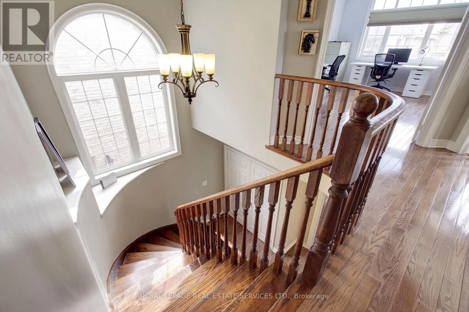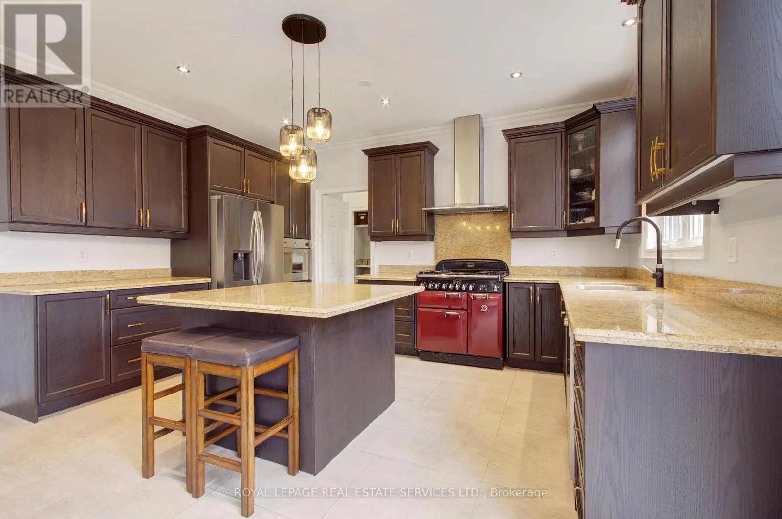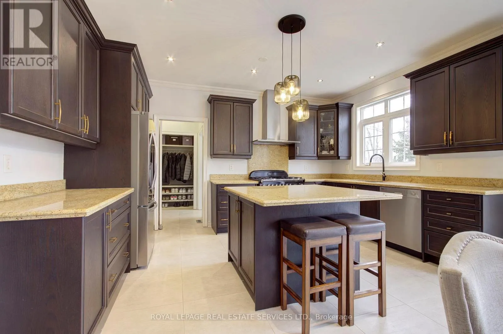 Cross Streets: Bronte Rd. / Richview Blvd. ** Directions: Bronte Rd. / Richview Blvd. / Wuthering Heights Way. Welcome to 2219 Wuthering Heights Way, a spectacular executive home in prime Bronte Creek. Backing directly onto a lush ravine and surrounded by nature trails, this property feels like a private cottage retreat. This stunning 5-bedroom home offers over 5,300 sq ft of refined living space across three levels, plus an incredible backyard oasis. The traditional centre hall design impresses from the moment you enter, featuring a soaring two story foyer with a Juliette balcony, a circular richly stained oak staircase, and generous use of matching hardwood and imported porcelain tile. The main floor includes a spacious office flooded with natural light, an open-concept family room overlooking the resort-style backyard and a jaw-dropping gourmet kitchen. The oversized chef's kitchen boasts professional stainless steel appliances, a built-in wall oven, an AGA professional range, granite counters, extended upper cabinets, and a large island - perfect for entertaining. It flows into a bright breakfast room with million-dollar ravine views. Additional main floor features include an elegant powder room, a mudroom with custom shelving off the double garage and laundry facilities. Upstairs, you'll find a rare true 5-bedroom layout with three full bathrooms. The primary suite offers ravine views, a lavish ensuite and a custom walk-in closet. The fully finished basement features an open oak staircase, two separate recreation areas, a games room, a contemporary gas fireplace, an entertainer's wet bar, a dedicated gym and a 3-piece bathroom. Outside, the custom-landscaped grounds are breathtaking, with a Pioneer pool featuring double sheer-descent waterfalls, a cabana/pool house and beautiful hard and soft landscaping - all backing onto a mature forested ravine. A truly exceptional home not to be missed! (id:27476)