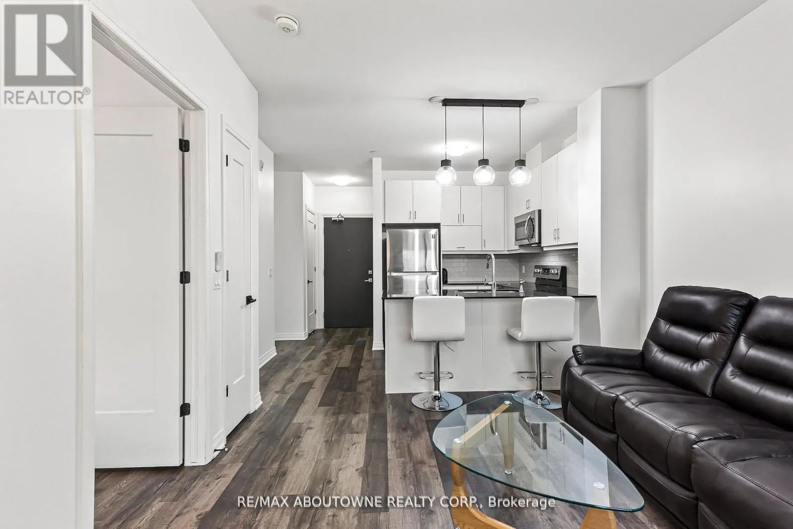 Trafalgar and Dundas Welcome to Bower Condos by Mattamy Homes, located in the vibrant Uptown Oakville community. This beautifully upgraded 1-bedroom plus den suite offers an exceptional blend of comfort and style, complete with a spacious private terrace ideal for relaxing or entertaining. With a low maintenance fee of just $297.00 per month, which includes heat, this unit offers excellent value and carefree living. Inside, you'll find sophisticated laminate flooring throughout, an upgraded kitchen layout with premium cabinetry and quartz countertops, and a stylish bathroom featuring modern vanities and upgraded tile work. The bright, south-facing exposure allows for an abundance of natural light to fill the space, while mirrored bedroom closets and convenient in-suite laundry add to the comfort and functionality of the home. Residents of Bower Condos enjoy access to a wide range of amenities, including a well-appointed party room, a welcoming social lounge, a fully equipped gym, and beautifully landscaped outdoor areas with seating and a children's play area perfect for social gatherings or a casual afternoon picnic. Ideally located close to shopping, Oakville Hospital, public transit, schools, parks, and plazas such as Oakville Place, this home also offers easy access to major highways including the 407, 403, and QEW. Nearby conveniences include GO Transit, Walmart, Canadian Tire, Superstore, and Sheridan College all just minutes away. This is an exceptional opportunity to live in one of Oakville's most desirable communities. (id:27476)