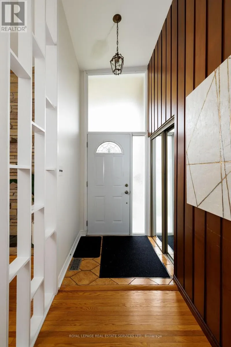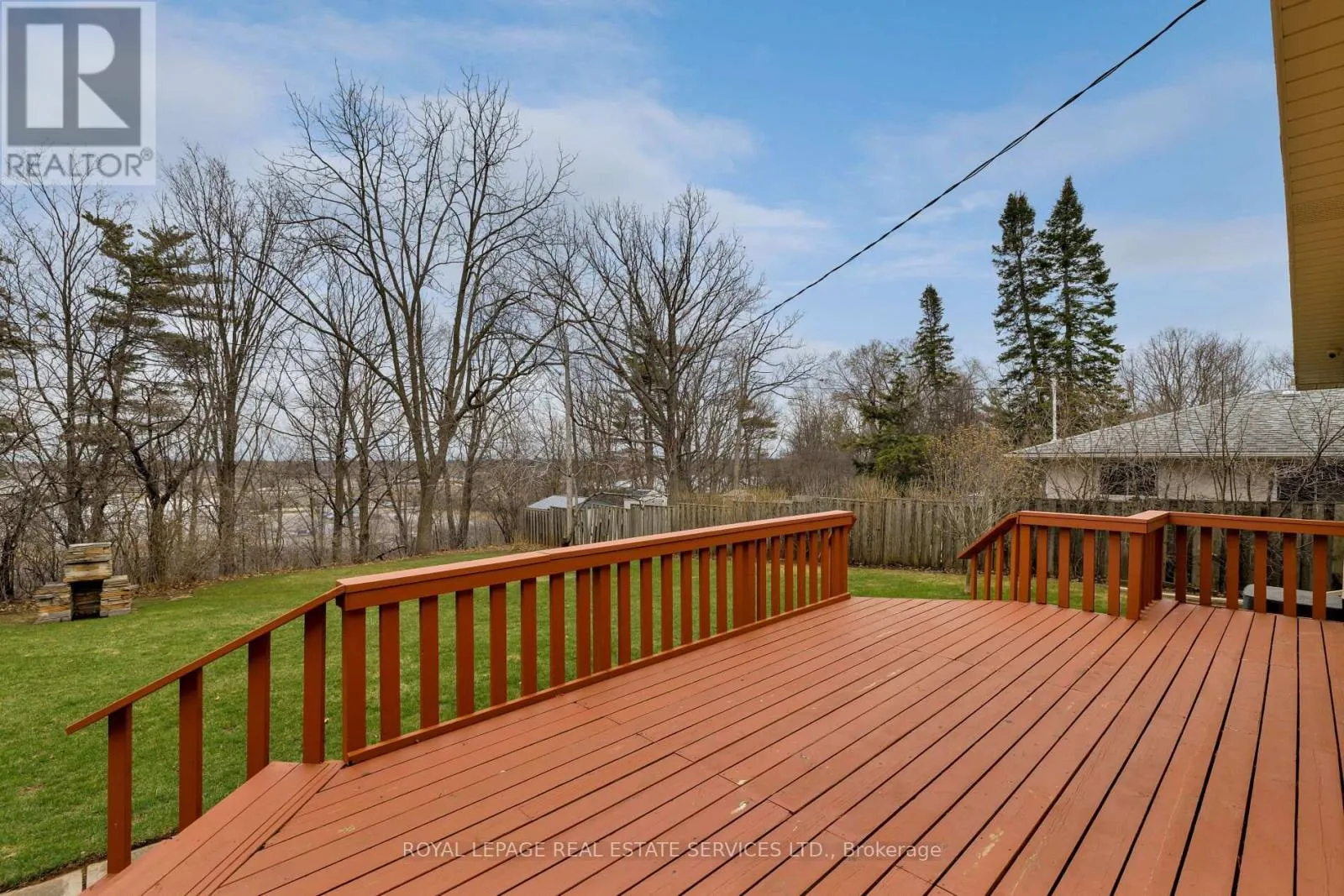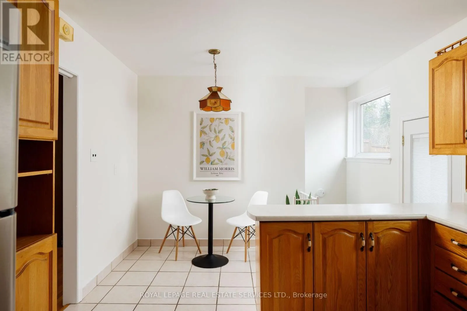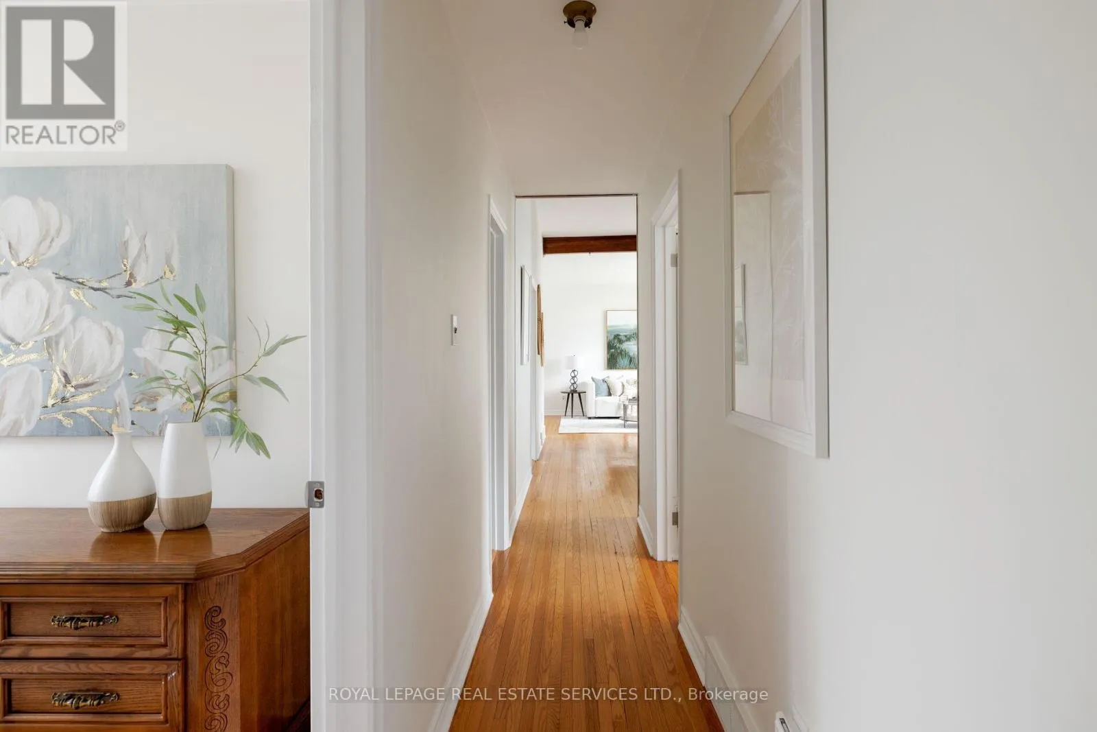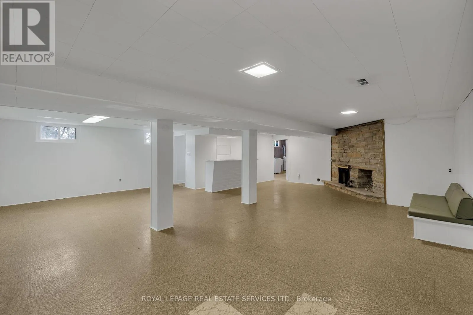 8th Line- Falgarwood Dr (near Elgin) Perfect choice in sought-after Falgarwood! This charming 3-bedroom bungalow is set on a rare premium 93' frontage with a deep, private lot backing onto lush woodlands-offering a peaceful, nature-inspired setting that is increasingly hard to find in Oakville. Located in a mature, established neighbourhood surrounded by scenic parks and trails, this home delivers both tranquility and everyday convenience. Just minutes to Upper Oakville Shopping Centre for groceries, dining, and daily essentials, close to Oakville Place Mall, and with quick access to the QEW/403 and Oakville GO Station, the location is ideal for commuters and families alike.Beautifully maintained with inviting curb appeal, the property features an oversized driveway accommodating up to 6 vehicles, plus a double car garage. Mature trees create a private backyard retreat, where a spacious deck offers the perfect setting for outdoor relaxation or entertaining. Inside, the home showcases unique architectural details including cathedral ceilings, two wood-burning fireplaces, and hardwood flooring with updated baseboards throughout the main level.The L-shaped living and dining area is ideal for both formal entertaining and relaxed family living. The bright kitchen offers ample cabinetry, stainless steel appliances, and a cozy breakfast area with walkout to the freshly painted deck and serene backyard. The main floor includes three well-proportioned bedrooms, all with hardwood flooring, a 4-piece bathroom, and a private 2-piece ensuite in the primary bedroom.The finished lower level expands the living space with a freshly painted, oversized recreation room complete with a built-in bar-perfect for hosting gatherings or creating a comfortable family retreat. A wonderful opportunity to own a solid bungalow on a premium lot in one of Oakville's most established and desirable communities. (id:27476)