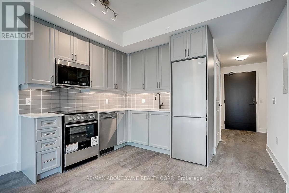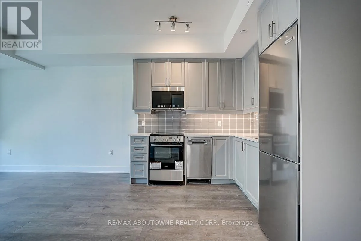 Cross Streets: Bronte/Dundas. ** Directions: Bronte Rd To Khalsa Gate. Bright and spacious 1-bedroom + den condo with 2 full bathrooms and 596 sq. ft. of living space! This modern home has an open layout with stylish stainless steel appliances and a sleek kitchen. Floor-to-ceiling windows bring in lots of natural light and offer beautiful views from the living area and balcony. The primary bedroom has a built-in closet and private bathroom access. The den is perfect for a home office or extra bedroom. The building offers top-notch amenities, a party room, cooking areas, a rooftop resistance pool, and a cutting-edge fitness center. Minutes from QEW, Highway 407, and Bronte GO Station. Close to Oakville Hospital, parks, trails, schools, groceries, and restaurants. Utilities to be paid by the tenant. (id:27476)