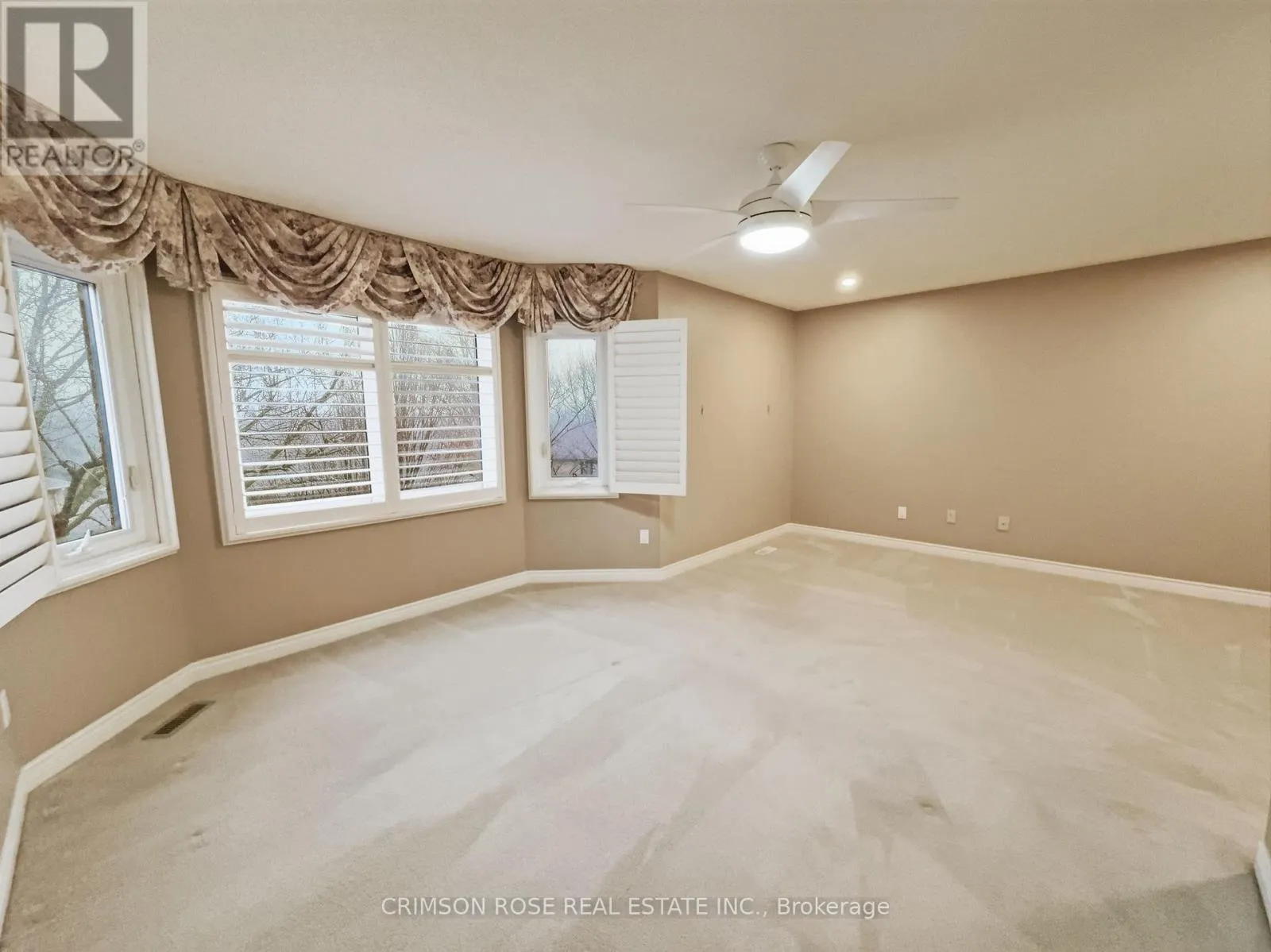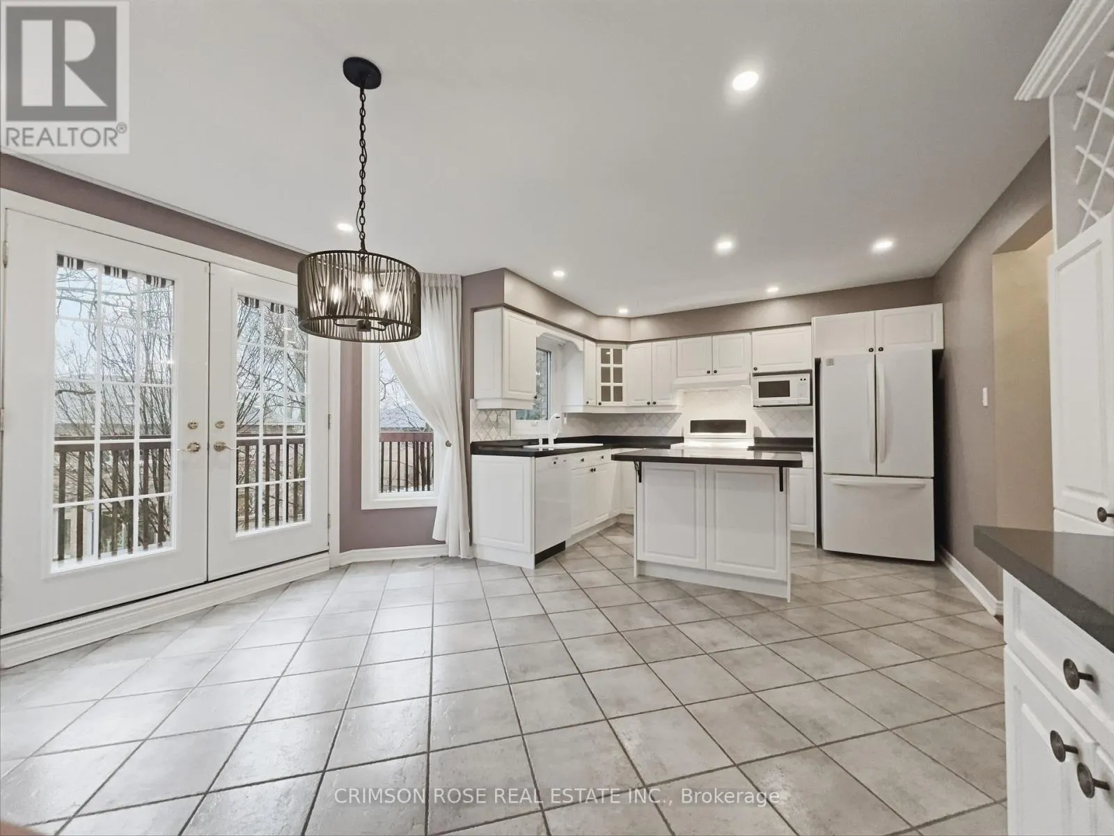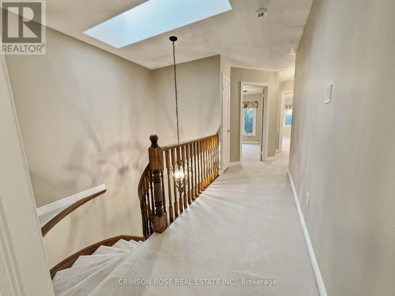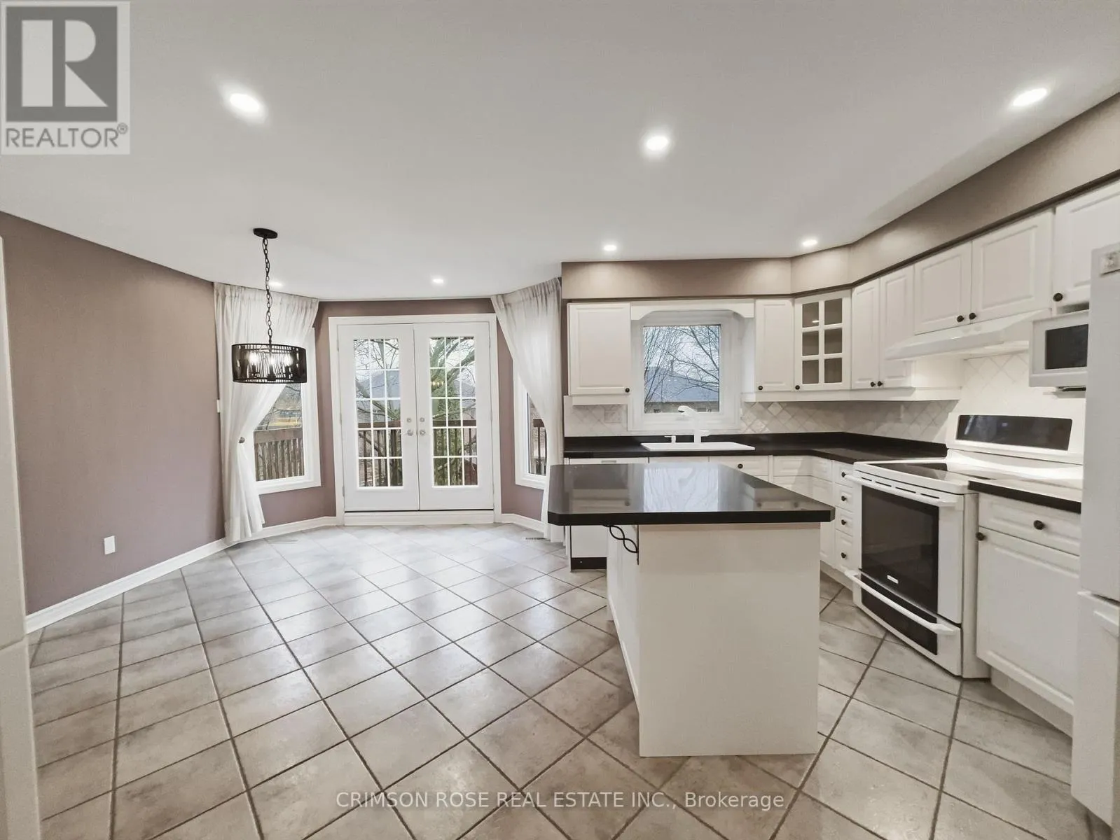 Heritage Way & Kings College Dr Fantastic link home in the coveted community of Glen Abbey. Meticulously maintained 3 bedroom, 3 bathroom home offers close to 2000 sq ft living space. Main level deck overlooks the lovely backyard. Gleaming hardwoods grace the main floor and complements the elegant crown moulding. Fabulous large formal living room and separate dining room perfect for family or large gatherings. Bright white kitchen cabinetry and breakfast area features quartz, granite countertops, breakfast bar and high-end appliances. Delightful kitchen French doors lead to balcony retreat complete with retractable awning. Upstairs features a spacious primary bedroom suite with extended sitting area plus two more generously sized bedrooms. The 5 piece ensuite has a glass-enclosed shower, quartz countertops and a jetted soaker tub. Single car garage with tiled garage floor for easy clean up plus single driveway accommodating 3 parking spaces. Walking distance to Abbey Park High School, Heritage Glen Public School. Just minutes to the Glen Abbey Community Centre, Glen Abbey Golf Club, top notch schools, shopping, a huge network of trails, abundance of parks and of course the iconic Monastery Bakery. Easy access to Highway and GO station. Everything you need to live your best upscale suburban life! Don't miss this gem! Only Main level and Second Level for lease. Basement is not included. Tenant Pays 70% of the cost of all utilities. Available Immediately! ** This is a linked property.** (id:27476)