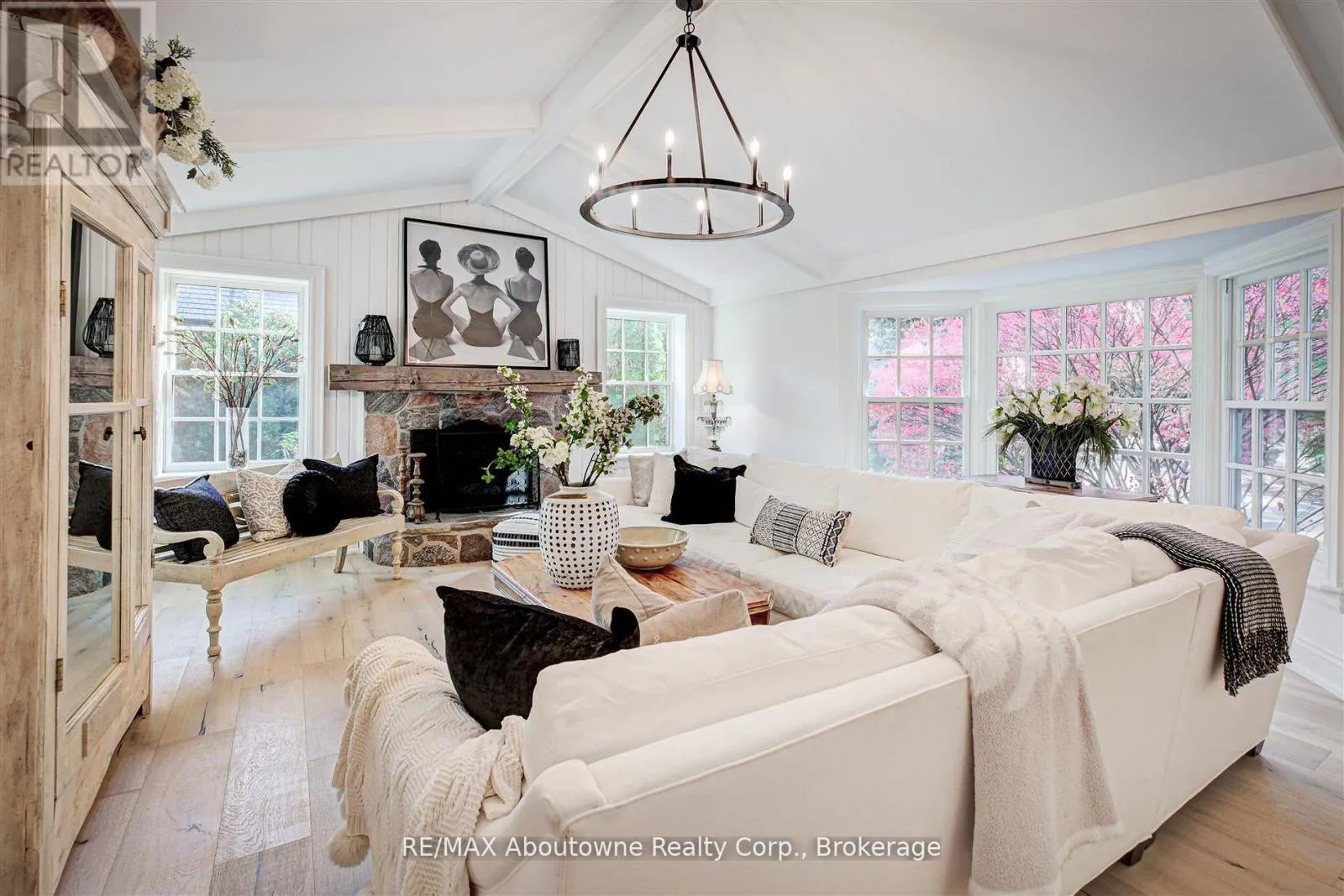 Lakeshore Rd E to Gloucester Transitional Elegance in the Heart of Olde Oakville. A rare property on one of the community's most coveted streets. Experience refined living in this exceptional residence- set on a triple lot over 1/2 acres with an impressive 154.73 ft frontage, curated for those who value privacy, design and indoor-outdoor living at its finest. Beautifully reimagined in 2024, the main level showcases a sophisticated blend of transitional elegance and casual upscale comfort, perfect for both everyday living and effortless entertaining. A Main Floor Redesigned for Modern Luxury. Step inside to wide-plank oak hardwood floors, luxurious finishes, and stunning sightlines to the property's park-like grounds. The brand-new designer kitchen is a true showpiece, featuring: Main kitchen+ second "messy kitchen" for concealed prep, storage, and small appliances. Silk granite farmhouse sink with brushed gold gooseneck faucet and gold hardware accents throughout.- Oversized picture window overlooking the gardens. Square island with integrated fridge/freezer drawers. Quartz countertops & full-height backsplash in both kitchens. Built-in wine/beverage station. Dedicated coffee bar. A walk-out from the dining room and a large picture window open to views of the serene screened-in sun porch, creating a seamless flow for indoor-outdoor enjoyment. The magnificent great room features dramatic cathedral ceilings, a stone wood-burning fireplace (forced-air assist) with aged beam mantel, and wiring/rough-ins for a full theatre- quality sound system. A second walk-out continues to the sun porch- offering year-round enjoyment framed by nature. Flexible living spaces: Third floor loft/suite ideal for guests, teens, studio or office.4+1 bedrooms, 4 bathrooms, and over 5200 sq ft of total finished living space. Finished basement with heated floors in media room (or current gym). Dust-free heat system with individually controlled room zones. **Remarks continued in Attachments (id:27476)