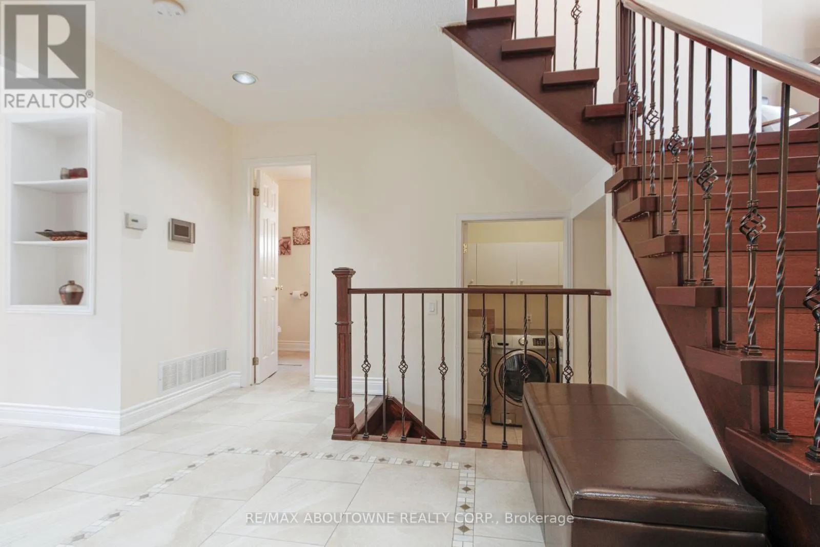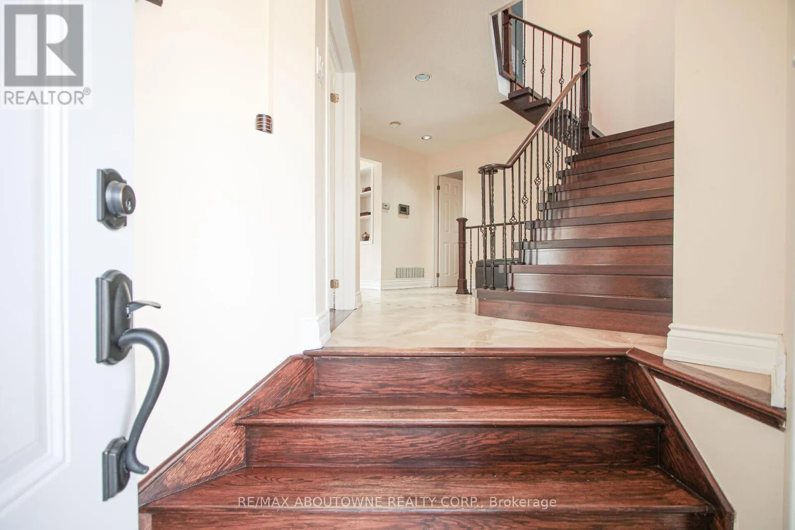 Cross Streets: Trafalgar / Glenashton. ** Directions: Trafalgar Rd / Glenashton Dr. Located in the highly desirable River Oaks community of Oakville, this well-maintained 4-bedroom detached home with 3 pc BATHROOM on GROUND FLOOR, offers an exceptional blend of comfort, thoughtful updates, and everyday convenience including a reverse osmosis system adding an extra touch of quality for drinking water.The main living spaces were fully updated in 2016, including the maple wood kitchen, flooring, and stairs-creating a modern, functional layout ideal for both daily living and entertaining. The second-floor family room, complete with a cozy fireplace and abundant natural light, provides the perfect retreat for relaxing evenings.Upstairs features generously sized bedrooms, including a spacious primary suite with a private ensuite and his-and-hers closets. Recent upgrades include a newer front entrance door (approx. 2 years), garage and patio doors (2024), and updated patio tiling in both the front and backyard (2024). Outdoor highlights continue with a pool featuring a new liner (2024) and a driveway updated in 2020/2021.Ideally located near scenic trails, parks, shopping, major highways Highway 403 & Highway 407, and Sheridan College, this home delivers the perfect balance of lifestyle and location. (id:27476)