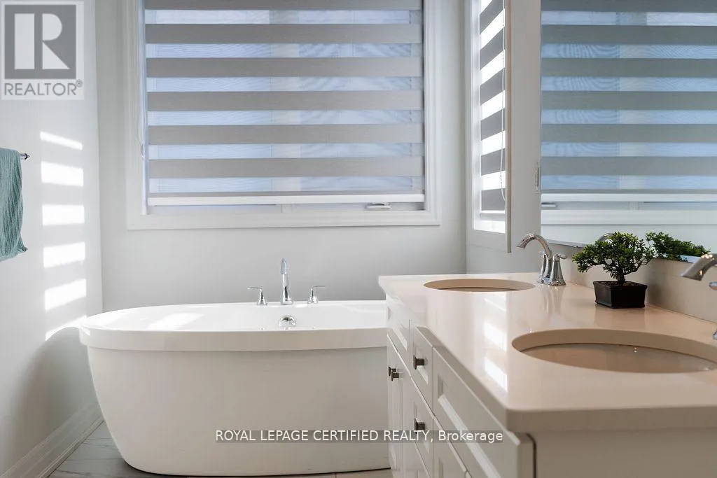 Cross Streets: Ninth line and dundas. ** Directions: google map. Welcome to this stunning one-year-old detached home sitting on premium lot In front of pond and scenic trail in the highly sought-after Upper Joshua Creek community of Oakville. As you step inside, the main floor impresses with 10-foot ceilings, creating a bright and open living space. The modern kitchen features quartz countertops, a large island, premium cabinetry, and stainless steel appliances - perfect for family living and entertaining. The second floor offers 4 spacious bedrooms, including a luxurious primary suite with a walk-in closet and a spa-like ensuite. Enjoy the fully fenced backyard, ideal for kids, pets, and summer gatherings. Side entrance to the basement waiting for your touches. This home combines contemporary design, quality finishes, and a prime location close to top-rated schools, parks, shopping, and major highways. (id:27476)