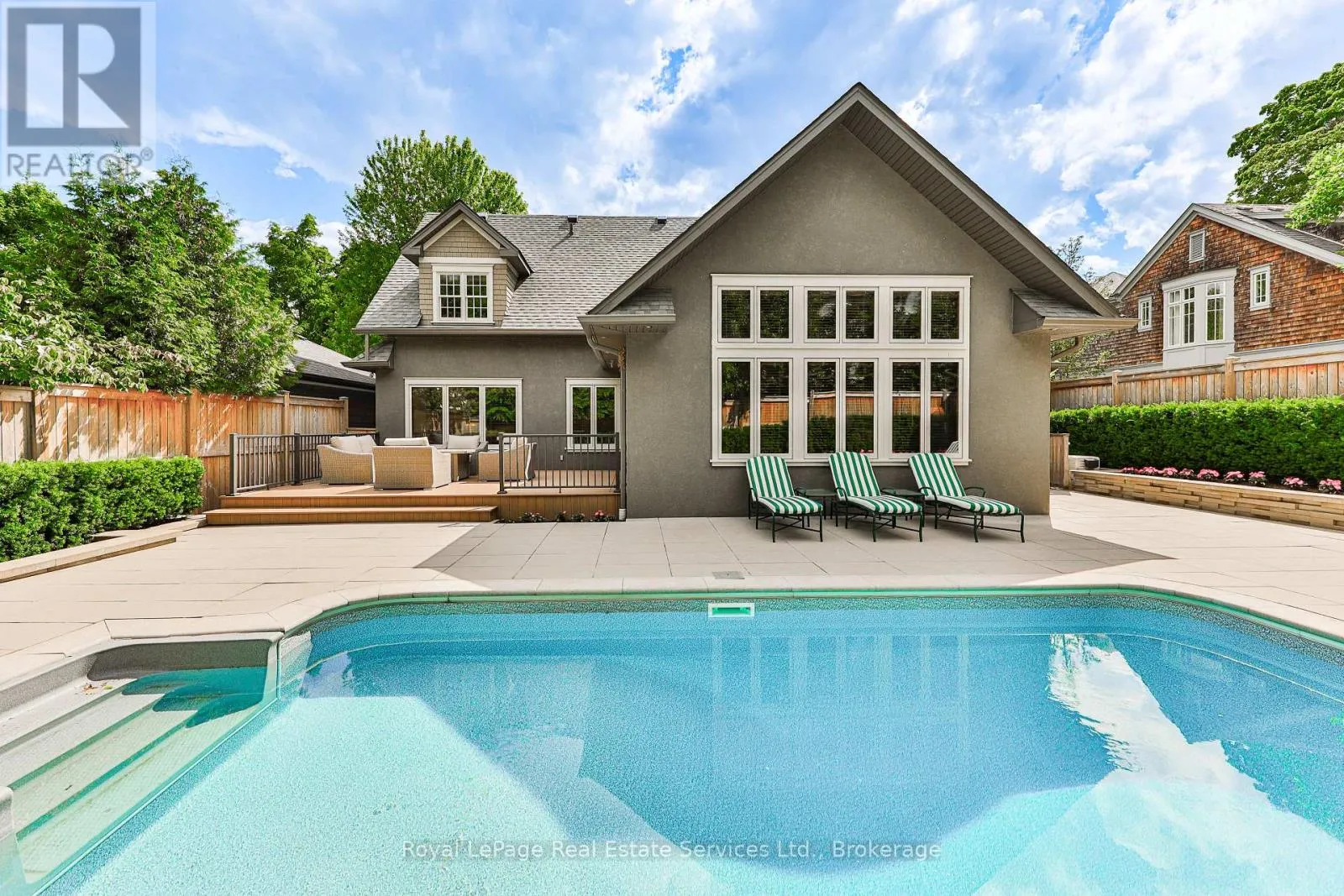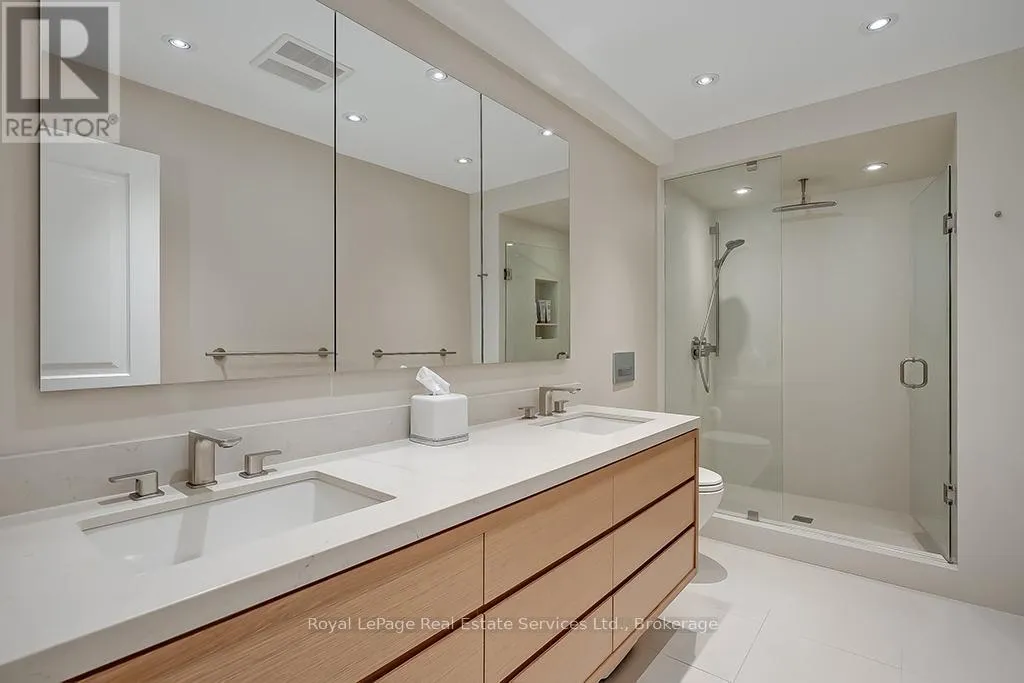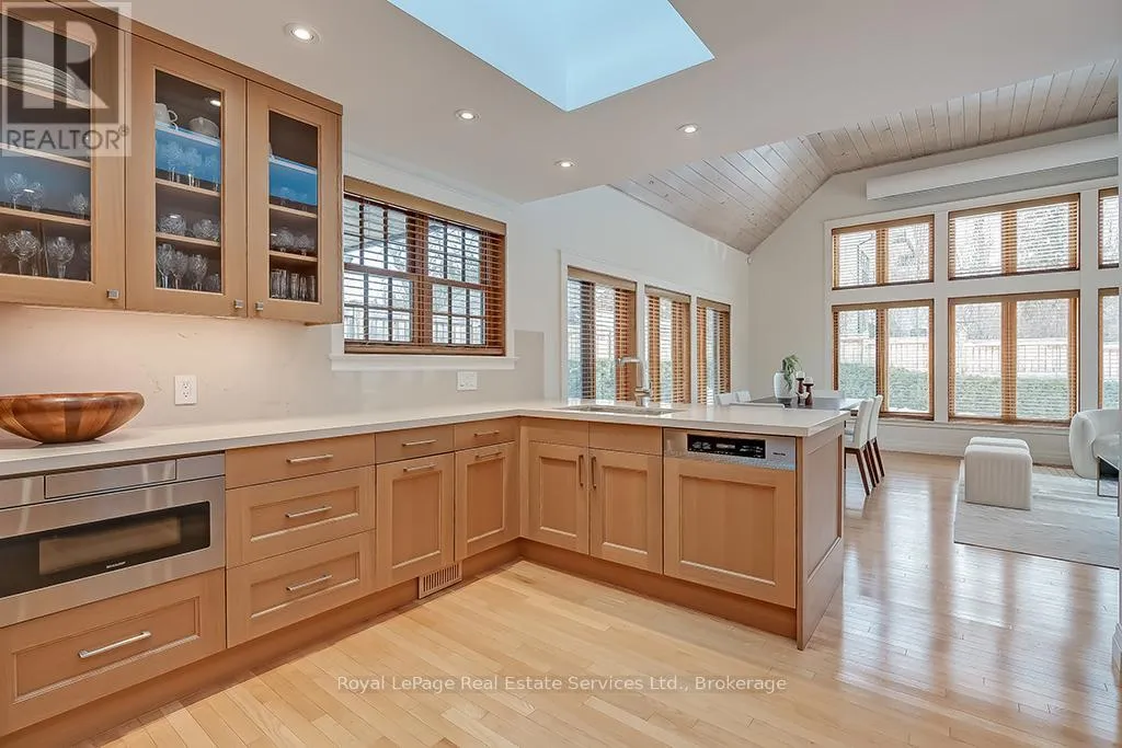 Allan St/Lakeshore Rd This beautiful turn-key residence offers the rare combination of contemporary finishes and conveniences all within steps of the Waterfront trail and Downtown Oakville. This beautifully maintained bungaloft-style residence with nearly 3000SF above-grade living space features a main floor Primary suite & main floor Laundry with the bonus of 2 additional bedrooms and bathrooms on the second floor. Gracious front entry hall with hardwood floors leads through to the Great Room and Kitchen. The top-of-the-line Downsview kitchen with quartz counters and slab backsplash,48" Wolf range, full height SubZero Fridge & separate set of Freezer Drawers, Miele Dishwasher. Breakfast bar overlooks the Great Room with massive vaulted ceiling encompassing an informal Family Room & Dining Area. The top-of-the-line windows and doors features electronic remote Hunter Douglas louvered blinds. This room can be transformed at night into at state-of-the-art movie room with retractable projection screen. Main floor Den/Office. Primary suite with walk-in closet and renovated ensuite Bathroom, dual sinks and large glass shower. Upstairs find a bright open concept reading nook, two large bedrooms and an additional 1 1/2 Bathrooms, offering excellent space for family and guests. The lower level is finished and is ideally suited for storage, recreation and/or hobby space. Attached garage with epoxy flooring and inside entry. Family Room walk-out to new composite deck overlooking the private, fully landscaped garden with in-ground pool. This impeccably designed and easy to maintain property is sure to impress. Don't Miss (id:27476)