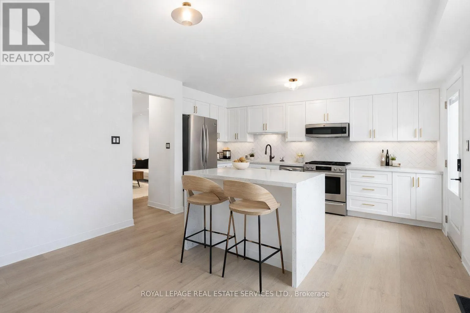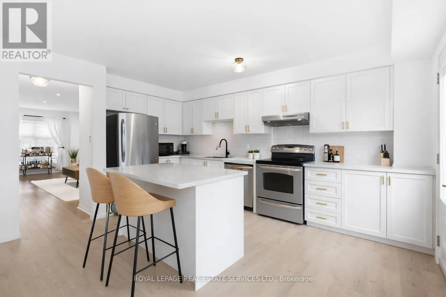 Westoak Trails Blvd & Postmaster Dr Located in Oakville's highly sought-after Westmount neighbourhood, this spacious and well-designed 2-storey townhouse offers the perfect blend of comfort, style, and everyday convenience on a quiet, family-friendly street. The bright open-concept main floor features a welcoming living room with a large window, pot lights, and hardwood flooring, while the dining area overlooks the backyard and flows seamlessly into the kitchen. Thoughtfully designed for both daily living and entertaining, the kitchen is equipped with a large centre island, stainless steel GE appliances, ample counter space, tile backsplash, abundant wood cabinetry, and a convenient walkout to the backyard. Upstairs, the generously sized primary bedroom offers a walk-in closet, a stylish accent wall, and a beautifully renovated 3-piece ensuite with a stand-alone shower. Two additional bedrooms are well-sized and feature hardwood flooring, complemented by a renovated 4-piece main bathroom. All three bathrooms in the home have been thoughtfully updated, adding a fresh, modern feel throughout. The basement includes a practical laundry room with washer, dryer, and laundry sink. Enjoy being within walking distance to parks, scenic trails, shopping, and restaurants, with easy access to public transit and major highways including the QEW, 403, and 407. Oakville Trafalgar Memorial Hospital is just minutes away, and families will appreciate access to top-rated schools nearby. A wonderful opportunity to enjoy a well-appointed home in one of Oakville's most desirable family communities. Some photos have been virtually staged. (id:27476)