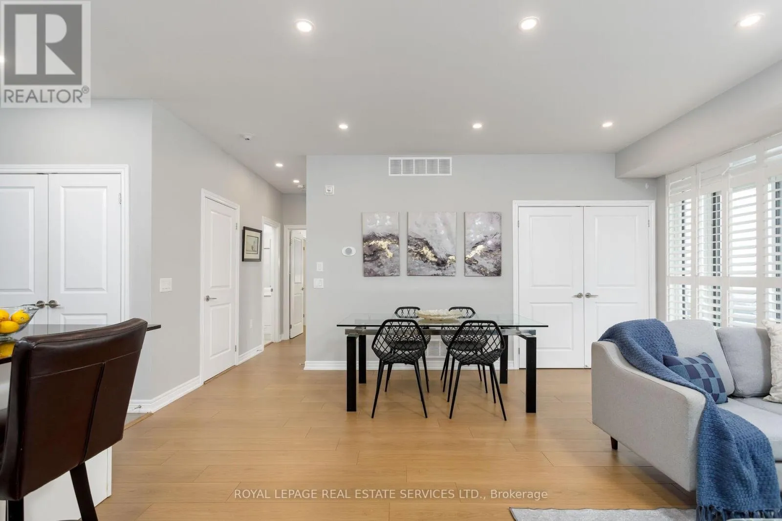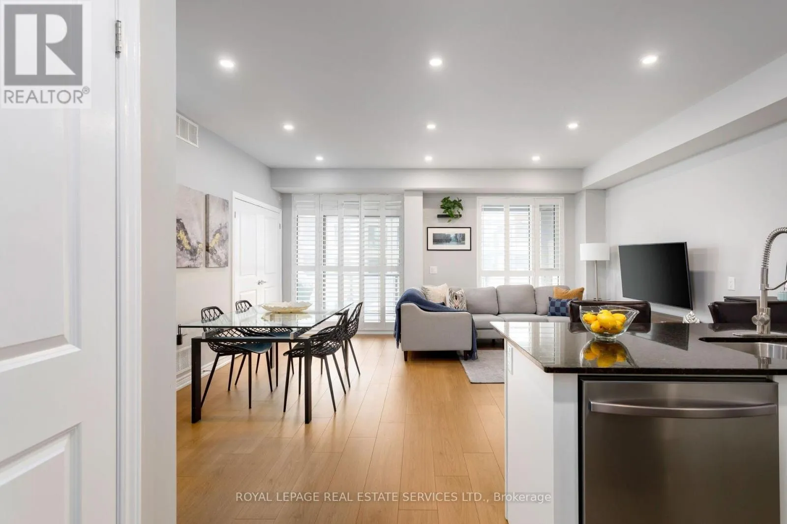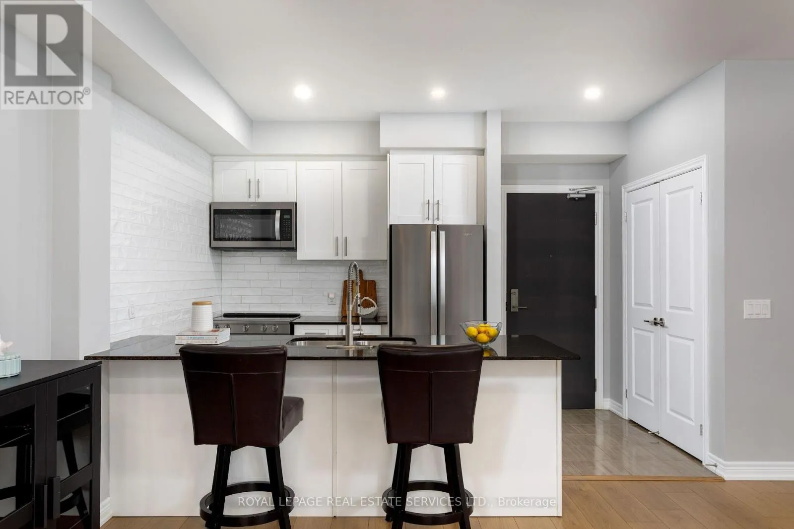 Bronte & Khalsa (South of Dundas) Welcome to Westmount, one of Oakville's most sought-after communities, prized for its expansive parks, scenic trails, and placement within the highly desirable Garth Webb Secondary School catchment. This family-friendly neighbourhood offers exceptional convenience with the hospital just three minutes away, everyday shopping, restaurants, and services nearby, and outstanding commuter access-only four minutes to the 407ETR, six minutes to the QEW/403, and nine minutes to the Bronte GO Station, ensuring effortless travel throughout the GTA. This bright and stylish corner-unit stacked townhome features 2 bedrooms, 2 bathrooms, and approximately 993 sq. ft. of modern living space, plus an impressive 213 sq. ft. (approx.) covered balcony ideal for outdoor dining and relaxation. Thoughtful upgrades include deluxe kitchen cabinetry with upgraded hardware and backsplash, 9-foot smooth ceilings, oversized windows with California shutters, and upgraded LED pot lighting w/dimmers. Recent improvements add peace of mind,including a new dryer and dishwasher (2025), new laminate flooring (2024), and a full professional repaint (2022). The open-concept layout is filled with natural light and offers a well-appointed kitchen with granite countertops, peninsula/island with breakfast bar, and stainless steel appliances, seamlessly connecting to the living and dining areas with a walkout to the covered terrace. The spacious primary suite features a tray ceiling, a walk-in closet, and a 3-piece ensuite, while the second bedroom enjoys easy access to a 4-piece main bathroom with a tub/shower combination. In-suite laundry, two parking spaces, and an oversized storage locker complete this exceptional opportunity in a prime Oakville location. (id:27476)