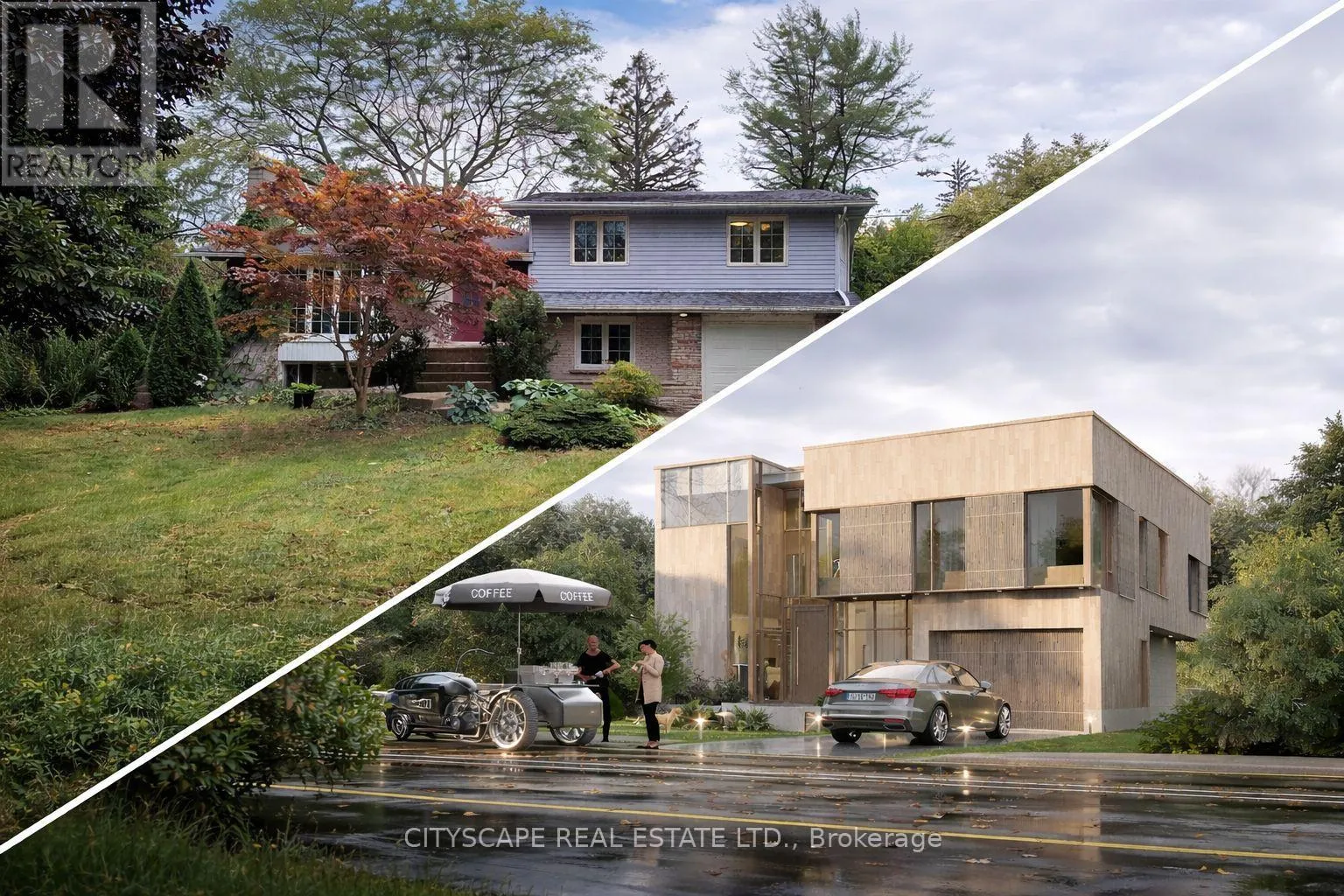 Rebecca and Wendy Ln An extraordinary opportunity in the heart of prestigious West Oakville, this exceptional offering at 324 Wendy Lane presents a rare chance to secure an estate-sized 76 x 150 ft premium lot in one of the area's most sought-after luxury redevelopment corridors. Offered as is, the existing residence provides immediate flexibility for end users, investors, or visionary builders, while the true value lies in its exceptional redevelopment potential. Included with the sale are fully approved permits and architectural plans for an approximately 4,200 sq. ft. bespoke ultra-modern custom residence, allowing construction to commence immediately. The approved design is a true hallmark of refined contemporary architecture, featuring elegant lines, sophisticated proportions, expansive glazing, and a timeless modern aesthetic thoughtfully curated for distinguished family living and grand-scale entertaining. A standout feature of this signature design is the main-floor guest suite with private ensuite, perfectly suited for multi-generational living, visiting guests, or an elevated home office retreat. Perfectly positioned on a quiet, tree-lined street with minimal traffic flow, this remarkable property offers exceptional privacy, tranquility, and exclusivity - a defining characteristic of West Oakville's most coveted addresses. Surrounded by distinguished custom residences and located just minutes from the lake, top-rated schools, parks, and premium amenities, this is a rare turnkey opportunity for the discerning buyer to create a bespoke dream estate or for the visionary developer to secure a development-ready asset in one of Oakville's most prestigious enclaves. (id:27476)