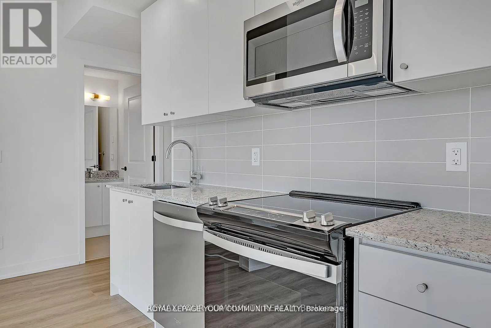 Trafalgar Rd & Dundas St E Don't miss this l-bedroom plus den condominium situated in Oakville's highly desirable location at the intersection of Trafalgar and Dundas! The enclosed den can either serve as an office or a child's bedroom. This corner unit offers 659 sq.ft. of well lit living space, featuring an expansive wraparound balcony with lake views. The unit boasts 9-foot ceilings, contemporary finishes, an open-concept kitchen with granite countertops, an island, and brand new stainless steel appliances. (id:27476)
