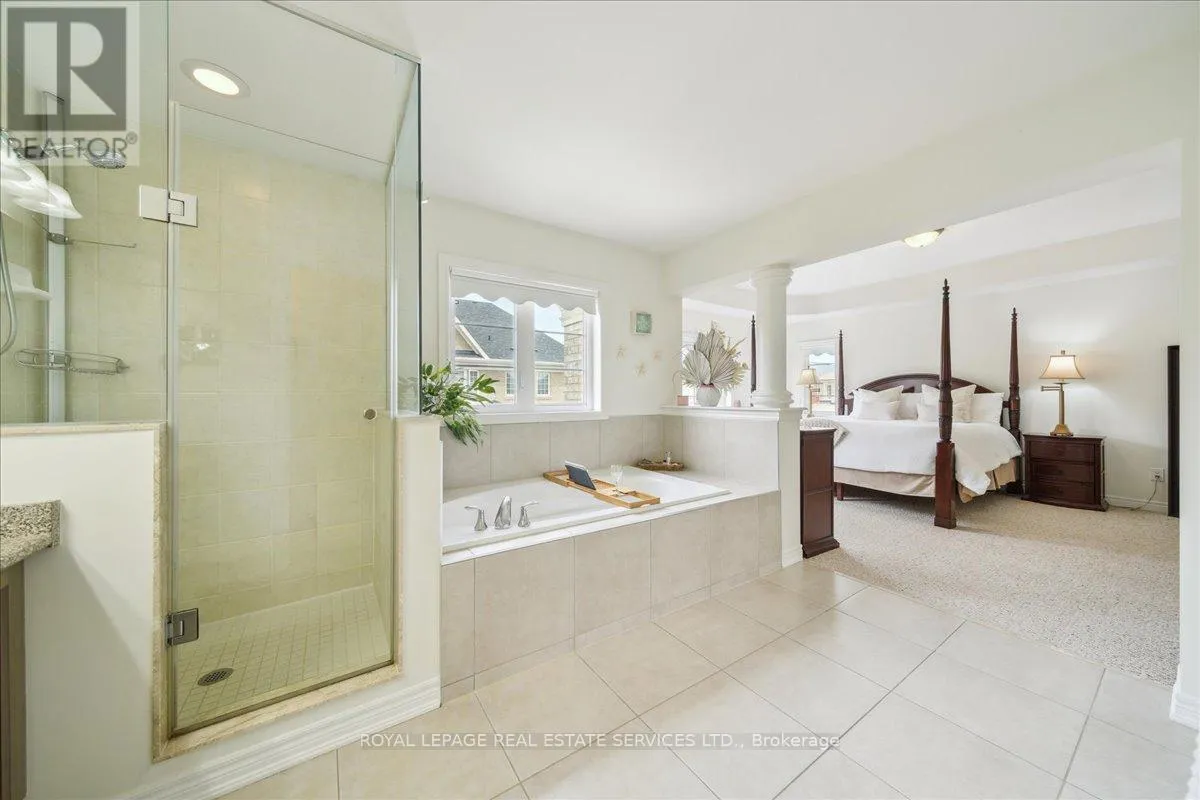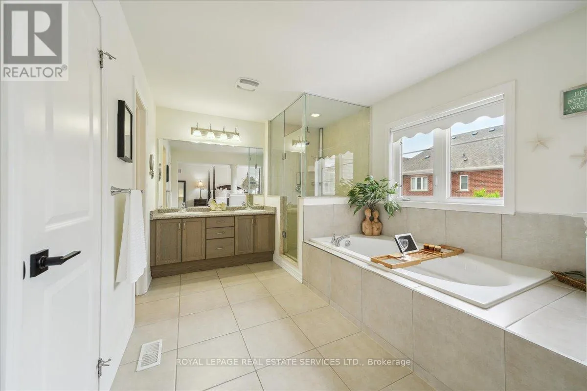 Dundas St. W and Neyagawa Blvd. Escape to unparalleled luxury at this exquisite Normandy Rosehaven residence, perfectly situated on a quiet, tree-lined street in Oakville's prestigious Glenorchy community. This sophisticated 3,264 sq. ft. home seamlessly blends timeless elegance with contemporary comfort, offering 5 spacious bedrooms and 5 well-appointed bathrooms. The main floor is a masterpiece of open-concept design, featuring soaring 9-ft ceilings, detailed crown moulding, and a seamless flow of rich hardwood and natural stone flooring. The inviting family room, with its cozy fireplace, anchors the space, while a sophisticated formal dining area sets the stage for memorable gatherings. The gourmet eat-in kitchen is both beautiful and functional, equipped with top-of-the-line stainless steel appliances, extensive cabinetry, and a walkout to your private backyard oasis. Step outside to a tranquil retreat featuring a composite deck, a bubbling hot tub, and a dedicated gas line for effortless barbecues. Upstairs, the expansive primary suite offers a true sanctuary, complete with a spa-like 5-piece ensuite and dual his-and-hers wardrobes. A second bedroom includes its own 4-piece ensuite, while two additional bedrooms share a generous 4-piece bath. The partial finished basement adds versatility with a private bedroom and 3-piece ensuite, ideal for guests or a teen haven. A permit has been obtained by the owner (transferable) to undertake a basement renovation which can be legally rentable with a separate entrance. Added conveniences include a main-floor laundry room and central dehumidifier. Located mere minutes from the new Oakville hospital, Sixteen Mile Sports Complex, top-rated schools, and major highways, this distinguished home offers an exceptional lifestyle in one of Oakville's most desirable neighbourhoods. Some photos have been virtually staged. (id:27476)