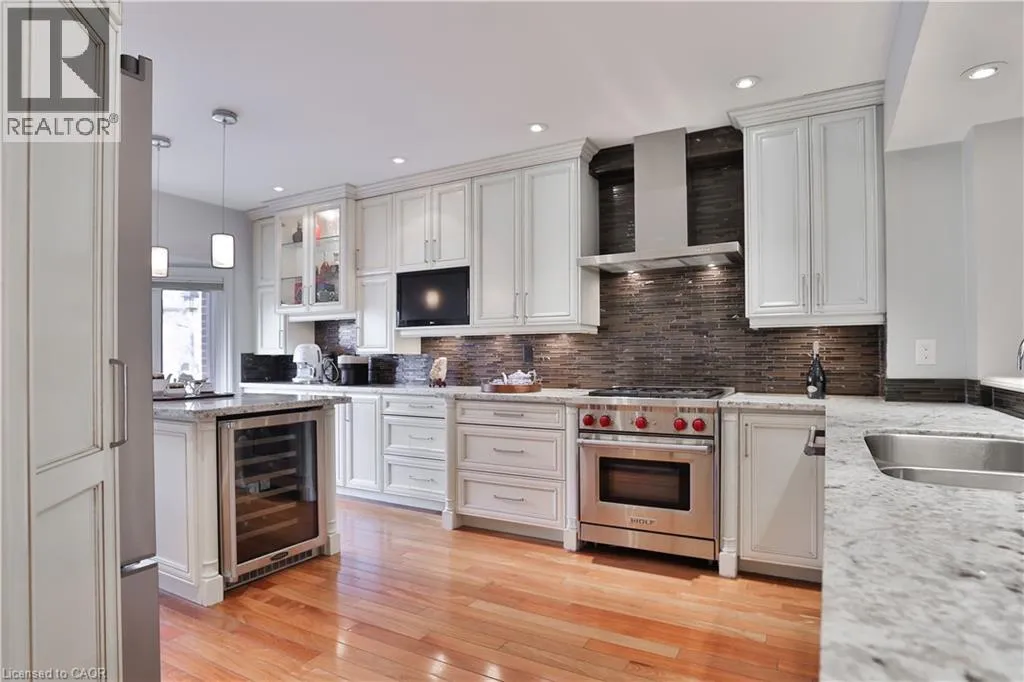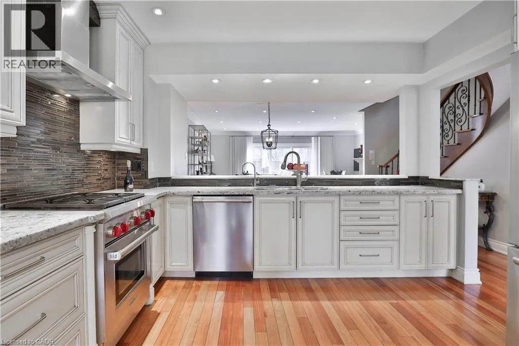 Third Line / Marine Drive / Tradewind Drive Tucked into an exclusive enclave of just 48 homes, steps to Bronte's waterfront trail and a short stroll to the harbour, cafés and shops of Bronte Village, this updated 3 bedroom freehold townhome offers open concept living, generous room sizes and a quieter, more private setting with no condo fees. The main level has been thoughtfully opened to create a seamless, contemporary layout centred around an expansive kitchen with quality appliances, ample workspace and a natural connection to both dining and living areas. The space reads wide, bright and highly functional, a noticeable departure from more traditional townhouse layouts, equally suited to everyday living and entertaining. The living room is anchored by a fireplace and walks out to a large private deck, creating a peaceful outdoor extension with a sheltered rear setting. Upstairs, the second level includes two full bedrooms, both unusually generous in size and currently used as a separate living area and dedicated home office. This flexibility is a defining feature, offering space that adapts easily to the needs of downsizers, whether for work, guests or quiet retreat, along with a full bath and convenient laundry. The top floor is reserved for a private primary suite with balcony, walk-in closet and a spacious 5 piece ensuite, providing excellent separation and a true sense of retreat. The lower level adds a full gym or recreation space, storage and inside access to a double garage. Set slightly removed from Lakeshore Road, the home is peaceful while remaining an easy walk to the lake and the amenities of Bronte Village. A rare opportunity to secure a thoughtfully updated home in an established lakeside freehold community. (id:27476)