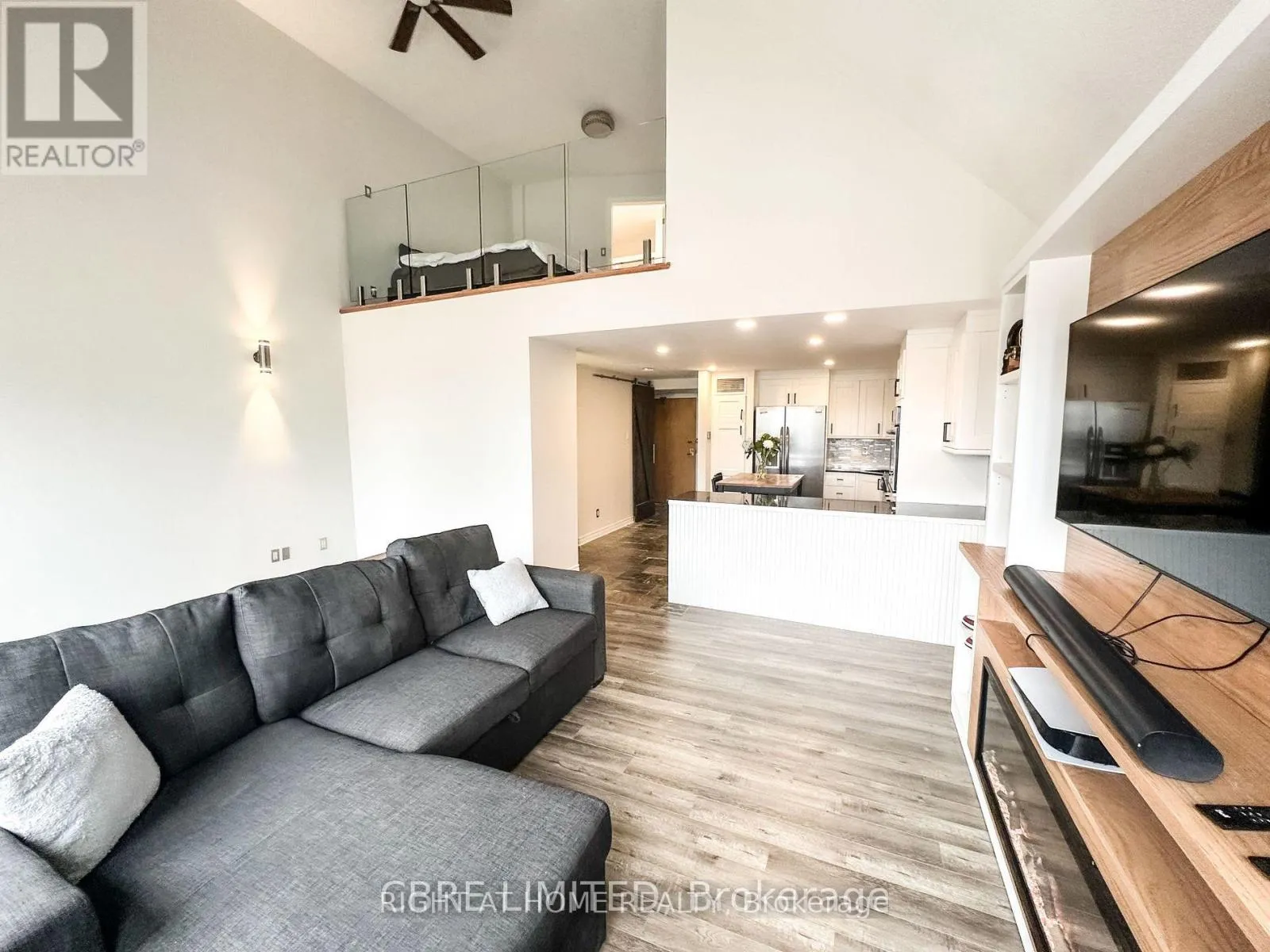 Bronte Rd & Lakeshore Rd Welcome home to this rarely offered and entirely renovated unit in Bronte West! Boutique style condominium in the heart of Bronte surrounded by cafes, restaurants, shops & local amenities. Spacious 1 Bed + Den loft with 2 washrooms. S/S Appliances. Pot lighting throughout. Smart switches installed. Brand new engineered hardwood flooring in living room and bedroom (2023). New hardwood stairs & glass railing (2023). Fully renovated 3-piece bath (2024). Freshly painted kitchen cabinets and backsplash (2024). Freshly painted (2023). Brand new water tank (2024). Brand new washer/dryer combination (2024). Balcony re-done (2023). (id:27476)