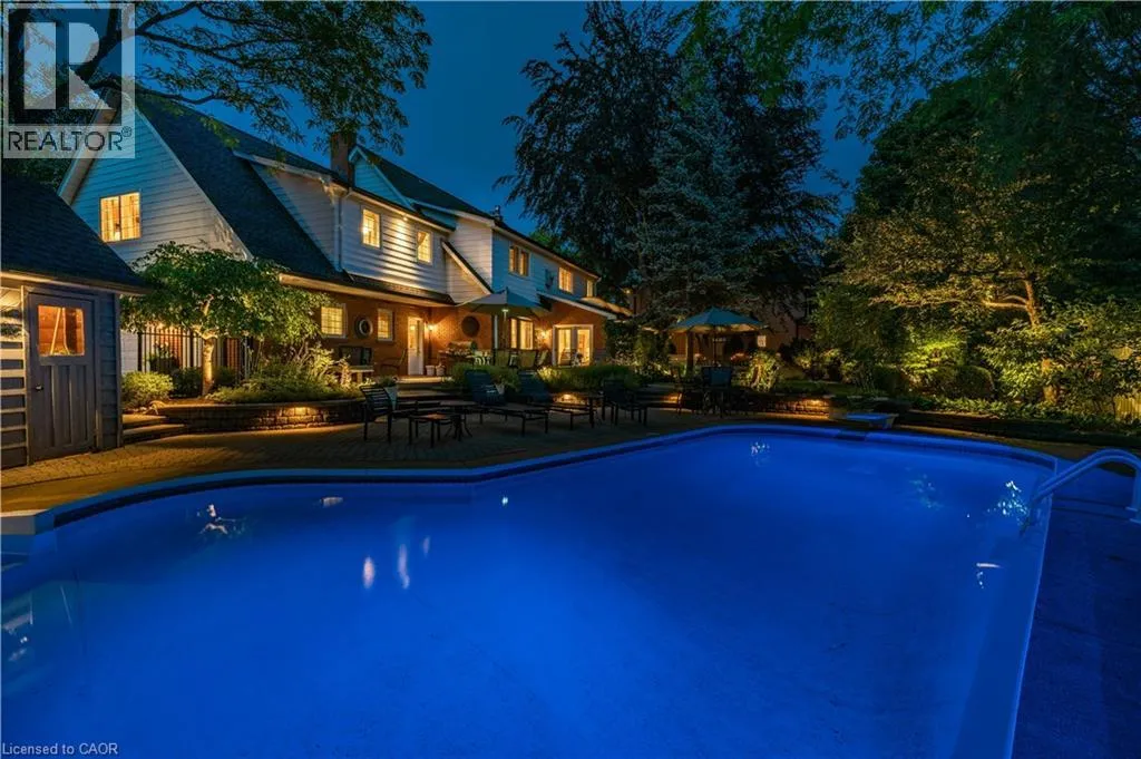Lakeshore to Maple Grove Nestled in the heart of prestigious Southeast Oakville, 166 Maple Grove Drive presents a rare opportunity to own a classic Cape Cod residence on a private, mature 1/3 acre lot. Proudly owned by the same family since its original build, this cherished home exudes timeless character and refined charm. The property showcases an impressive 112 x 128 foot lot, surrounded by lush landscaping and enhanced by landscape lighting that creates a warm evening ambiance. The backyard oasis features a sparkling in-ground pool, multi-level deck and stone patio, and a dedicated pool shedâperfect for summer entertaining or quiet relaxation in complete privacy. Inside, this spacious family home offers over 5300 square feet of living space, with five bedrooms and five bathrooms, including a thoughtfully finished lower level for additional living and recreation space. The expansive bedroom suite over the double-car garage, complete with a separate staircase, offers flexibility for an in-law, nanny, or private guest suite. With elegant principal rooms, a bright kitchen overlooking the gardens, and classic architectural details throughout, this residence combines the grace of traditional design with the comfort and functionality demanded by todayâs lifestyle. Perfectly situated among Oakvilleâs most distinguished addressesâminutes from top-rated schools, the lakefront, and downtown Oakville this property delivers both prestige and peaceful family living. (id:27476)