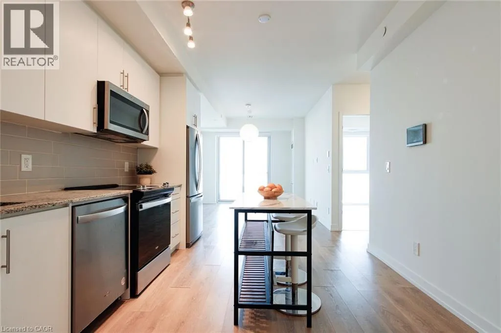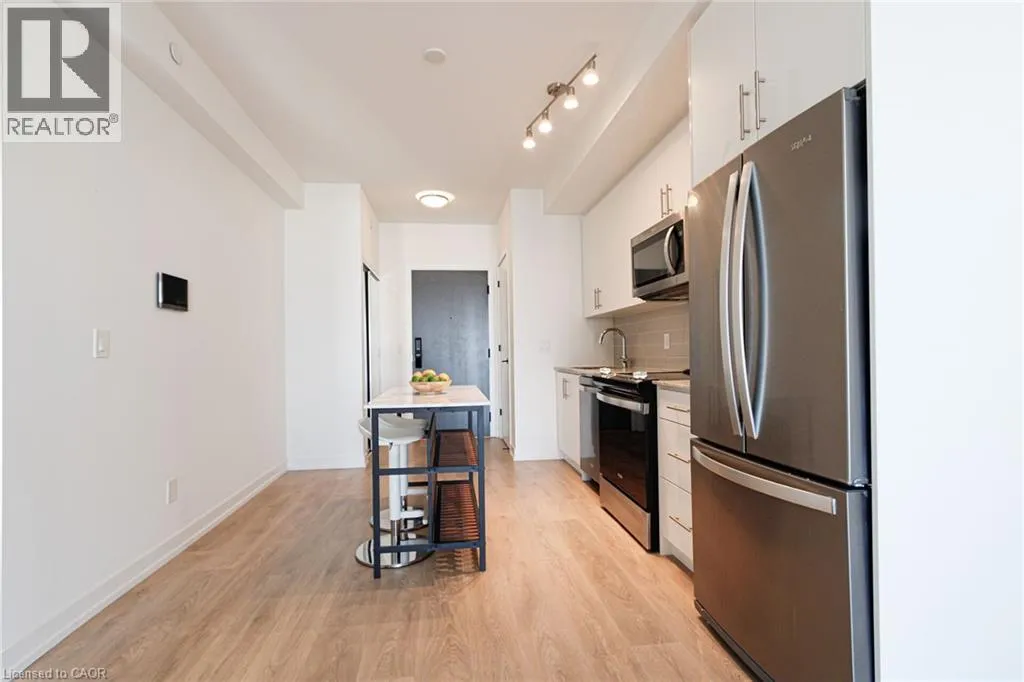 Trafalgar Rd / Wheat Boom Dr Discover stylish, low-maintenance living in this beautifully designed 1-bedroom condo in the desirable North Oakville community. Offering 9-foot ceilings and modern finishes throughout, this bright and inviting suite features a smart, open-concept layout ideal for everyday living. The contemporary kitchen boasts granite countertops, stainless steel appliances, and generous cabinet space, overlooking the combined living and dining area with walk-out access to a private balconyâperfect for morning coffee or evening relaxation. The spacious bedroom includes a walk-in closet with built-in organizers for added convenience. Thoughtfully laid out with no wasted space, this unit is filled with natural light and designed for comfort and functionality. Residents enjoy access to exceptional building amenities, including a fitness centre, a party room with patio and BBQ area, and a sophisticated lobby with automated parcel lockers. Conveniently located near parks, trails, top-rated schools, shopping, restaurants, transit, and major highways, this is an ideal home for first-time buyers, downsizers, or investors. Includes one parking space and one locker. (id:27476)