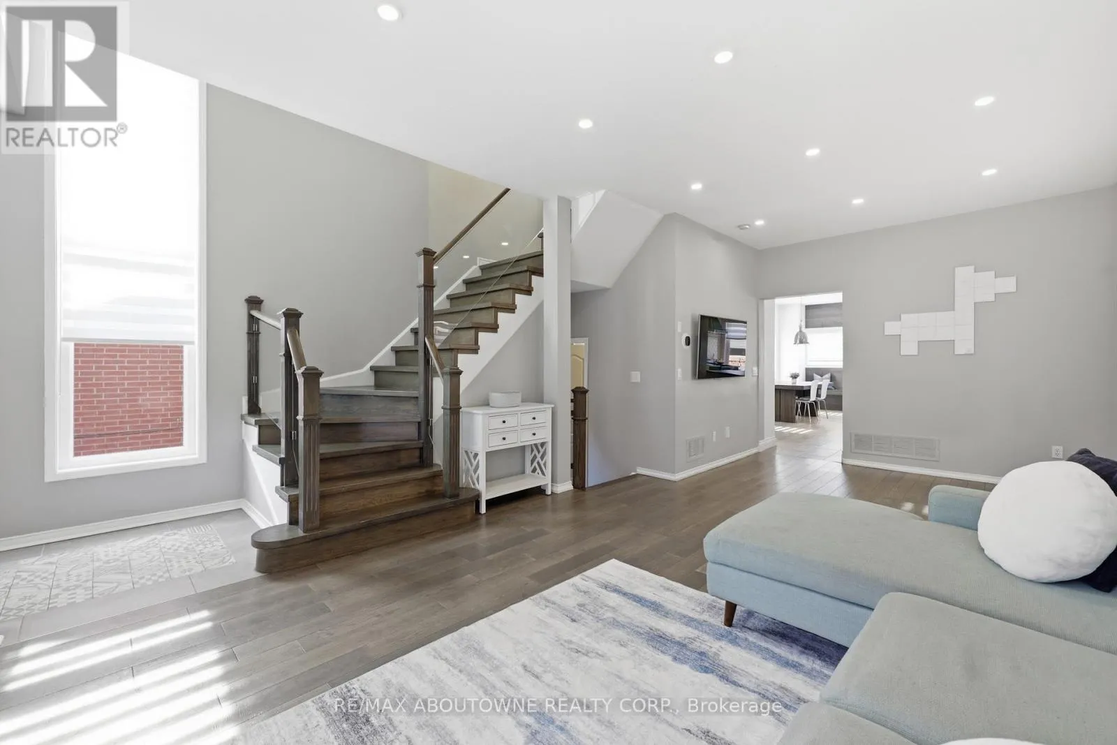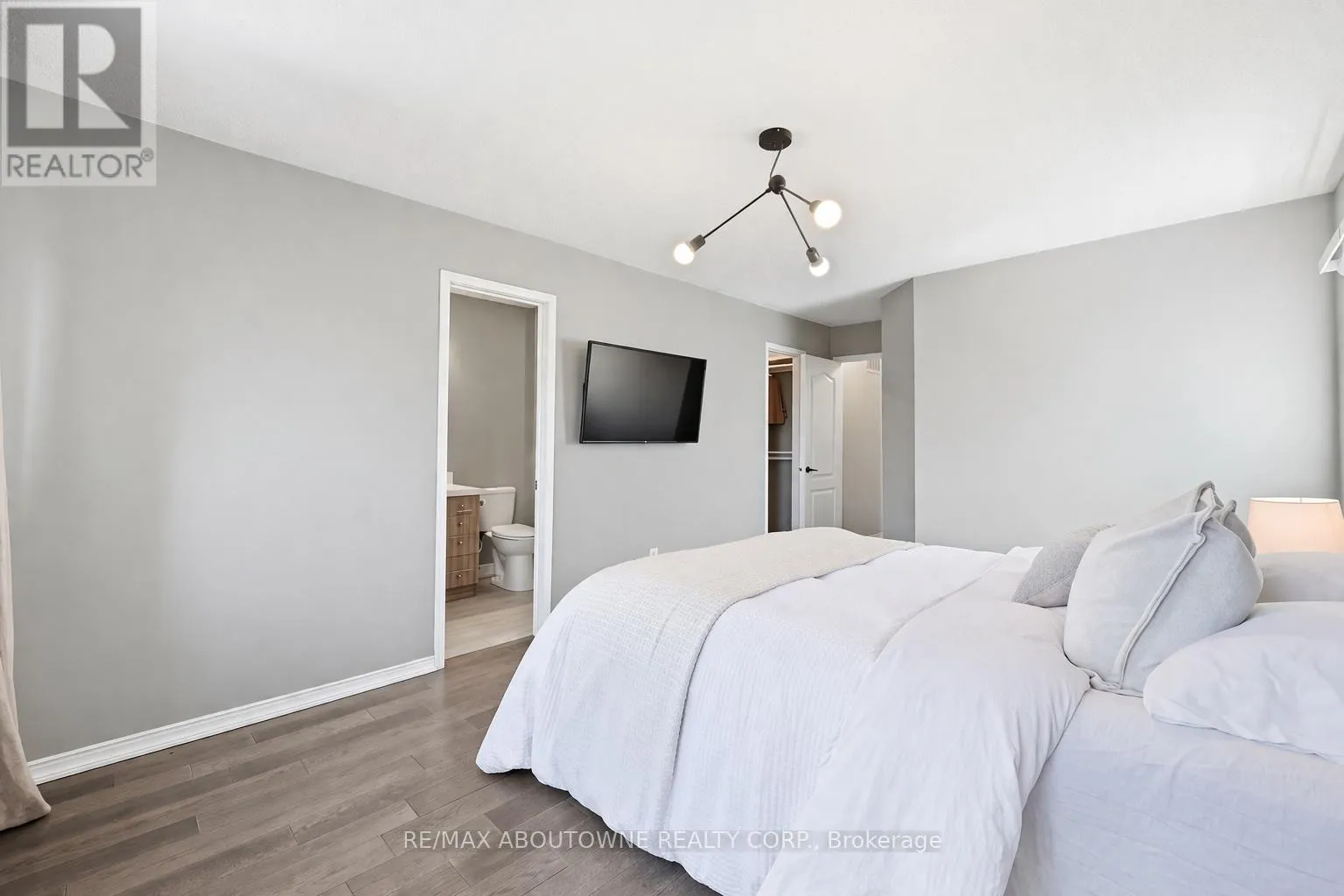 Cross Streets: River Glen/Castle Hill. ** Directions: River Glen Blvd to Castle Hill Crescent. *OPEN HOUSE SUNDAY, APRIL 19th, 2-4pm - 2665 CASTLE HILL CRESCENT, OAKVILLE* Don't miss this modern, bright carriage home which is one of the largest models on the street, with 3+1 bedrooms, 3 full bathrooms and powder room with almost 2,100 sqft of living space on a quiet, child-friendly crescent in Oakville's desirable River Oaks community. Enter into a spacious, open concept main floor with 9ft ceilings, large windows and hardwood flooring throughout the living and dining areas, plus renovated custom chef's kitchen with stainless steel appliances, oversized pantry, and walk-out to a large deck and backyard. Upper level with 3pc main bath and 3 bedrooms, including large primary suite with walk-in closet and 3pc ensuite bath. Fully finished lower level with rec room, additional bedroom, full bathroom, laundry and plenty of storage space. The spacious driveway boasts 2 side-by-side parking spaces at the front, so no need to juggle cars in the morning. The detached garage offers an additional parking space, so you can park up to 6 cars! EV charger included! New heat pump/furnace and water filter (2024), tankless water heater (owned, 2022), most windows updated (2019), updated flooring and stairs (2017). Close to OTMH hospital, highways, transit, and walking distance to great schools, parks, trails, shopping and loads of fantastic amenities. (id:27476)