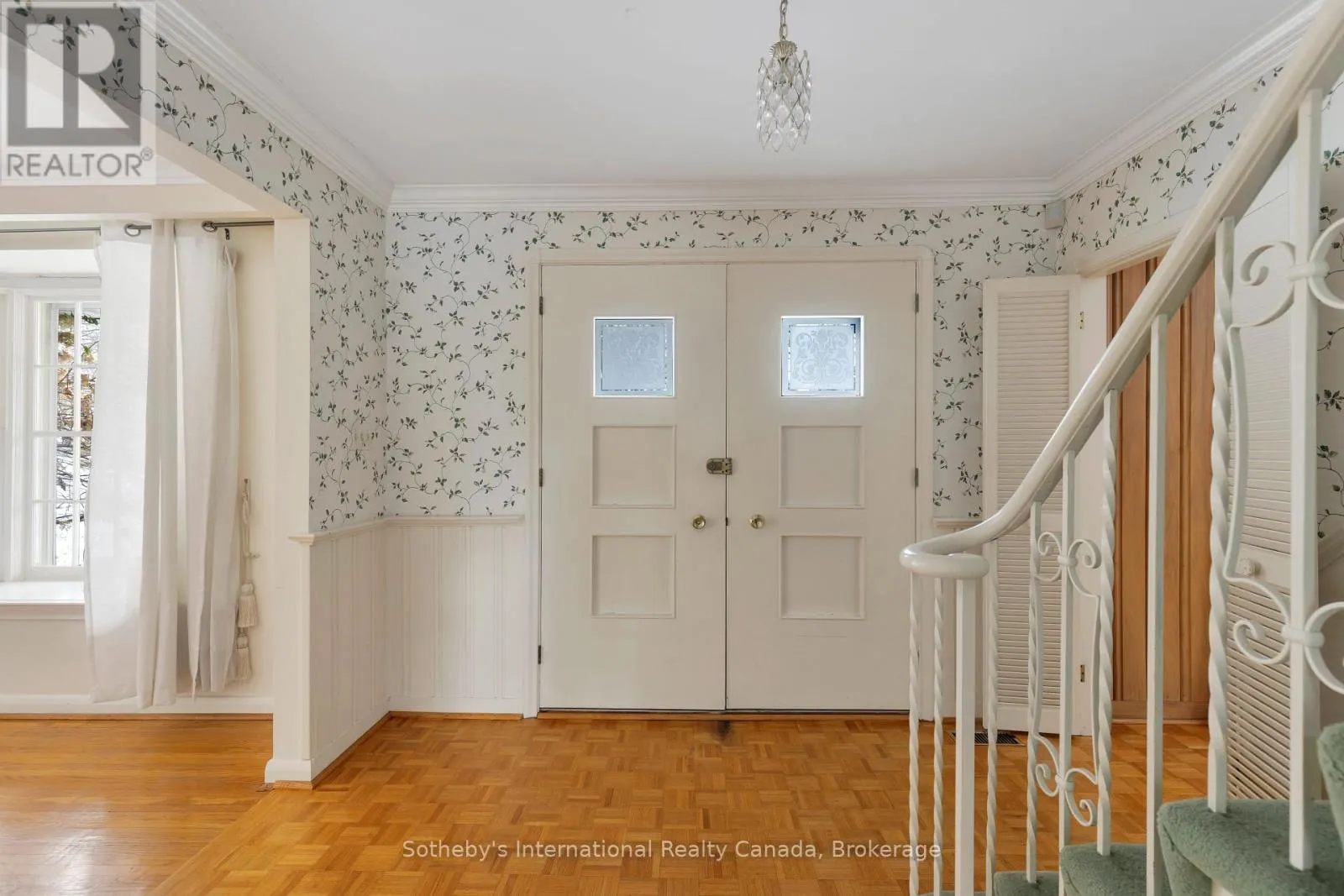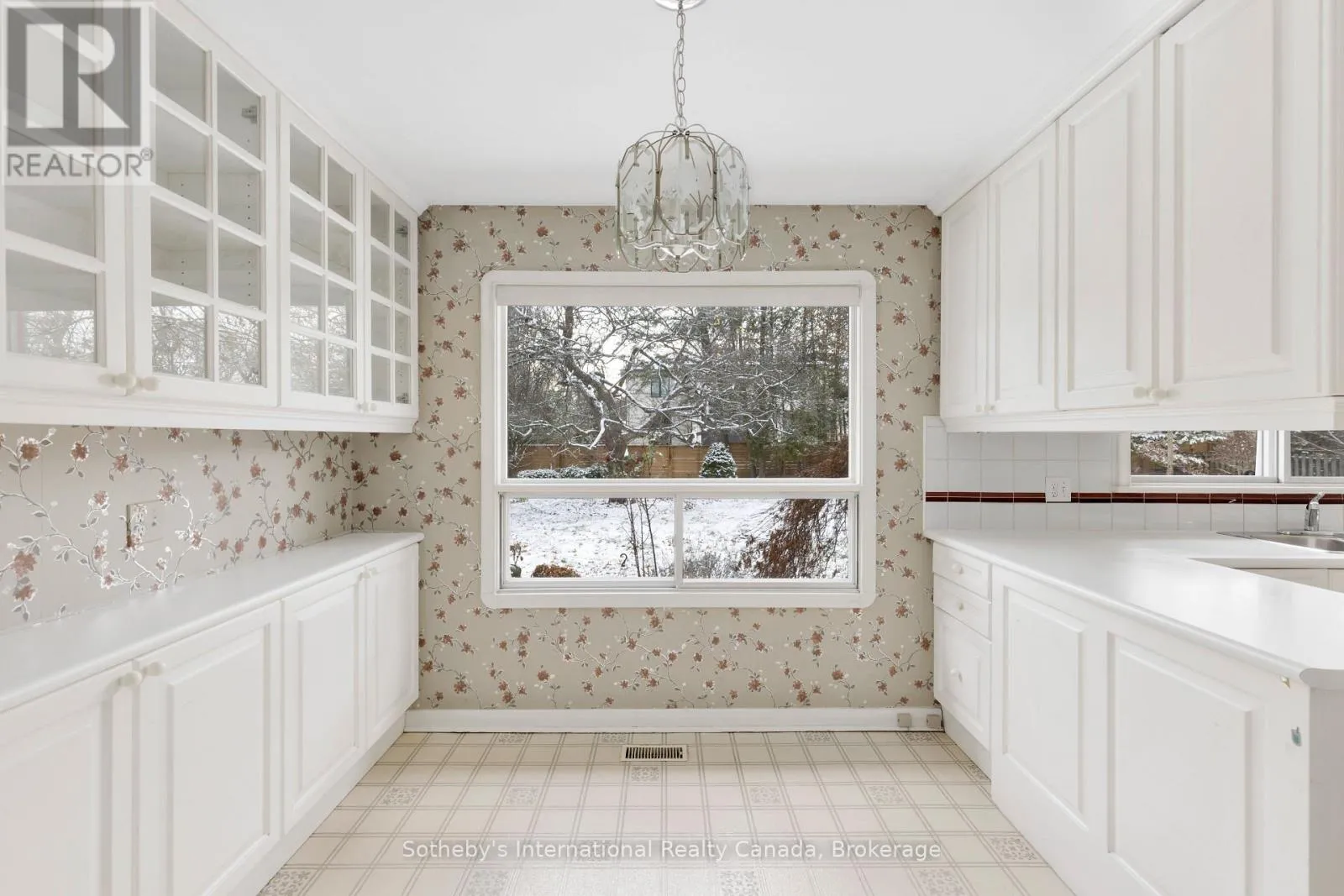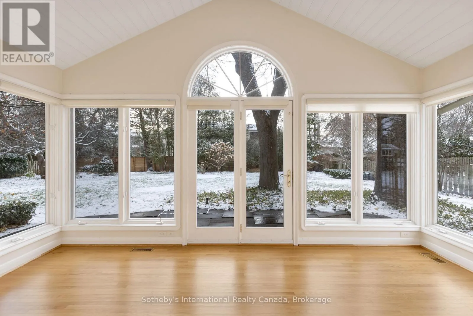 Lakeshore Road and Cairncroft Nestled in the heart of the coveted Morrison neighbourhood, this classic residence sits on an expansive, mature 100 x 150 foot lot within the prestigious Ennisclare Park pocket. Steps from the lake and Gairloch Gardens, this impeccably maintained 1960s home still makes a statement. The interior exudes quiet elegance, featuring a wood-panelled family room and a breathtaking sun-room with cathedral ceilings and floor-to-ceiling windows that overlook a lush, private garden oasis. Whether you choose to enjoy its timeless charm, renovate to your taste, or build your dream estate, this is a rare opportunity in one of Oakville's finest school districts (id:27476)