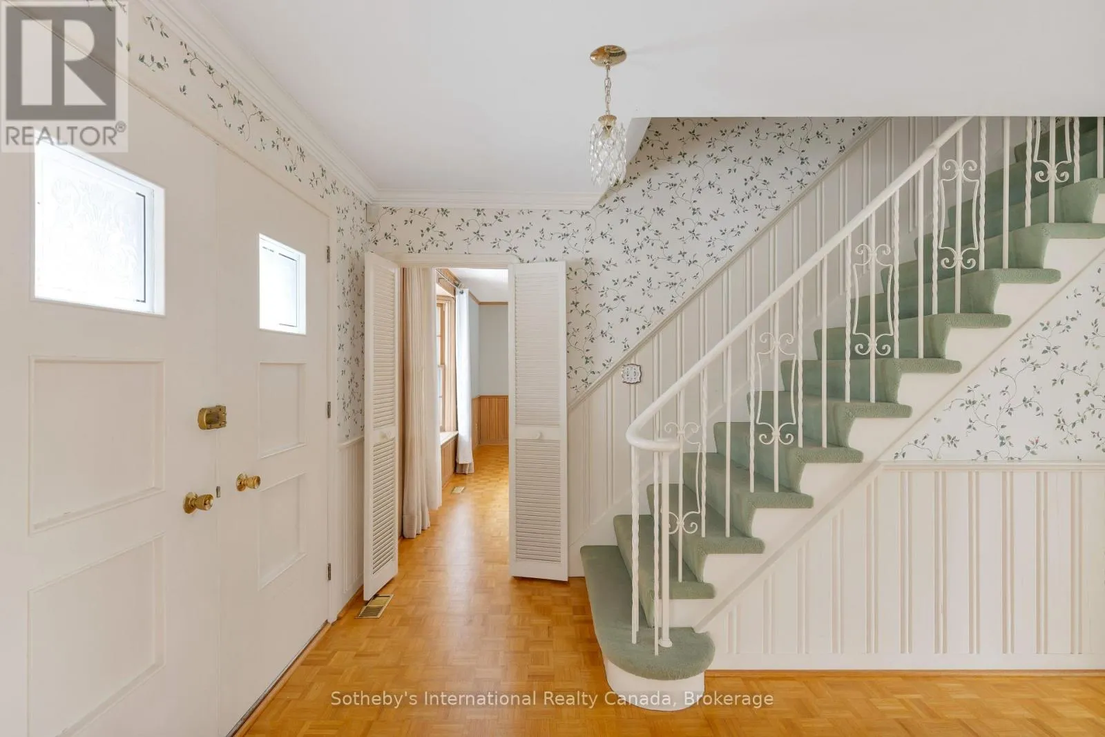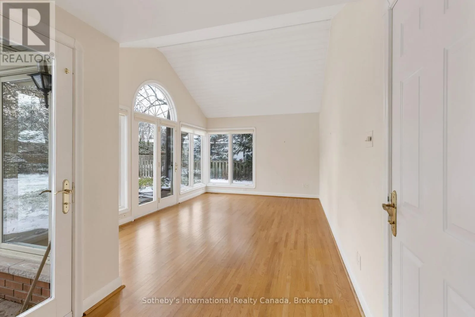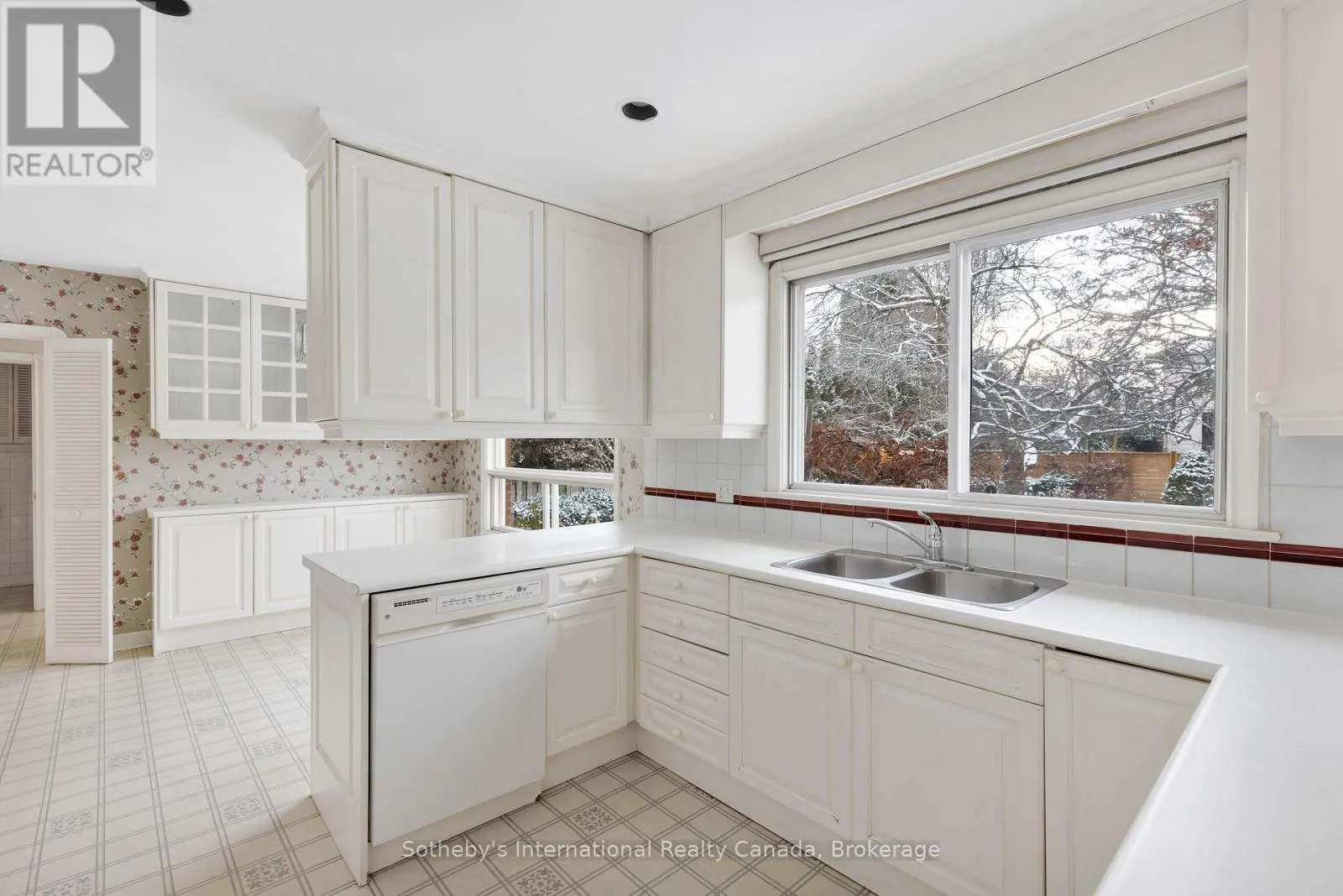 Lakeshore Road and Cairncroft Nestled in the heart of the coveted Morrison neighbourhood, this classic residence sits on an expansive, mature 100 x 150 foot lot within the prestigious Ennisclare Park pocket. Steps from the lake and Gairloch Gardens, this impeccably maintained 1960s home still makes a statement. The interior exudes quiet elegance, featuring a wood-panelled family room and a breathtaking sun-room with cathedral ceilings and floor-to-ceiling windows that overlook a lush, private garden oasis. Whether you choose to enjoy its timeless charm, renovate to your taste, or build your dream estate, this is a rare opportunity in one of Oakville's finest school districts (id:27476)