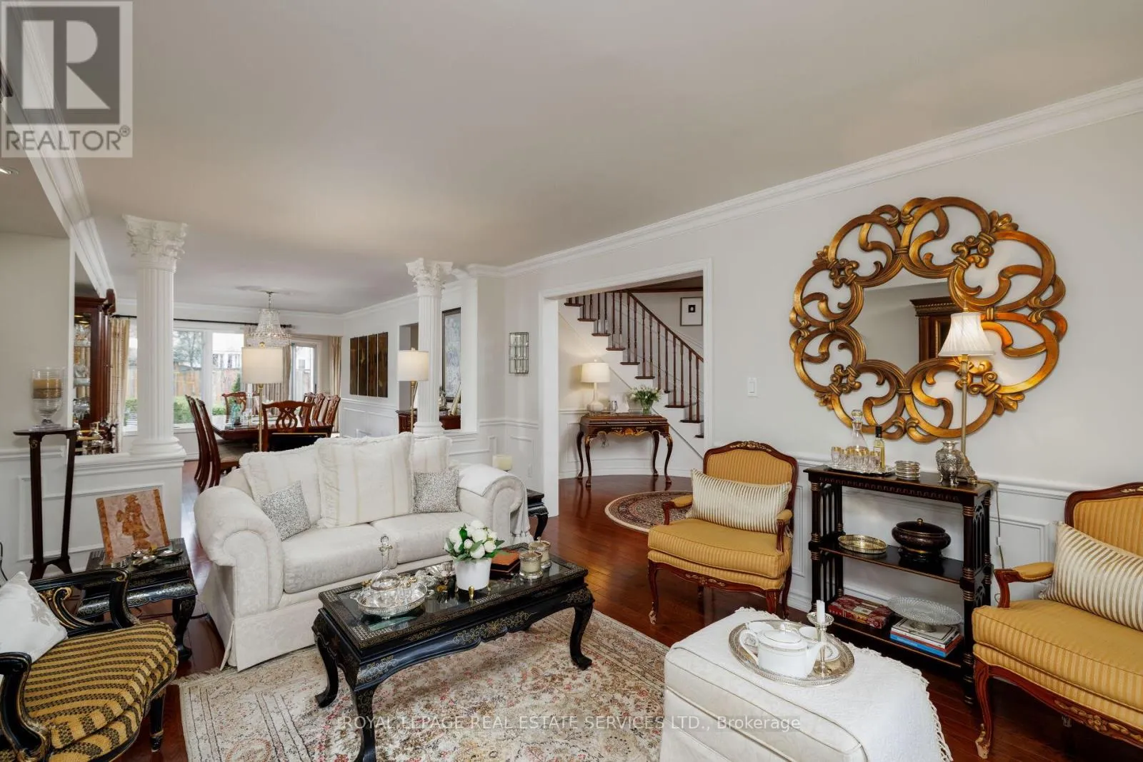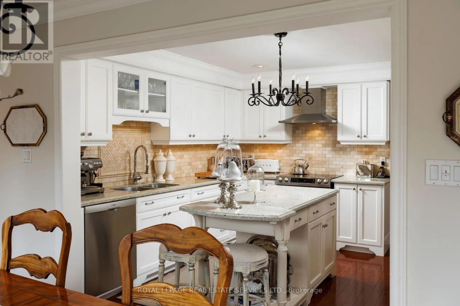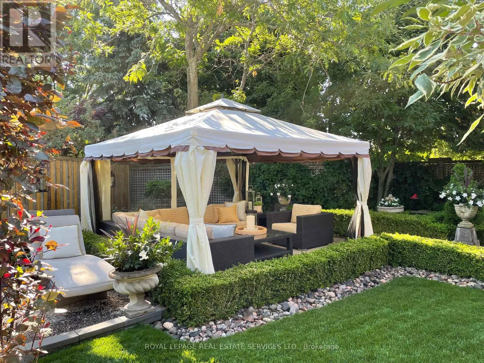 Cross Streets: Oak Springs & Banbury. ** Directions: Upper Middle - Oak Springs - Banbury. Elegance defines this exceptional 4-bedroom, 5-bathroom family home on a quiet crescent in sought-after, family-friendly River Oaks, just minutes to the Uptown Core with its vibrant mix of restaurants, shopping, transit and everyday conveniences. Ideally located near top-rated schools, scenic trails, parks and Sheridan College, with easy access to highways and the Oakville GO Station. Set on a beautiful, professionally landscaped lot, this home showcases lush perennial gardens, meticulously manicured hedging, mature trees, and extensive interlocking stonework front and back. The private, tranquil backyard oasis features extensive patios for dining and lounging, a large gazebo, outstanding plantings with river stone accents, and a vegetable/herb garden bed. Inside, timeless sophistication is evident with smooth ceilings, crown mouldings, wainscotting, fluted columns, French doors, lustrous hardwood floors, designer lighting throughout. The main level features a grand living and enlarged dining area ideal for entertaining, and a spacious family room with a gas fireplace. The updated chef's kitchen offers granite countertops, extensive white cabinetry, stainless steel appliances and a large island, flowing into a bright breakfast room with wall-to-wall windows and two walkouts to the outdoor living space. Upstairs, four generous bedrooms and three full baths include a luxurious primary retreat with a sitting area, a custom walk-in closet and a spa-inspired 5-piece ensuite. The finished lower level is designed for elegant, casual entertaining with a large recreation room, gym/office, a charming wine cellar, oversized dream laundry room, and ample storage. A rare opportunity combining luxury, space and an unbeatable Oakville location. Exceptional! (id:27476)