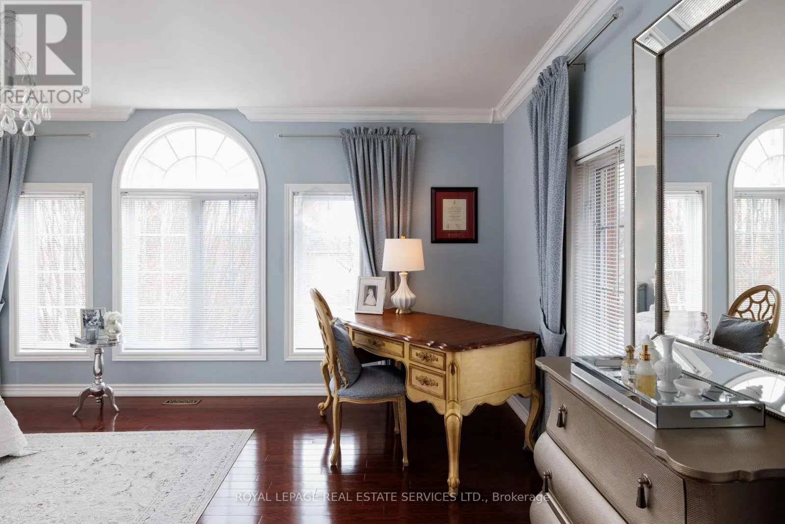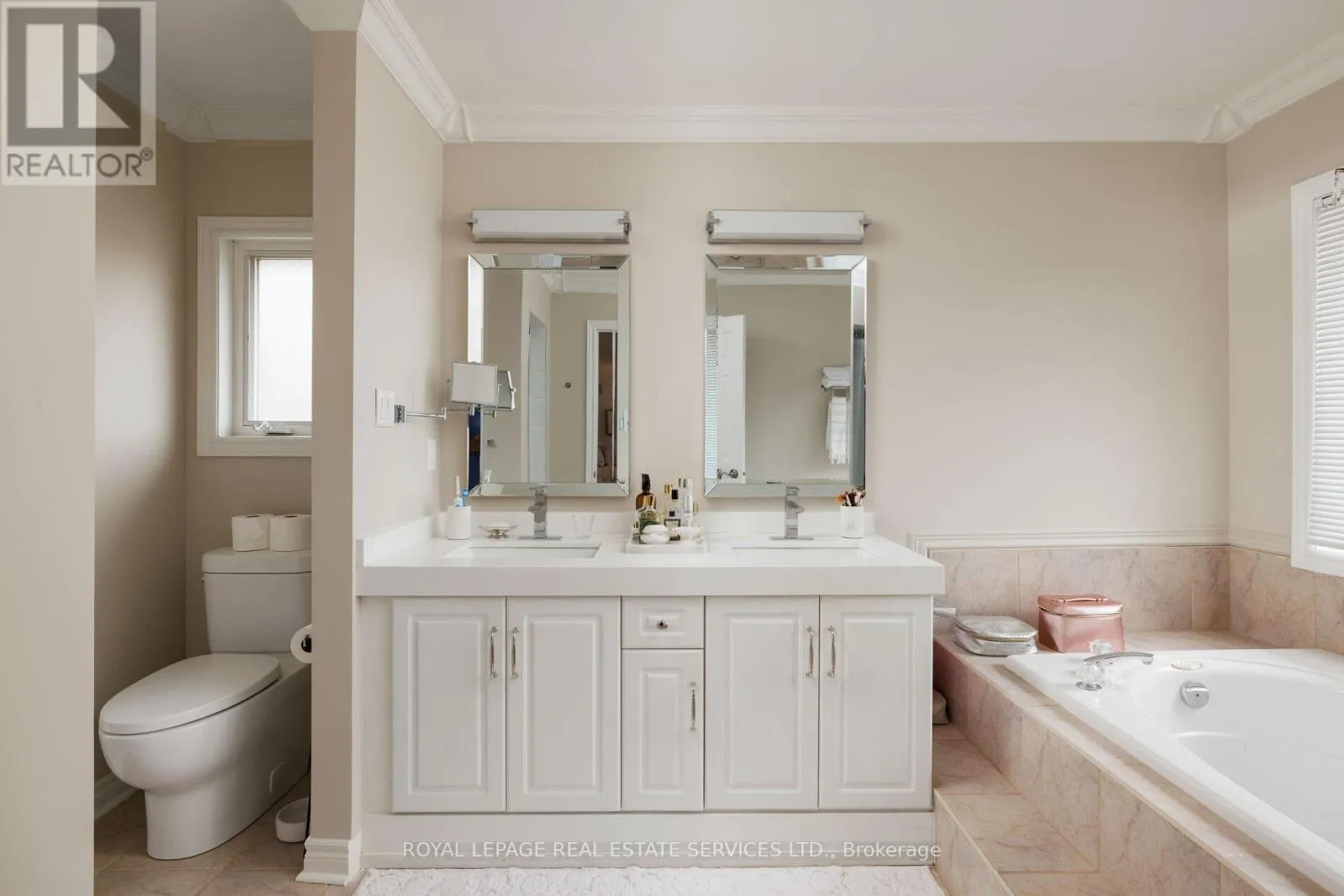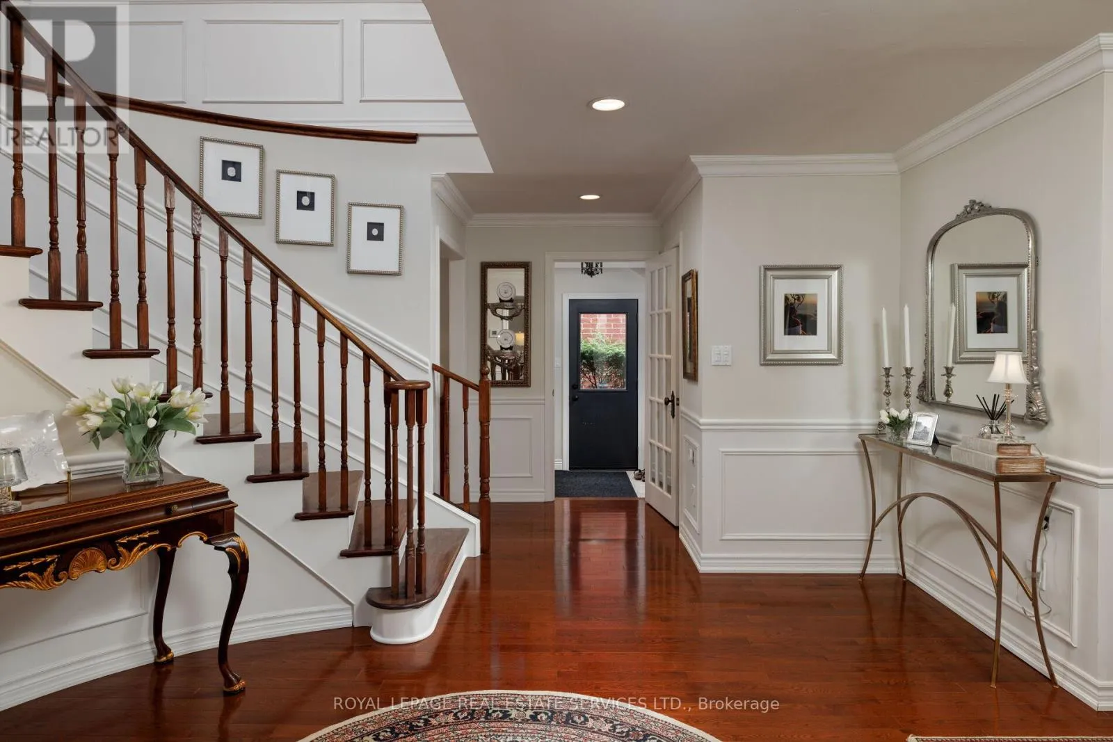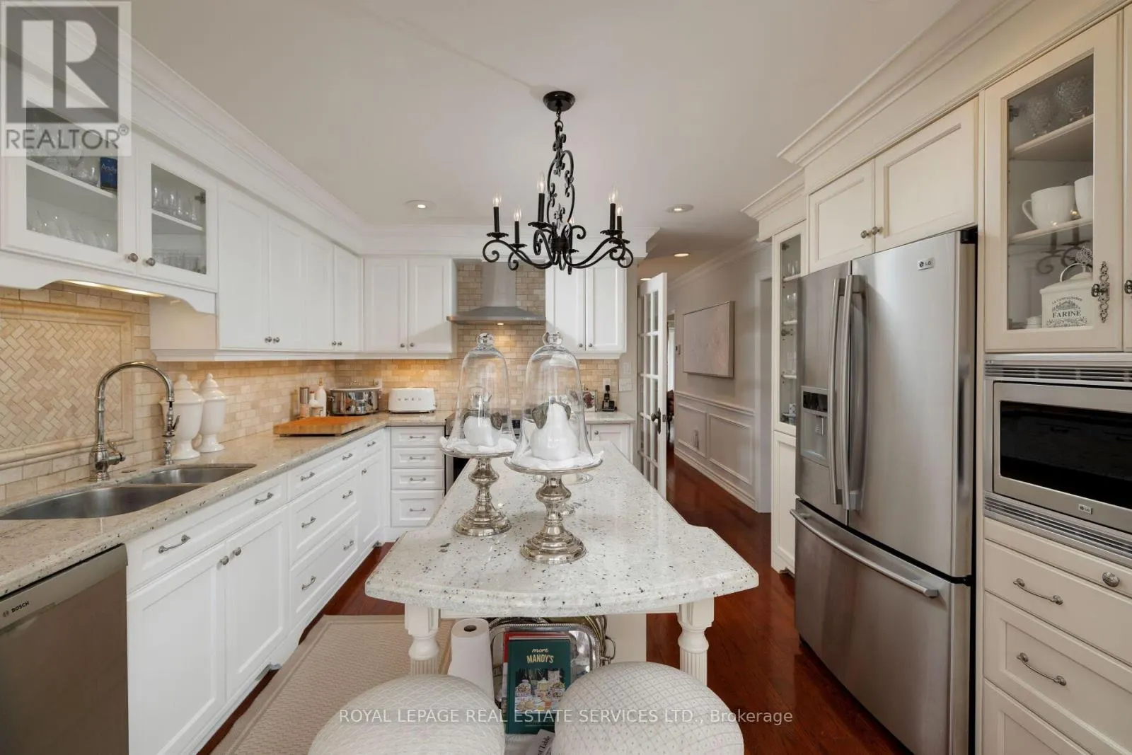 Cross Streets: Oak Springs & Banbury. ** Directions: Upper Middle - Oak Springs - Banbury. Elegance defines this exceptional 4-bedroom, 5-bathroom family home on a quiet crescent in sought-after, family-friendly River Oaks, just minutes to the Uptown Core with its vibrant mix of restaurants, shopping, transit and everyday conveniences. Ideally located near top-rated schools, scenic trails, parks and Sheridan College, with easy access to highways and the Oakville GO Station. Set on a beautiful, professionally landscaped lot, this home showcases lush perennial gardens, meticulously manicured hedging, mature trees, and extensive interlocking stonework front and back. The private, tranquil backyard oasis features extensive patios for dining and lounging, a large gazebo, outstanding plantings with river stone accents, and a vegetable/herb garden bed. Inside, timeless sophistication is evident with smooth ceilings, crown mouldings, wainscotting, fluted columns, French doors, lustrous hardwood floors, designer lighting throughout. The main level features a grand living and enlarged dining area ideal for entertaining, and a spacious family room with a gas fireplace. The updated chef's kitchen offers granite countertops, extensive white cabinetry, stainless steel appliances and a large island, flowing into a bright breakfast room with wall-to-wall windows and two walkouts to the outdoor living space. Upstairs, four generous bedrooms and three full baths include a luxurious primary retreat with a sitting area, a custom walk-in closet and a spa-inspired 5-piece ensuite. The finished lower level is designed for elegant, casual entertaining with a large recreation room, gym/office, a charming wine cellar, oversized dream laundry room, and ample storage. A rare opportunity combining luxury, space and an unbeatable Oakville location. Exceptional! (id:27476)