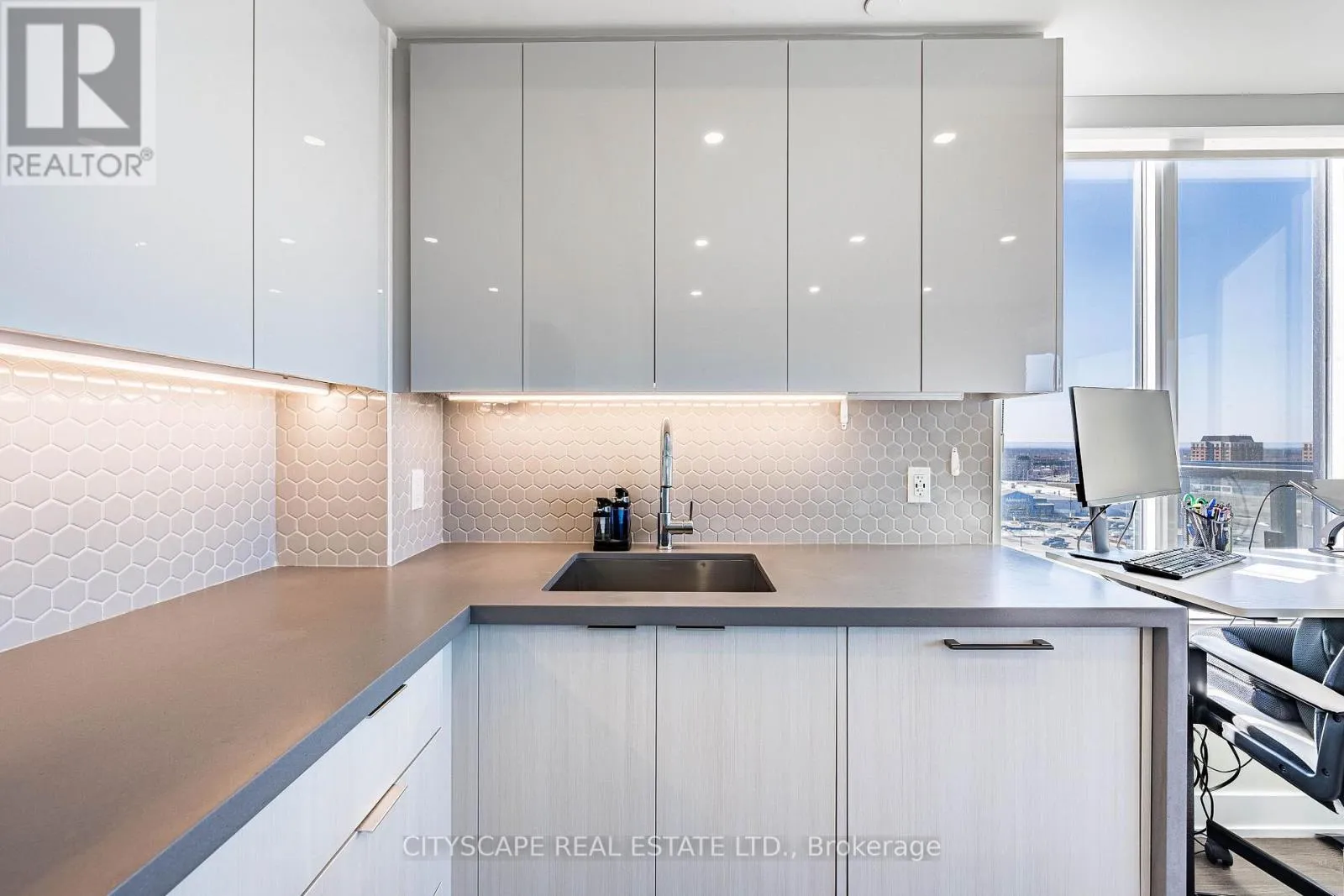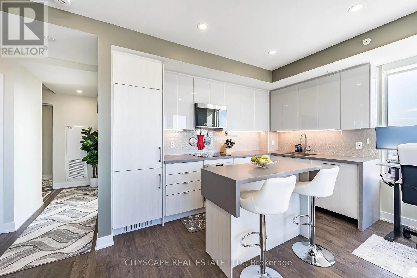 Dundas & Trafalgar Skip the maintenance and step into a sophisticated, two-year-old residence designed for those who appreciate precision and premium upgrades. This is the ultimate turnkey opportunity in Oakville's most connected hub. This 2-bedroom, 1 full bath unit is designed with a high-function layout that maximizes both privacy and style. Refined Finishes: Bright, open-concept living with wood floors, sleek granite countertops, and premium stainless steel appliances. Strategic Floor Plan: Separated bedrooms ensure a quiet primary retreat with a private ensuite. Versatility: The second bedroom is perfectly suited for a dedicated home office or executive guest suite. Essentials Included: In-suite laundry, owned underground parking, and a private storage locker. Bright, open-concept living elevated with designer pot lights and a chef-inspired kitchen featuring custom upgrades, sleek granite countertops, and stainless steel appliances. Dedicated Workspace: A perfectly positioned desk nook bathed in natural light from a large window-ideal for an executive home office. Rare dual-access balcony-step out to your private retreat with unobstructed pond and skyline views from two different points in the suite. (id:27476)