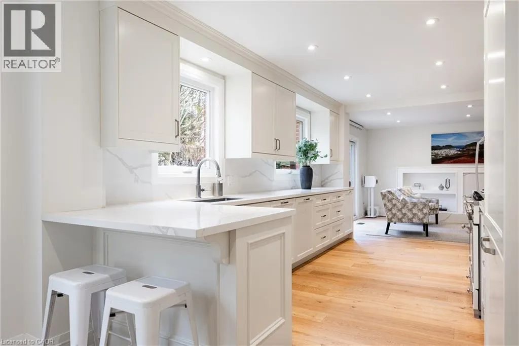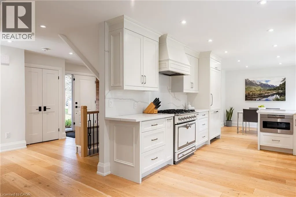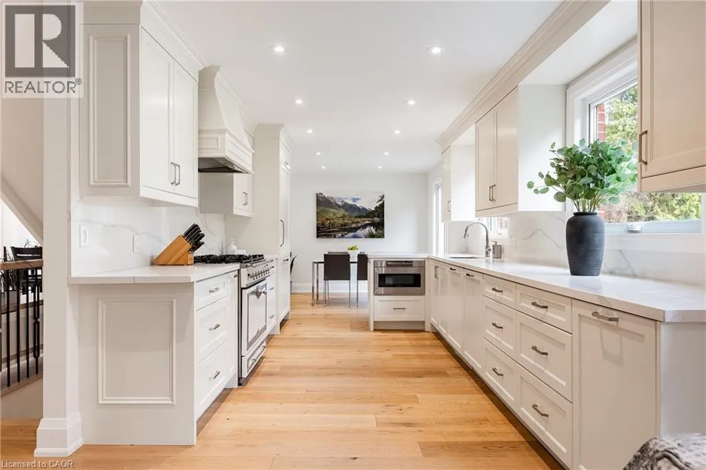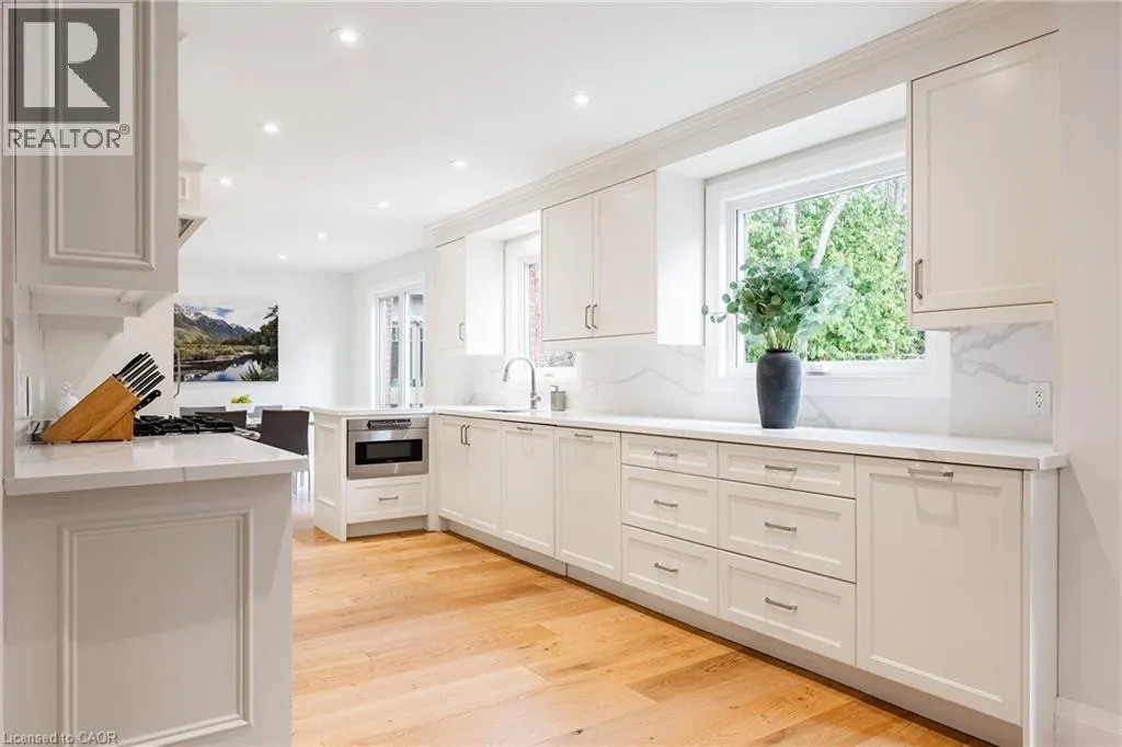 MORRISON RD TO COLEEN DRIVE OR LINBROOK TO CHAMBERLAIN & EAST ON CYNTHIA Completely redesigned from top to bottom in 2019, this stunning family home in the Morrison neighbourhood offers over 3,100 sq ft of refined living space on a premium 181' deep lot. The main level impresses with wide plank oak hardwood floors, decorative wrought iron railings, and new lighting and trim work throughout. The custom kitchen features Calcutta gold quartz countertops, a La Cornue dual fuel range, integrated Fisher & Paykel and Bosch appliances, breakfast counter and a servery with walk-in pantry and beverage fridge. The formal dining room showcases custom wall panelling, while the family room centres around a custom fireplace mantel with direct access to the rear yard. Upstairs, four generous bedrooms include a primary retreat with a walk-in closet and spa-inspired 4-piece ensuite featuring Statuario porcelain tile and a seamless glass shower. Three additional bedrooms share a beautifully appointed 5-piece bath with Carrara marble finishes and a deep soaker tub. The fully finished lower level adds a spacious rec room, a bonus office or gym, a 5th bedroom, and a stylish 3-piece bath with seamless glass shower; perfect for a growing family. Outside, enjoy a professionally landscaped yard with irrigation and interlock patio. Major 2019 updates include privacy fence, asphalt driveway, windows, doors, garage door, eaves/soffits, and downspouts, along with a new furnace in 2025, security window film 2025. Minutes to Oakville Trafalgar High School, top-rated private schools, Oakville GO, and vibrant downtown Oakville. (id:27476)