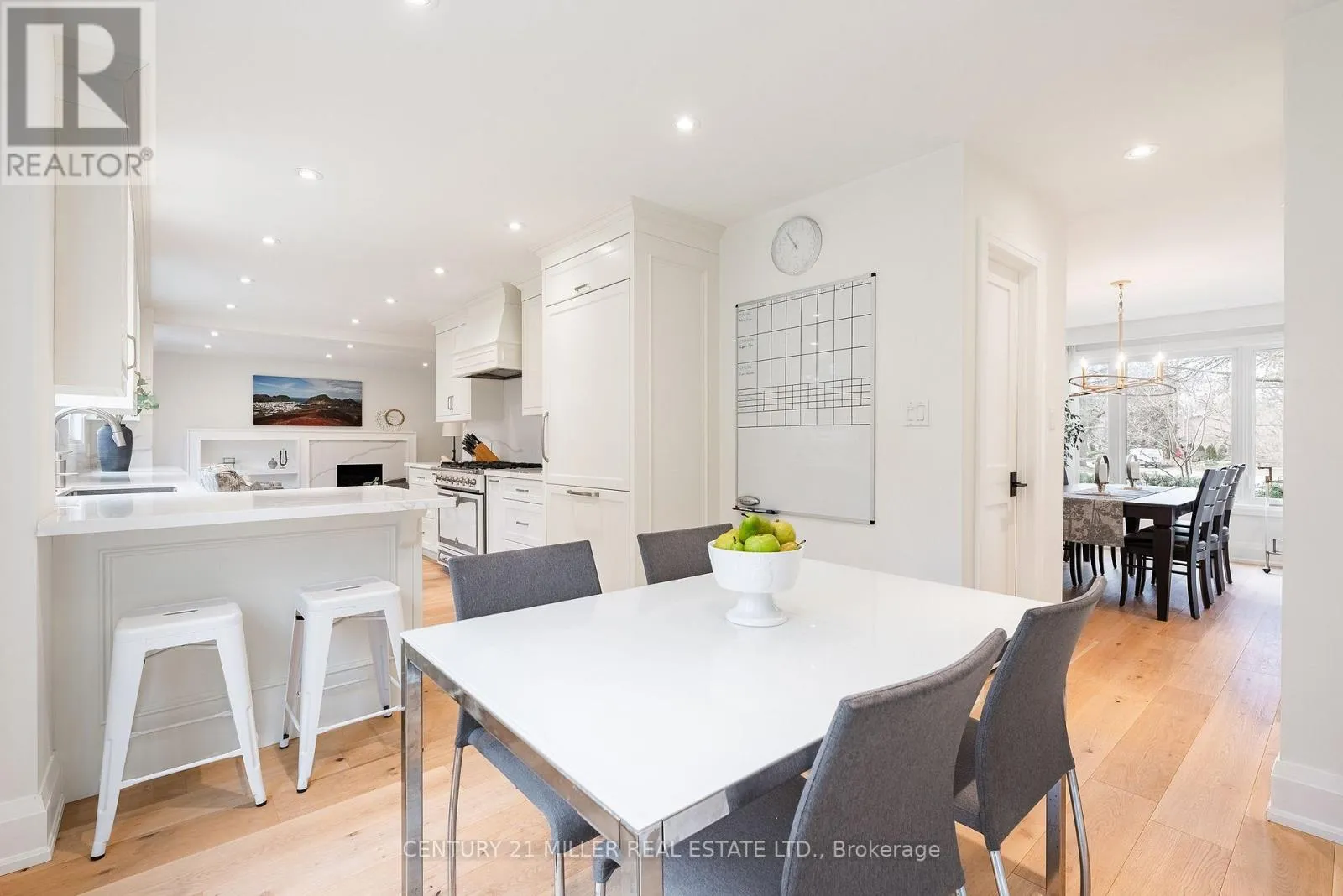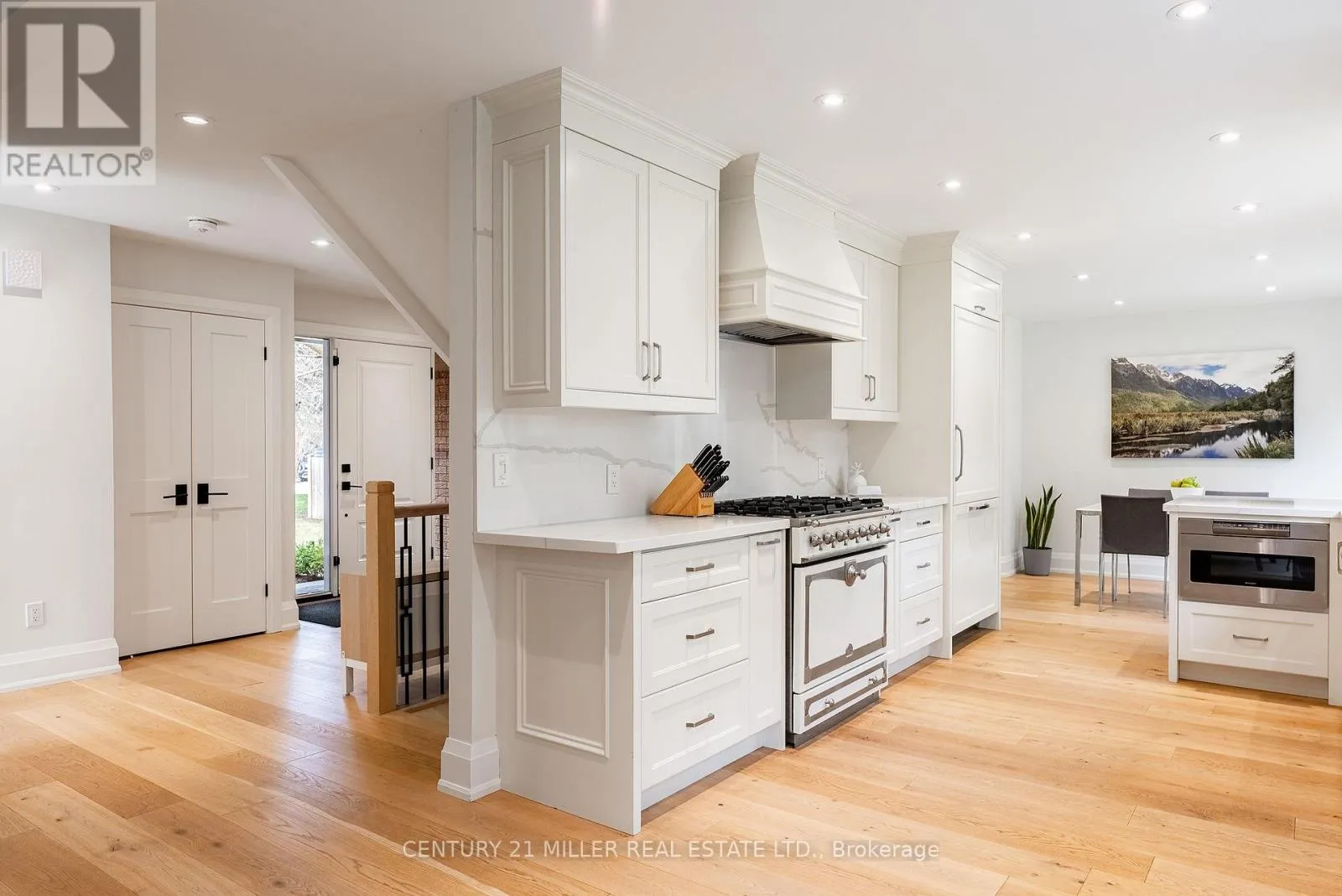 Morrison to Coleen Completely redesigned from top to bottom in 2019, this stunning family home in the Morrison neighbourhood offers over 3,100 sq ft of refined living space on a premium 181' deep lot.The main level impresses with wide plank oak hardwood floors, decorative wrought iron railings, and new lighting and trim work throughout. The custom kitchen features Calcutta gold quartz countertops, a La Cornue dual fuel range, integrated Fisher & Paykel and Bosch appliances, breakfast counter and a servery with walk-in pantry and beverage fridge. The formal dining room showcases custom wall panelling, while the family room centres around a custom fireplace mantel with direct access to the rear yard.Upstairs, four generous bedrooms include a primary retreat with a walk-in closet and spa-inspired 4-piece ensuite featuring Statuario porcelain tile and a seamless glass shower. Three additional bedrooms share a beautifully appointed 5-piece bath with Carrara marble finishes and a deep soaker tub.The fully finished lower level adds a spacious rec room, a bonus office or gym, a 5th bedroom, and a stylish 3-piece bath with seamless glass shower; perfect for a growing family.Outside, enjoy a professionally landscaped yard with irrigation and interlock patio. Major 2019 updates include privacy fence, asphalt driveway, windows, doors, garage door, eaves/soffits, and downspouts, along with a new furnace in 2025, security window film 2025.Minutes to Oakville Trafalgar High School, top-rated private schools, Oakville GO, and vibrant downtown Oakville. (id:27476)