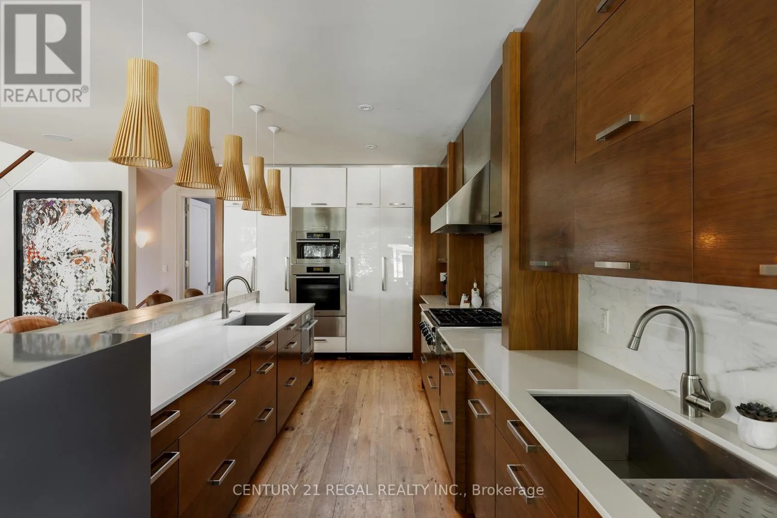 Bronte/ Lakeshore Exquisite 6-Bedroom Estate with Year-Round Pool, Theatre & Wine Room.This distinguished residence is a masterclass in refined living, blending sophisticated design, exceptional craftsmanship, and thoughtful upgrades to create a truly elevated lifestyle experience. From its elegant facade to its timeless architectural details, every element sets the tone for a home of remarkable distinction.At the heart of the home lies a chef's kitchen of culinary excellence, showcasing premium Miele appliances, two dishwashers, and striking designer light fixtures that bring both function and elegance to daily living. A custom bar, exquisitely finished climate-controlled wine room provides an entertainer's dream setting. A private home gym allows for effortless wellness, while the state-of-the-art theatre room with soundproof walls offers an immersive cinematic experience. Kolbe windows that frame the home in elegance and efficiency. A home office offers a serene, light-filled environment for focused productivity. The private quarters feature six generous bedrooms, including a primary suite designed as a personal retreat, complete with a spa-inspired ensuite and a spacious walk-in closet. The lower level presents a fully appointed nanny or in-law suite, featuring its own bedroom and living area-ideal for extended family or guests seeking privacy and comfort. Step outdoors to your private resort sanctuary. A heated year-round pool and hot tub create a haven of leisure, complemented by heated stone concrete for year-round comfort. Retractable pool cover, outdoor bathroom, and beautifully landscaped grounds elevate the experience. Perfectly situated just steps from Bronte Village, this residence offers the ultimate lifestyle-where lakeside charm meets elevated living. Enjoy scenic trails, waterfront parks, boutique shopping, artisanal cafes, and fine dining, all in a vibrant community. Every day feels like a getaway. (id:27476)