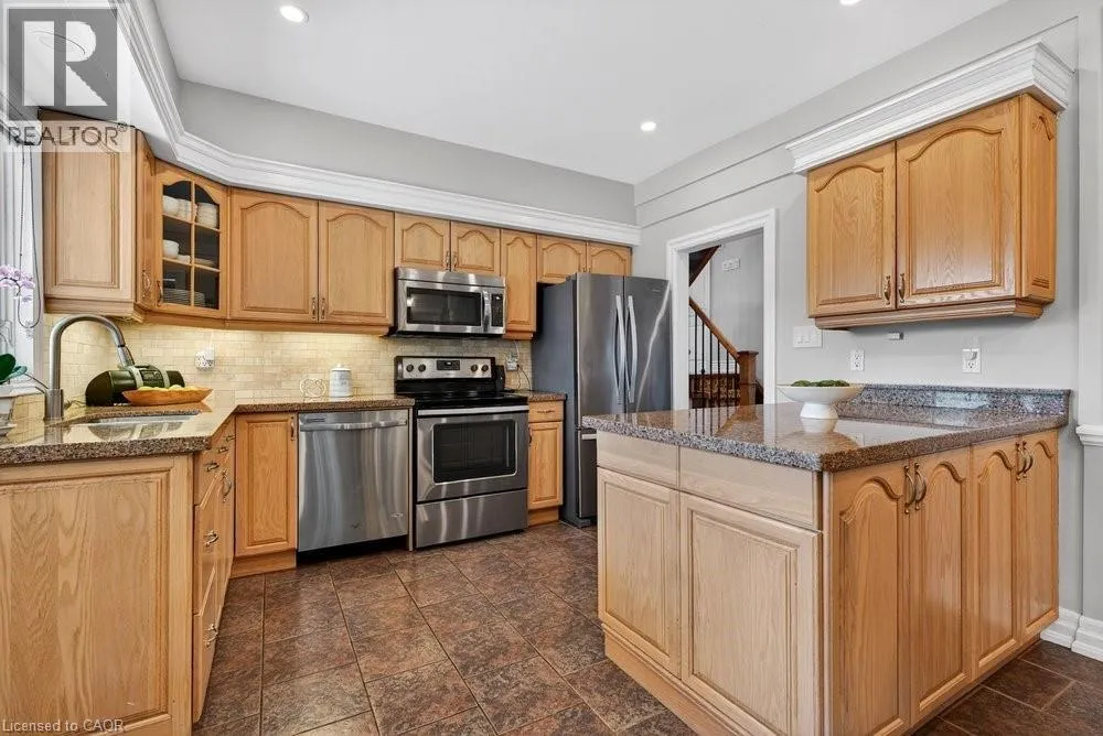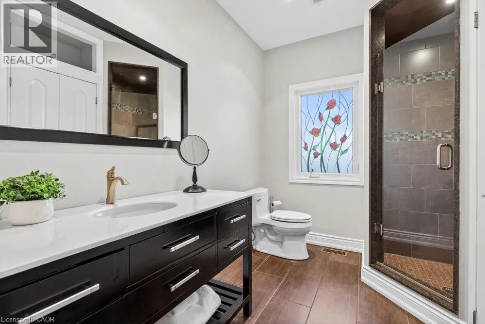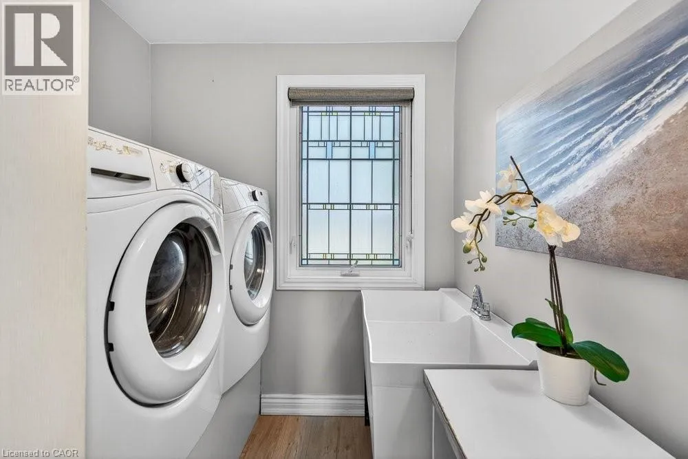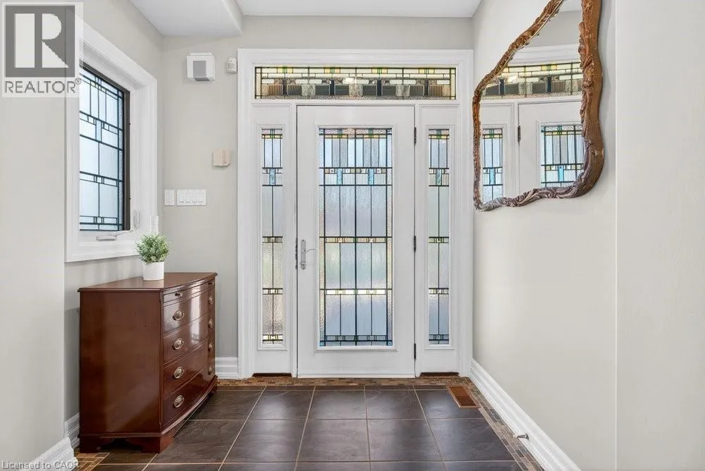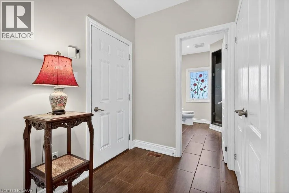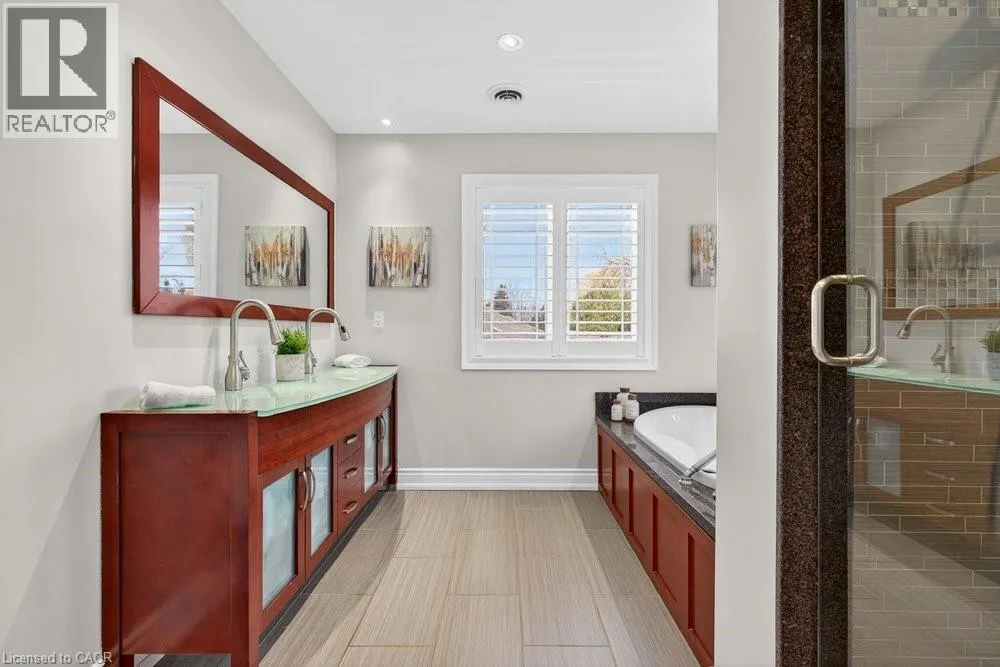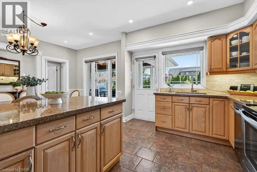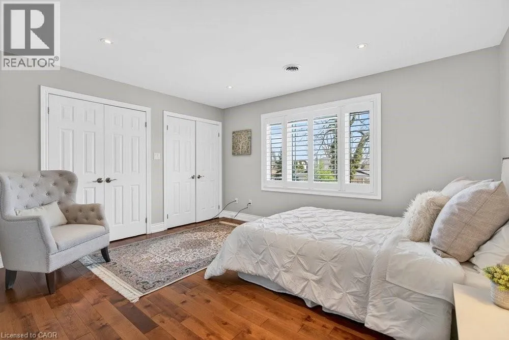 This meticulously renovated, 5-bedroom home, seamlessly blends architectural elegance with a resort-like backyard sanctuary. Sitting on over 1/4 acre (75.71ft x 150.27ft), the private, mature backyard is a masterclass in landscape design, framed by a lush triple-layer of emerald cedars that ensures total seclusion for the salt-water pool and its sophisticated lounging terrace. A striking vaulted covered patio with an intricate wood-inlay ceiling plus 3 skylights, offers a luxurious element and an elevated vantage point over the manicured grounds and pool. Inside, the layout is designed for both effortless entertaining and multi-generational living. The 2-storey home includes a unique side-split level with an open great room/family room that boasts an 11'7 ceiling height, and a conveniently-placed laundry room that serves both the main and upper quarters. On the main level, the gourmet kitchen, living and dining areas, transition openly with windows overlooking the stunning backyard and a walk-out to patio. There is an additional, versatile 'wing' on the main floor that features the fifth bedroom, a pristine 3-pc bath, a separate entry, plus the inside entry to the two-car garage - all accessible without stairs. The second level features four spacious, sunny bedrooms, including a separate primary suite distinguished by a stately coffered ceiling and 5-pc ensuite bathroom, plus there is a 4-pc bathroom on this level. The front windows in the foyer, living room, and family room have been beautifully enhanced with custom-made stained-glass windows for ultimate privacy and distinction. The lower level features a mirror-panelled exercise room/recreation room with a rubber-floor overlay (the equipment is negotiable) with windows on both ends of the room. Rich solid-oak flooring throughout the above-grade levels, and the whole home is carpet-free. Come see this very special home and property in a quiet, friendly neighbourhood of south-west Oakville. (id:27476)