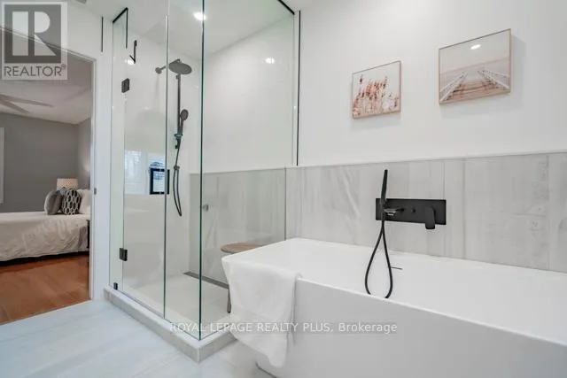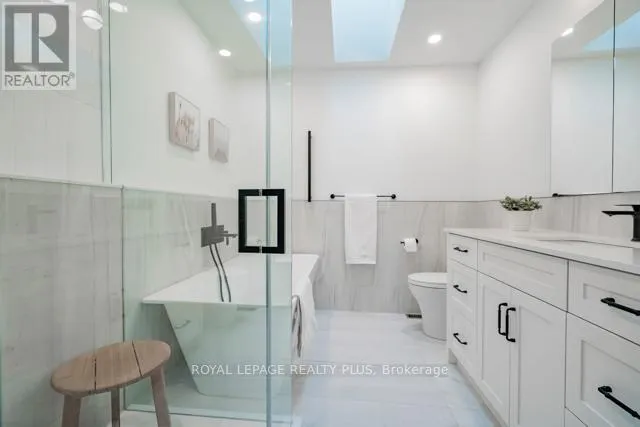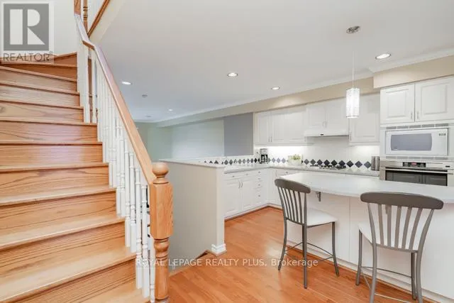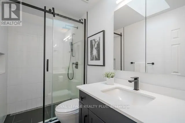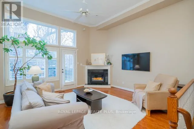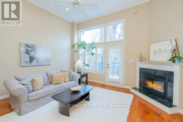 Cross Streets: South Of Lakeshore/Kerr Street. ** Directions: South of Lakeshore/west of the Sixteen mile creek. This beautifully appointed executive freehold townhome is nestled in an exclusive enclave south of Lakeshore Road in Oakville. The home has large windows, high ceilings, three skylights and a full western exposure, providing exceptional natural light throughout. California shutters are on all windows in the home to optimize a streamlined look. The home features two bedrooms--the primary bedroom with an ensuite overlooks a treed backyard. Both bathrooms on the third floor have been professionally designed and extensively renovated completely to the studs. The ensuite bathroom combines comfort and modern elegance, with heated floors, a stunning glass-enclosed shower, stand-alone bathtub, and a skylight. The second third-floor 3-piece bathroom also has a beautiful glass enclosed shower with modern finishes and a skylight.The open and airy kitchen and dining room space faces west and has lots of windows. It includes a built-in pantry and cabinets and a built-in microwave. The living room features high ceilings and large windows with a walkout to the deck all overlooking a treed backyard. A set of stairs off the deck leads down to an expansive patio, perfect for relaxing and entertaining. The lower level features a 2-piece bathroom and a spacious family room filled with natural light and a walkout to the patio surrounded by trees, a perfect quiet space to relax or entertain. Steps to the lake and waterfront promenade. Nearby are Marina, Sixteen Mile Creek, shopping, cafes and restaurants, doctors, dentists, community centers, outdoor and indoor pools, tennis courts, library, vibrant entertainment, scenic parks, renowned private schools with a few minutes' drive to GO train Station. (id:27476)