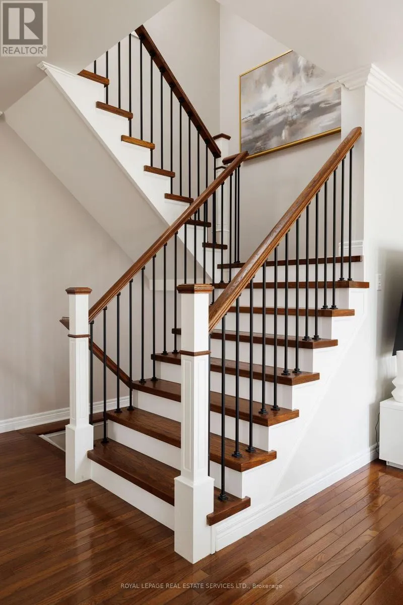 Cross Streets: Pinecliff & Gulledge. ** Directions: WestOak Trails- Oakhaven-Pinecliff -Gulledge. Stunning, turnkey home in sought-after West Oak Trails, backing directly onto Bloomfield Park with no rear neighbours-an exceptional setting offering privacy, tranquil views, and direct gate access to green space and trails. Located in a top-rated school district and minutes to Oakville Trafalgar Memorial Hospital, Glen Abbey Community Centre, The Abbey Plaza, Bronte GO Station and highways (QEW/407), this home blends nature with urban convenience. Exceptional curb appeal features beautiful, manicured gardens, an exposed aggregate double driveway leading to the double garage with inside entry, while soffit lighting enhances the upgraded brick exterior. The private backyard retreat boasts a spacious exposed-aggregate patio-ideal for entertaining or relaxing in a serene, park-like setting. Offering well-designed above-grade living space plus a finished basement, this home showcases hardwood floors, crown mouldings, California shutters, 9' ceilings, pot lights, and an upgraded staircase with metal pickets. The bright family room, with elegant crown mouldings, a gas fireplace, and a wall of windows, overlooks the park. A formal dining room is perfect for hosting, and the kitchen features maple cabinetry with valance lighting, quartz counters, stainless steel appliances, a centre island with a breakfast bar, and a walkout to the yard. Upstairs offers 3 bedrooms, plus a versatile den (optional 4th bedroom), and 2 renovated baths, including a luxurious primary retreat with a spa-inspired 5-piece ensuite, heated floor tiles, soaker tub, and glass shower with body jets. The finished basement adds a large rec room, 4th bedroom (no closet) with fireplace, and 3-piece bath-ideal for families or multi-generational living. Updates: roof (2015), furnace & HWT (2016), A/C (2021). (id:27476)