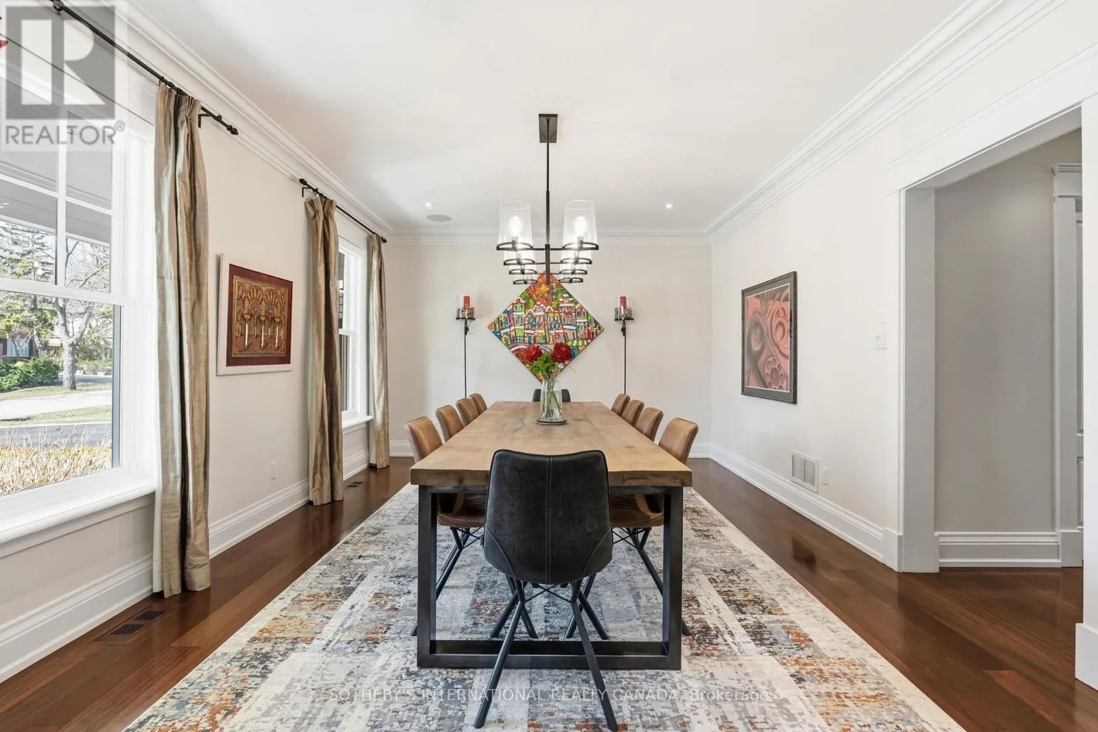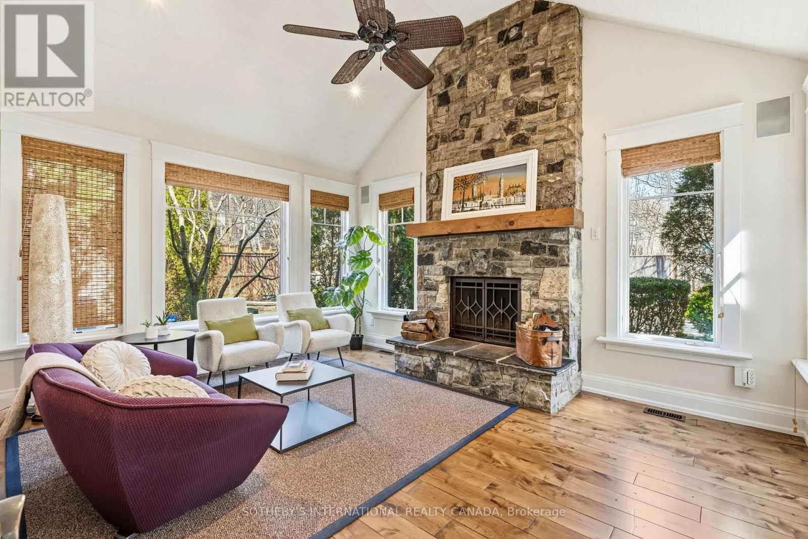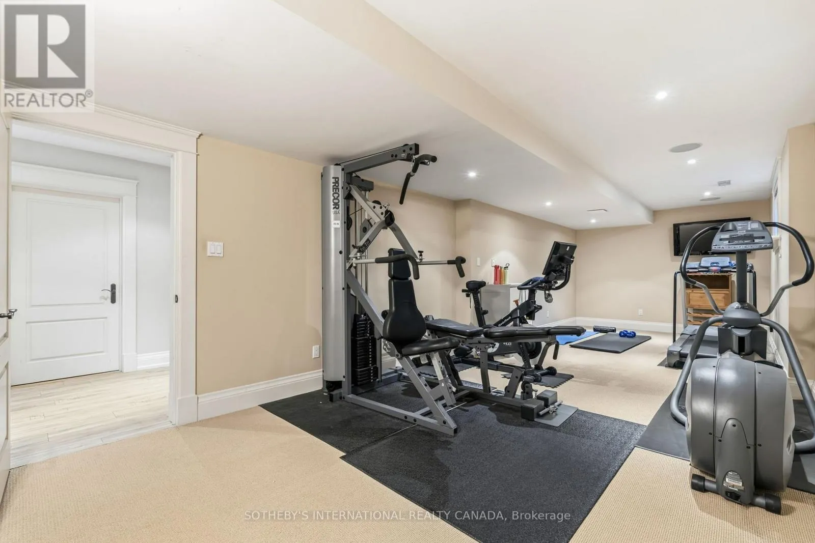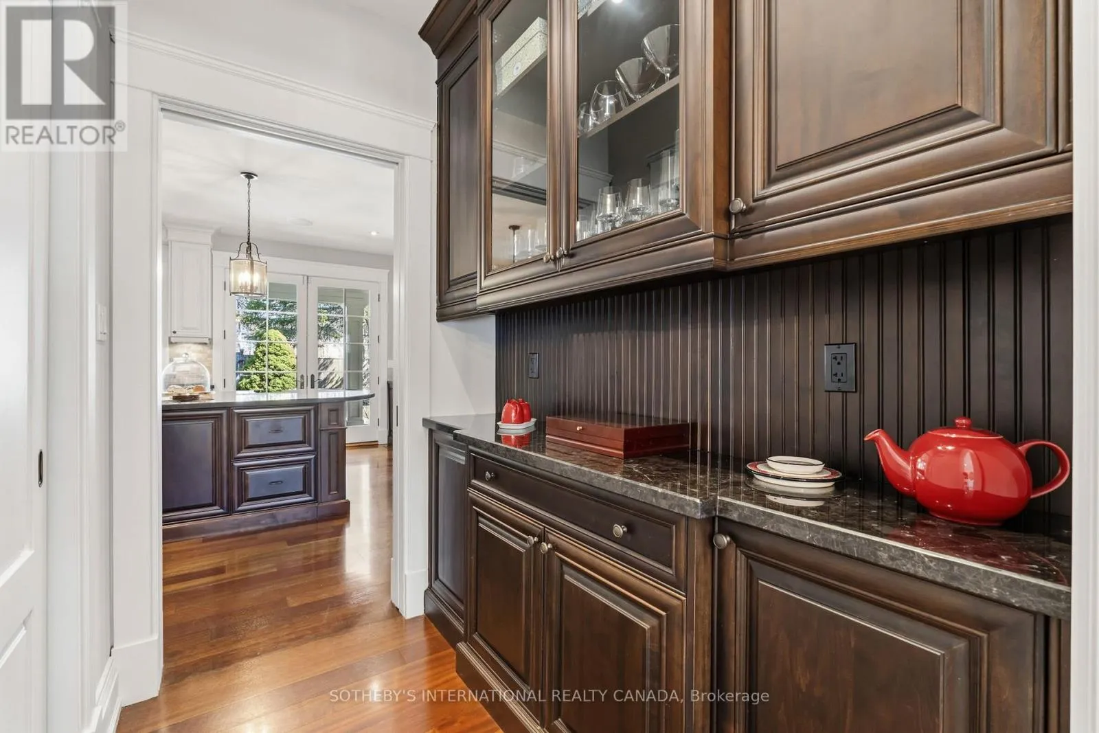 Lakeshore and Birch Hill Lane Elegant Cape Cod-inspired masterpiece set on a quiet cul-de-sac in prestigious South West Oakville. Ideally situated just steps from Lake Ontario and Appleby College, this residence offers over 6,100 sq. ft. of sophisticated living space featuring 4+1 bedrooms and 6 bathrooms. The grand two-story center-hall entrance is accented by rich Brazilian hardwood floors. The expansive chef's kitchen is complete with a large island, 6-burner Wolf stove-top, a sub zero fridge and sub-zero fridge/freezer drawers in the island. Large double doors, leading to the manicured backyard, flood the kitchen and breakfast nook with natural light. Designed for seamless entertaining, the main level features a formal dining room serviced by a butler's pantry and an inviting living room anchored by a cozy fireplace. Retreat to the serene Muskoka Room, boasting a wood-burning fireplace and tranquil views of the resort-style backyard. The main floor is completed by a side entrance, a functional laundry/craft room and a 2-piece powder room. This level has direct access to the 2 car garage with 2 EV charging stations. The upper level hosts a luxurious primary retreat with dual walk-in closets and a spa-inspired ensuite. Three additional generous bedrooms each feature private ensuites and walk-in closets. You won't want to miss the large bedroom over the garage that makes for the perfect teen retreat. The lower level is an entertainer's dream, offering a large recreation room with a pool table, a full gym, a guest suite, and a cedar-lined wine cellar. State-of-the-art mechanicals include two hot water tanks, 200 amp power for the home and a sump pump. The professionally landscaped grounds feature 14 zone irrigation system, an inground pool and multiple lounging areas, creating an outdoor oasis. The house is wired with a professional Sonos sound system. Ideally located near top-ranked schools and parks, this turnkey home offers an unparalleled lifestyle in Oakville's most coveted pocket. (id:27476)