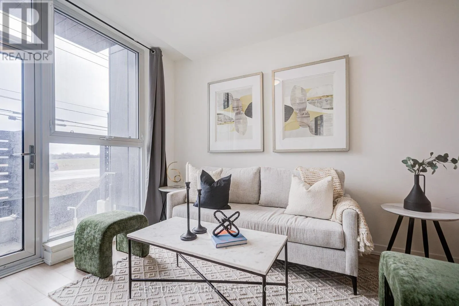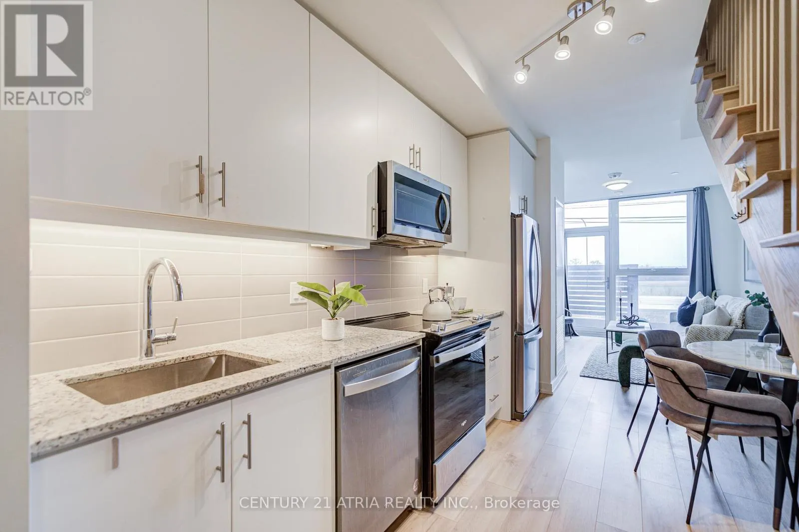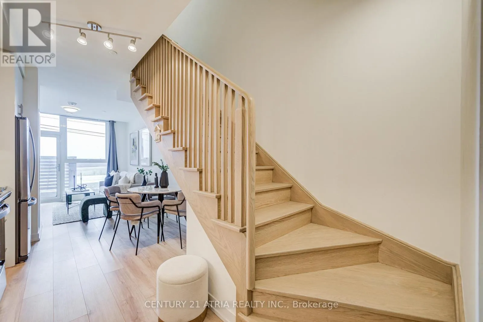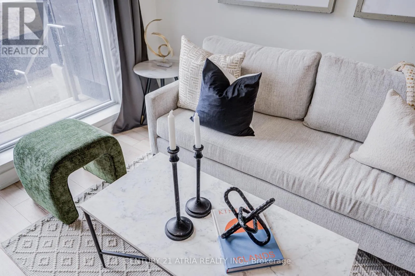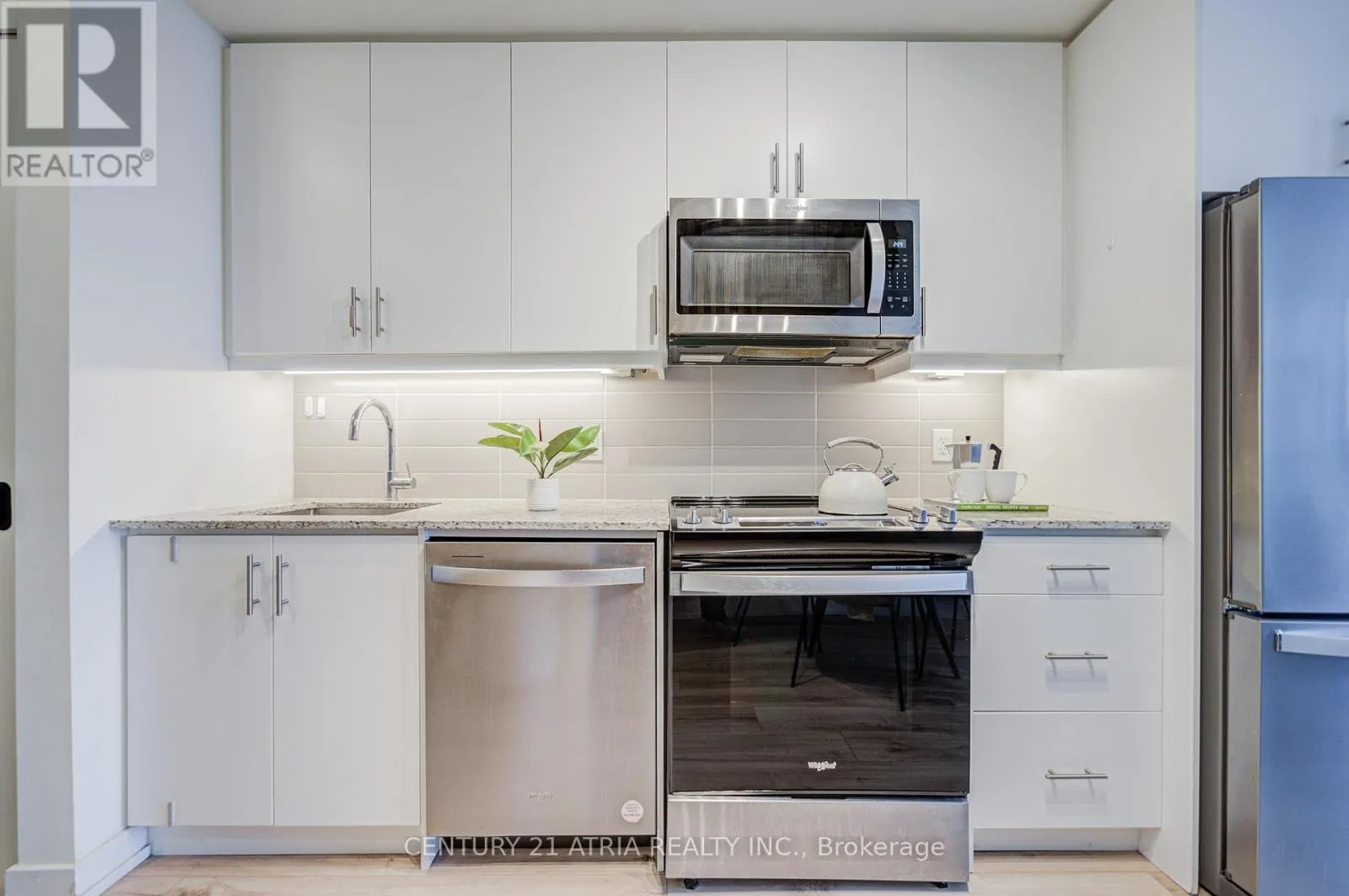 Cross Streets: Dundas St W & Trafalgar Rd. ** Directions: On Dundas & Trafalgar, Head North on Trafalgar, Turn right on White Boom Drive. A rare TWO-STOREY suite in one of Oakville's newest buildings! At almost 700sqft this bright, sun-drenched one-bedroom in Oakvillage features a smart layout with living and kitchen on the main floor, and a spacious bedroom tucked away on the upper level - offering privacy you don't usually get in condo living! Thoughtful upgrades throughout: TV conduit in the living room, sliding closet doors, and under-cabinet lighting in the kitchen - which also features granite countertops, ceramic backsplash, and stainless steel appliances. Control your thermostat, lock your door, and set your alarm from your phone with smart home features built in. Bell Fibe internet is included in condo fees - one less bill to think about! Rooftop terrace with BBQs and skyline water views, gym, and party room on-site. Steps to Longo's, Superstore, Walmart, Starbucks, restaurants, parks, trails, and top-ranked schools. Minutes to transit, Sheridan College, Iroquois Ridge Community Centre, and Hwys 403/407/QEW. (id:27476)