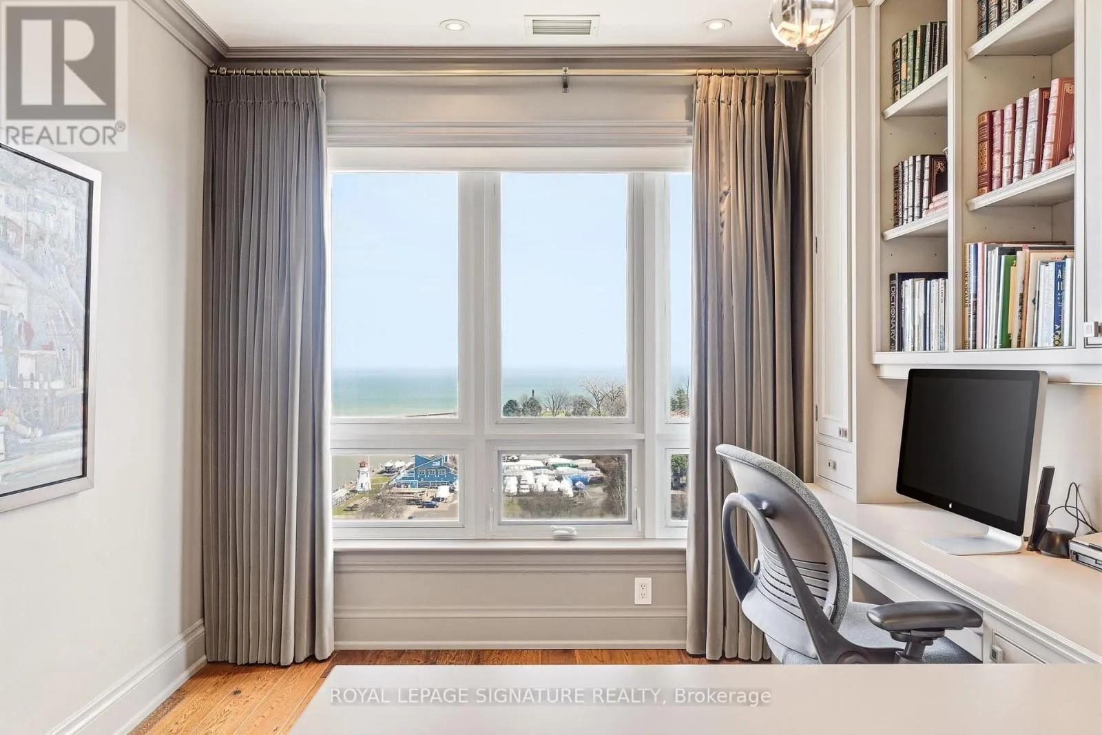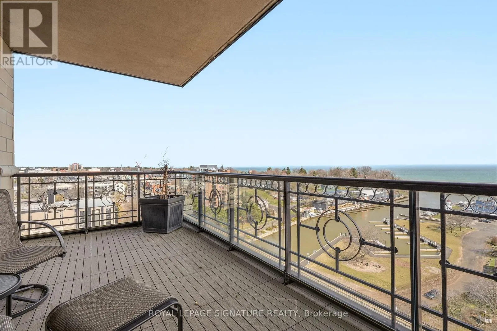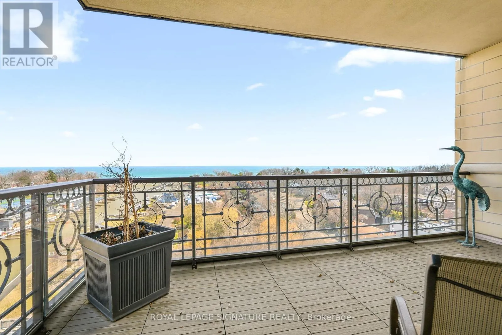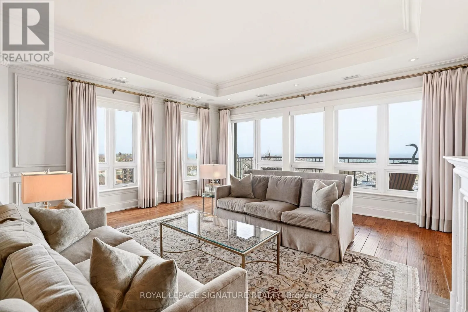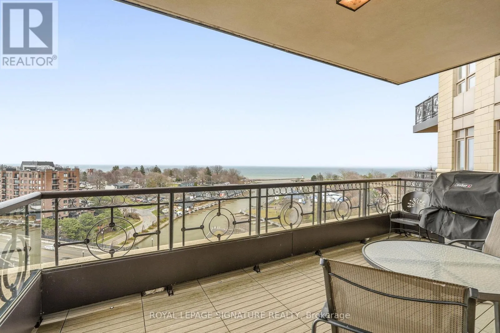 Cross Streets: Forsythe. ** Directions: Lakeshore x Forsythe. Penthouse living with breathtaking lake and river views from every principal room. This beautifully designed 2,830 sq ft residence, professionally decorated by Brian Gluckstein, offers a seamless blend of luxury and comfort. Expansive living and dining areas feature hardwood floors, a gas fireplace, and a walkout to a private balcony. The Downsview kitchen is equipped with premium Miele, Sub-Zero, and Wolf appliances, including a gas cooktop and a wine fridge, and features an eat-in area opening to a second balcony with upgraded decking. A fully integrated Savant system with Lutron lighting and automated shades enhances everyday living. The thoughtfully redesigned layout features a stunning primary suite with lake and river views, a private balcony, an expansive dressing room, in-suite laundry, and a five-piece ensuite with heated floors. The second bedroom is privately positioned with lake views and its own three-piece bath. Additional features include a dedicated office with built-ins, a separate den, EV-ready parking, a storage locker, and the option to be offered furnished or unfurnished. A rare opportunity to lease a truly exceptional waterfront penthouse. (id:27476)