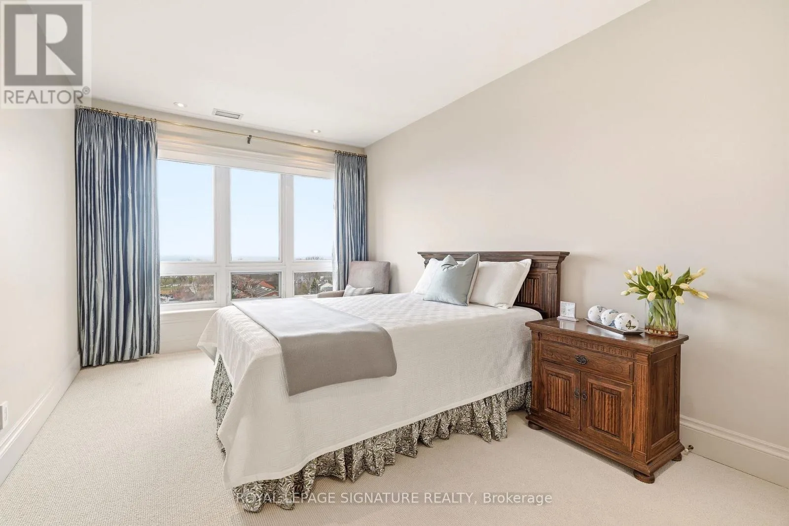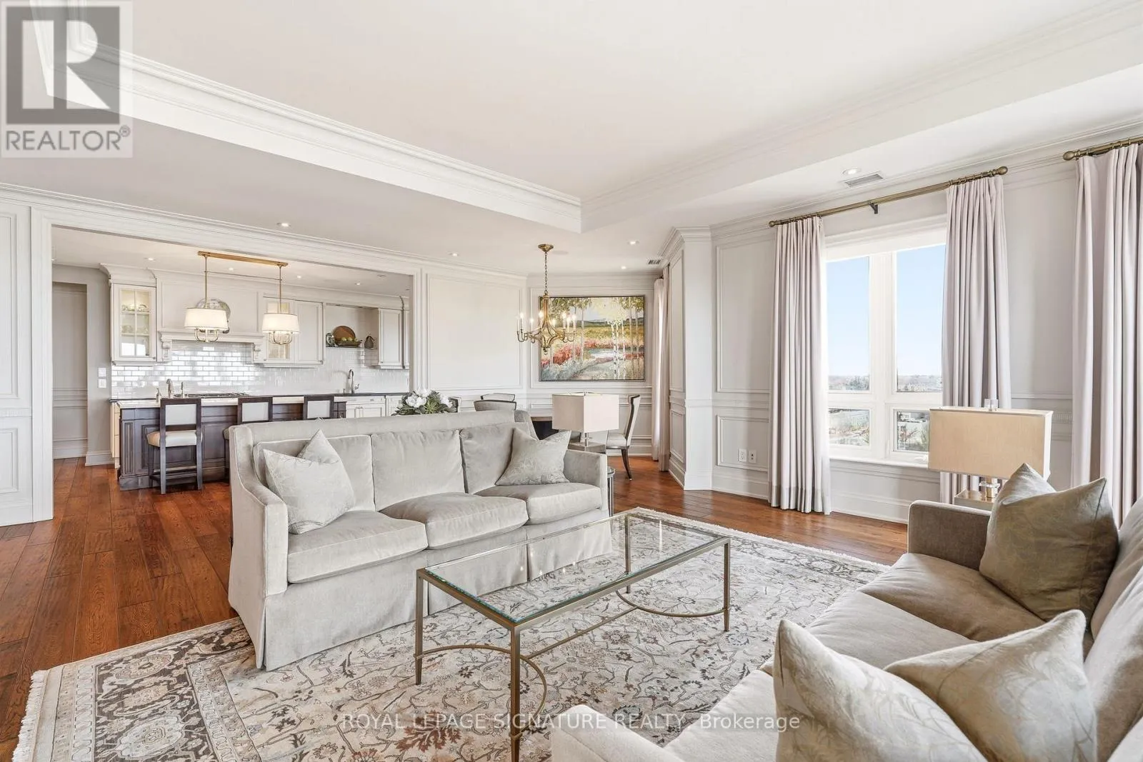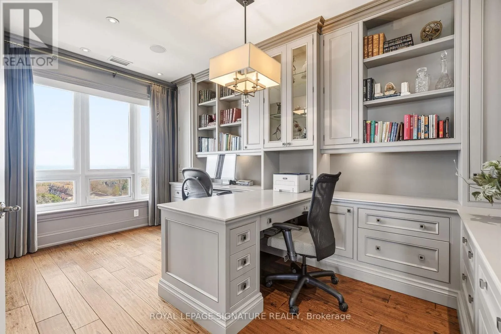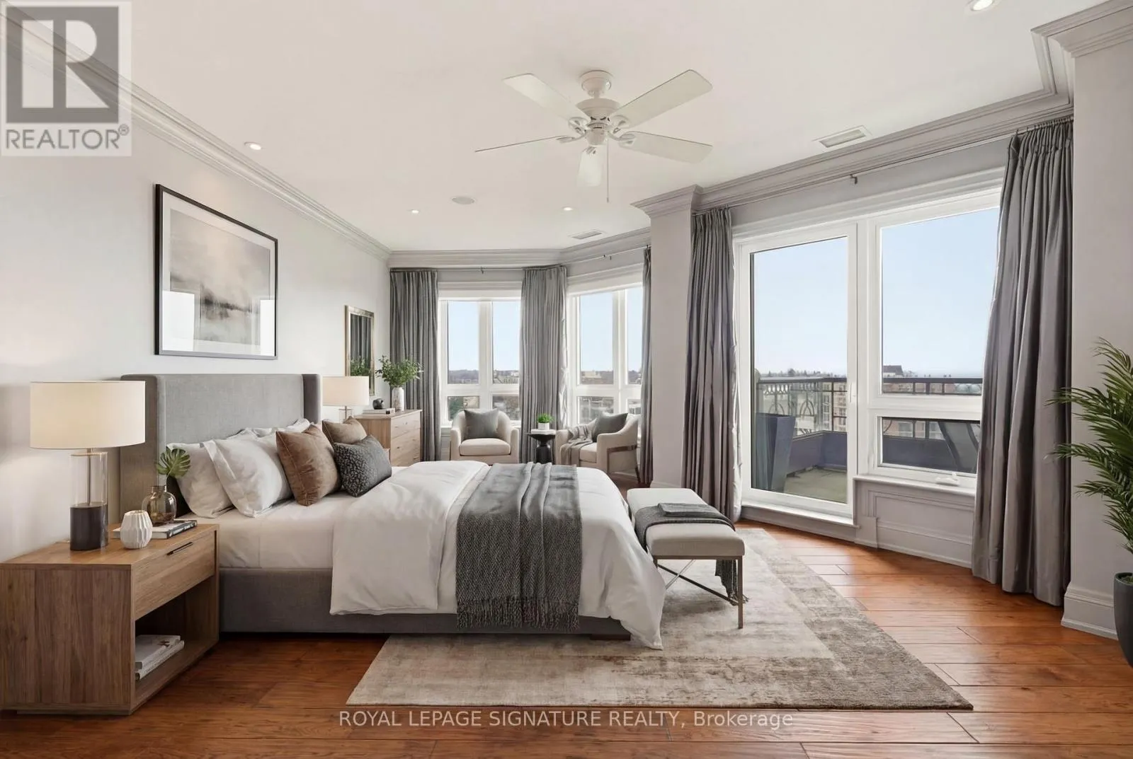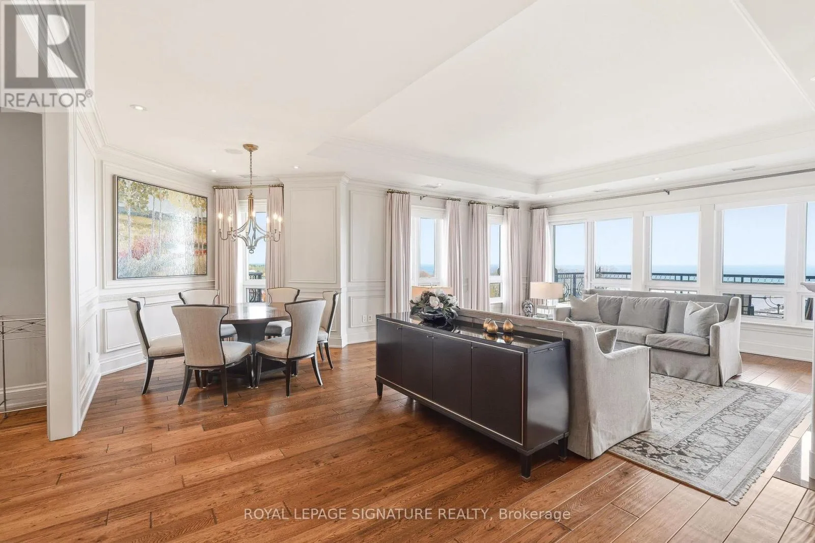 Cross Streets: Forsythe. ** Directions: Lakeshore x Forsythe. Penthouse living with breathtaking lake and river views from every principal room. This beautifully designed 2,830 sq ft residence, professionally decorated by Brian Gluckstein, offers a seamless blend of luxury and comfort. Expansive living and dining areas feature hardwood floors, a gas fireplace, and a walkout to a private balcony. The Downsview kitchen is equipped with premium Miele, Sub-Zero, and Wolf appliances, including a gas cooktop and a wine fridge, and features an eat-in area opening to a second balcony with upgraded decking. A fully integrated Savant system with Lutron lighting and automated shades enhances everyday living. The thoughtfully redesigned layout features a stunning primary suite with lake and river views, a private balcony, an expansive dressing room, in-suite laundry, and a five-piece ensuite with heated floors. The second bedroom is privately positioned with lake views and its own three-piece bath. Additional features include a dedicated office with built-ins, a separate den, EV-ready parking, a storage locker, and the option to be offered furnished or unfurnished. A rare opportunity to lease a truly exceptional waterfront penthouse. (id:27476)