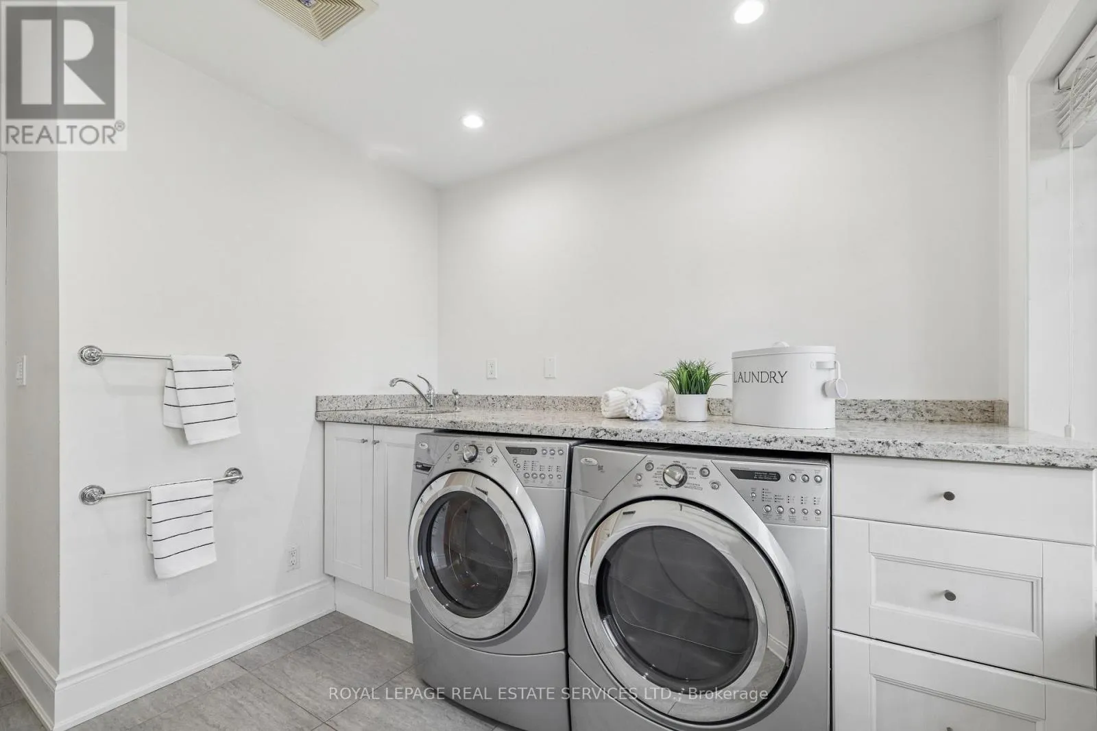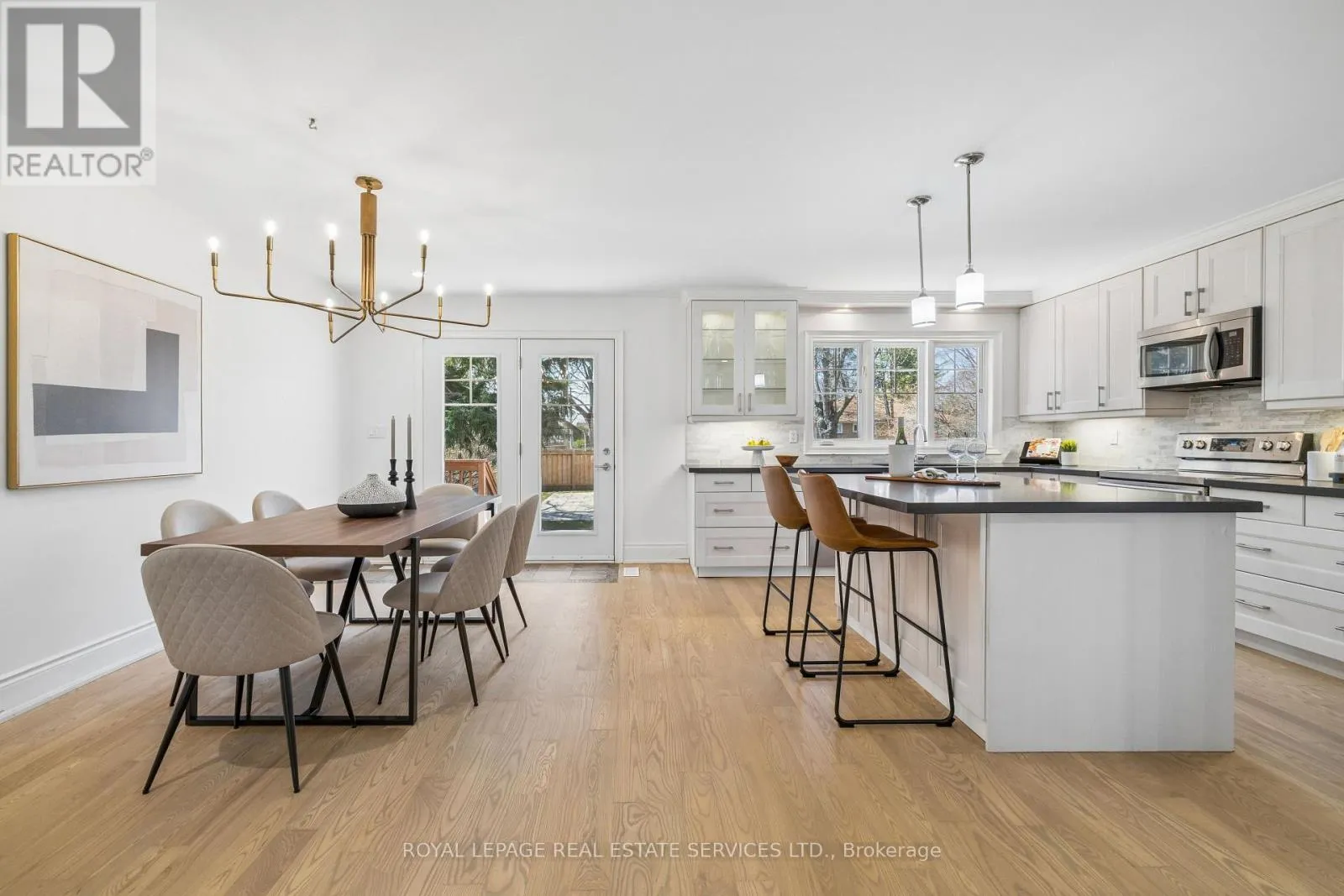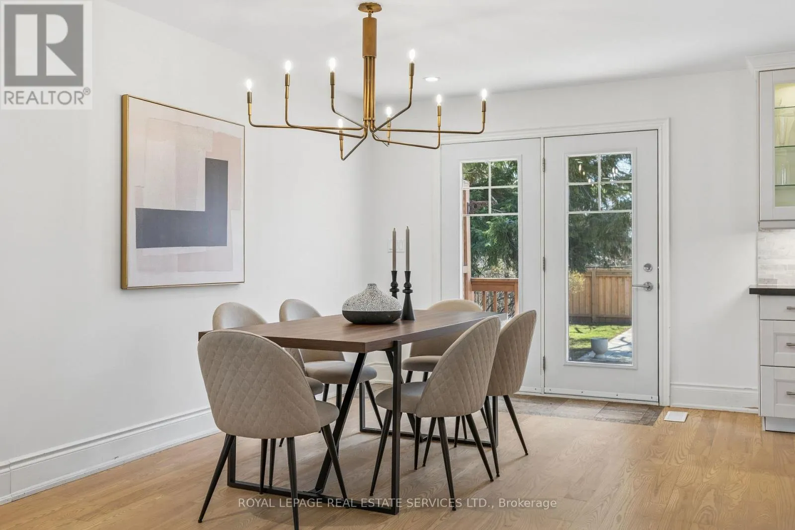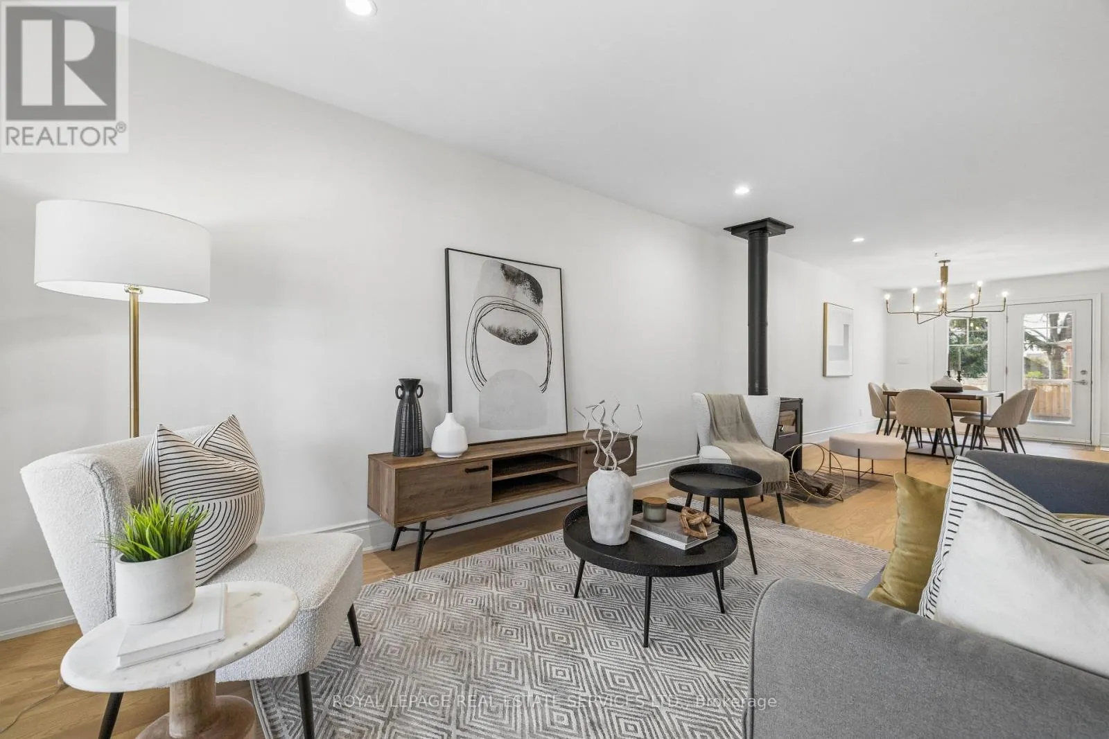 Rebecca St & Fourth Line Nestled on a quiet street among multi-million dollar homes in a mature West Oakville neighborhood, this beautifully updated raised bungalow is an exceptional find for downsizers and families alike. Offering over 2,200 square feet of freshly painted living space, the home features a highly functional 2+2 bedroom, 2-bathroom layout. Newly redone hardwood floors flow effortlessly throughout the bright, open-concept main level, where a cozy living room anchored by a charming wood-burning stove seamlessly connects to a stunning modern kitchen. This culinary space is perfectly appointed with stainless steel appliances, crisp white shaker cabinetry, and a large quartz center island. Downstairs, the finished lower level significantly expands your living space, boasting a spacious recreation room, a versatile den, a convenient three-piece bathroom, and two additional bedrooms accented by French doors. Step outside to discover your own private, fully-fenced backyard oasis shaded by mature trees. An elevated wooden deck and green lawn lead down to an expansive Banas stone patio that beautifully frames a premium, three-year-old saltwater pool. Designed for ultimate outdoor entertaining, this resort-style retreat is complete with tranquil water feature, an automatic cover, and a brand-new privacy fence. Perfectly situated just minutes from the boutique shops and fine dining of downtown Oakville, this home offers an unparalleled lifestyle near top-rated schools, including Pinegrove Public School, St. Thomas Aquinas, and Appleby College. Some photos have been virtually staged. (id:27476)