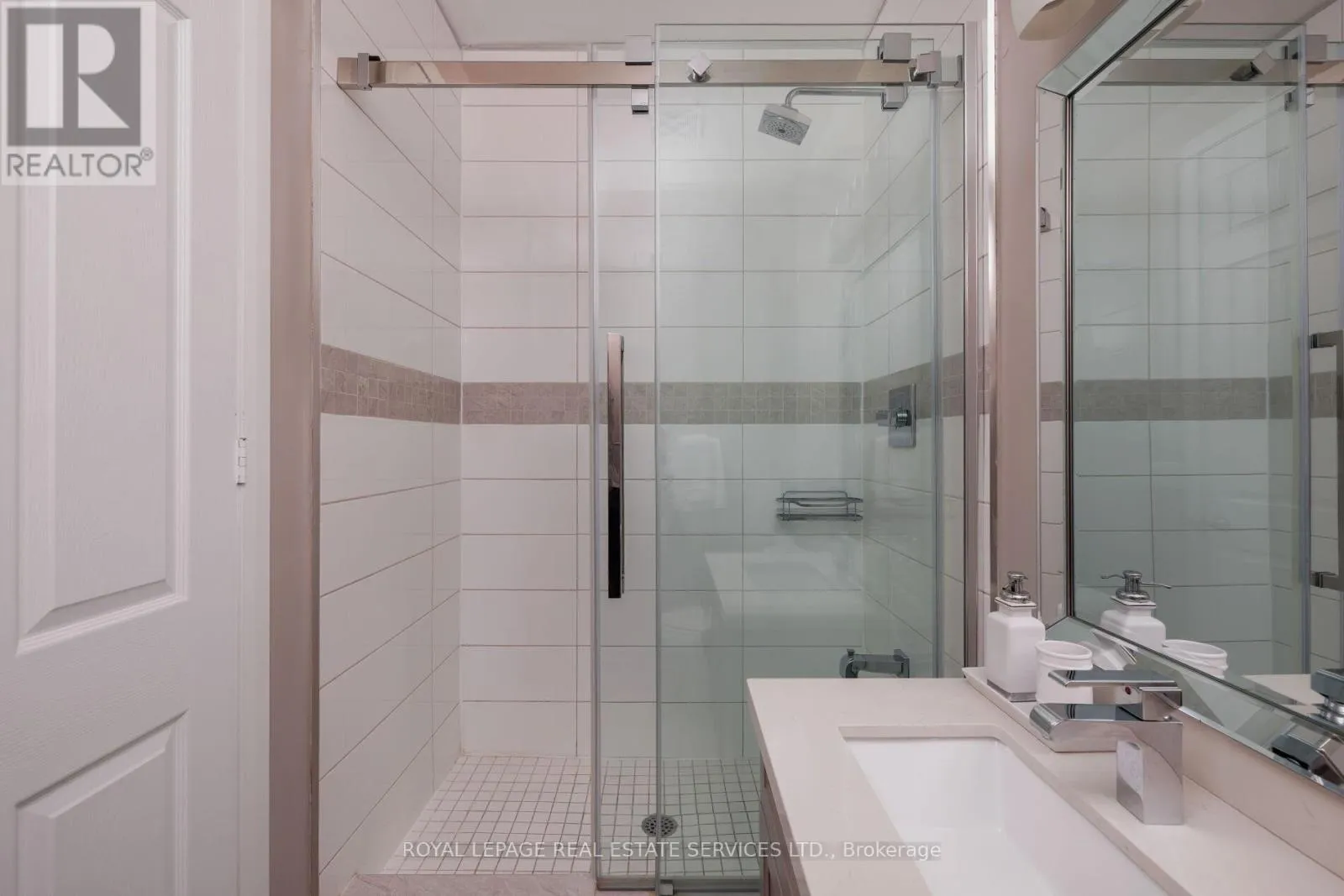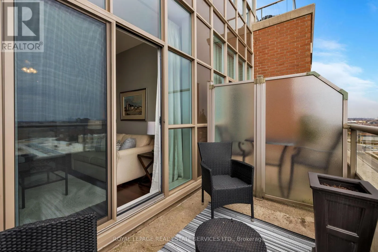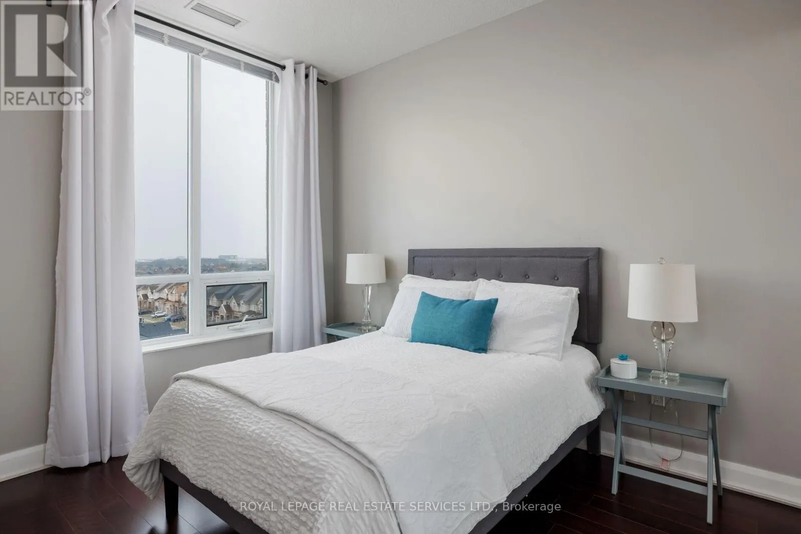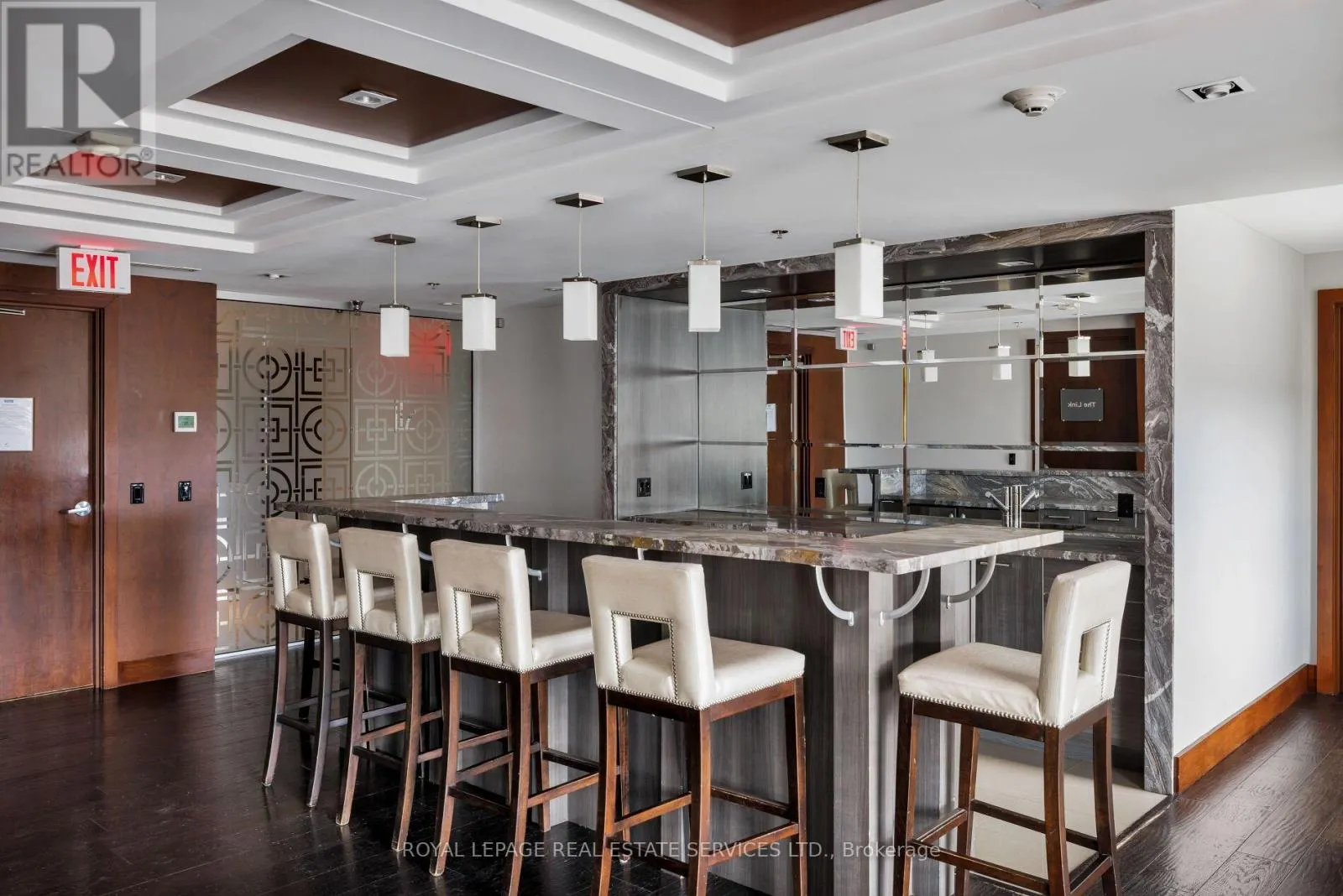 Cross Streets: Dundas & Prince Michael. ** Directions: Dundas - Prince Michael. Embrace stylish, contemporary living at Emporium Condos in sought-after Joshua Creek, ideally located within walking distance of restaurants, Starbucks, Shoppers Drug Mart, TD Bank and a medical centre, with Uptown Core and Oakville Trafalgar Memorial Hospital just minutes away. Commuters enjoy effortless access to transit, major highways and the GO Train. This beautifully updated 1-bedroom plus den suite on the 7th floor features soaring 10-ft ceilings, wide-plank flooring and large windows that flood the space with natural light. The open-concept living and dining area features a walkout to a private balcony, and the stylish kitchen offers dark, extended-height cabinetry, stone counters, a subway-tile backsplash, a peninsula/island and stainless-steel appliances. The spacious primary bedroom includes a huge window and mirrored closet doors, and the spa-inspired 3-piece bathroom features an oversized glass shower. A versatile den, in-suite laundry, underground parking and locker add convenience. The building impresses with landscaped grounds, a boutique-style lobby with fireplace and premium amenities including an indoor pool, whirlpool, fitness centre, theatre room and party space-delivering luxury, comfort and a low-maintenance lifestyle in a prime Oakville location. (id:27476)