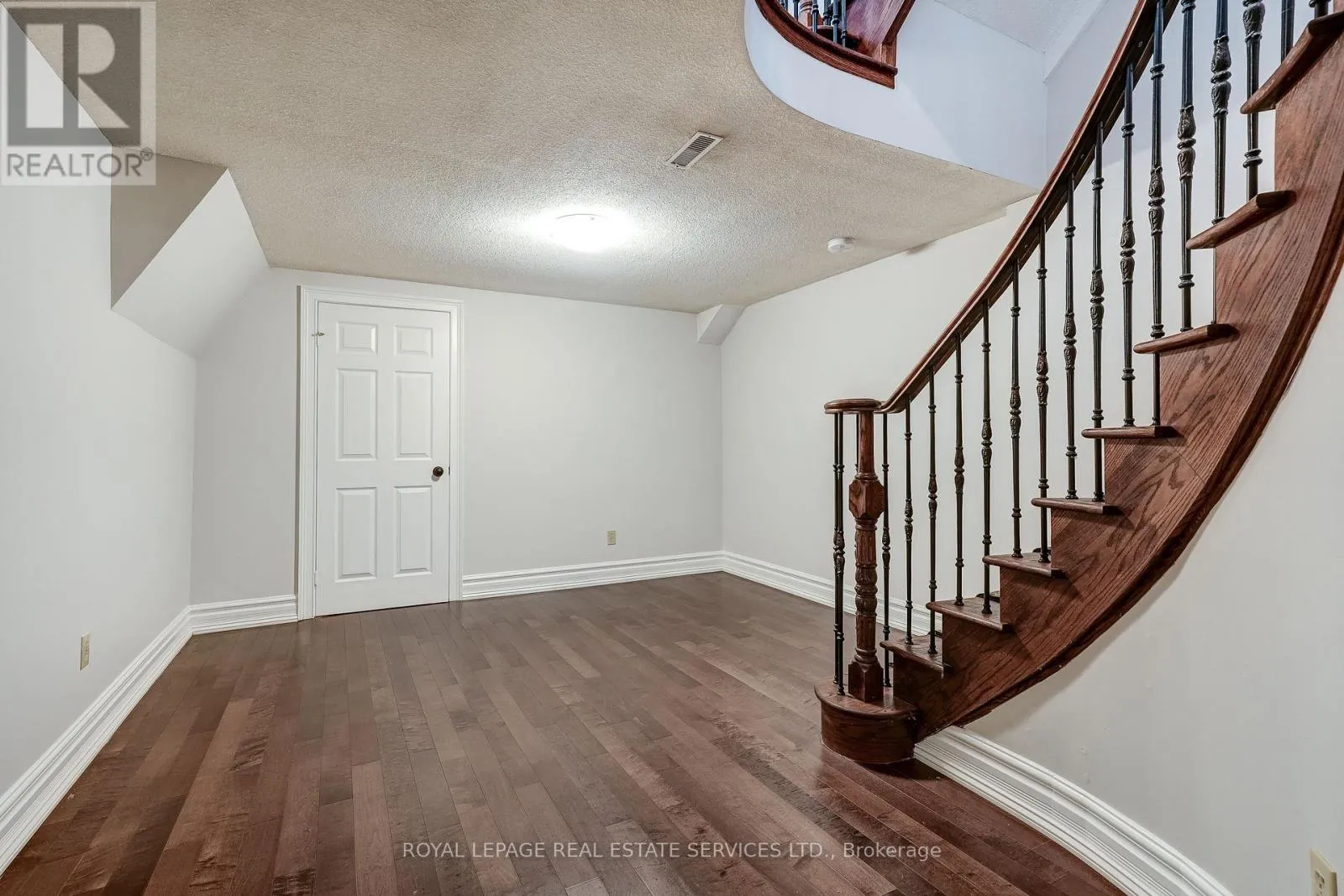 Cross Streets: River Oaks & Oakmead. ** Directions: River Oaks to Morrison Creek Cres. Situated on a sought-after family friendly street backing onto a serene wooded green space setting in one of Oakville's most desirable neighbourhoods and within walking distance to top rated schools, parks, trails, transit and everyday amenities, this home offers the ideal blend of location, lifestyle and convenience. Freshly updated and move-in ready, the home features hardwood flooring and crown moulding throughout the main living areas, creating a warm and elegant atmosphere. A stunning upgraded circular oak staircase with iron pickets adds timeless character and style. The bright and functional layout offers spacious principal rooms and excellent flow for entertaining. The updated chef inspired kitchen features granite counters, extensive prep space, a centre island and large pantry. The kitchen walks out to a large deck overlooking the private backyard and wooded trail system, ideal for outdoor dining, entertaining or relaxing with peaceful greenspace views. The adjoining family room offers a cozy wood burning fireplace and overlooks the rear yard. A main floor den/office provides the ideal work from home space, while main floor laundry adds everyday convenience. The upper level offers a spacious primary retreat with sitting area, large walk-in closet and updated 5pc ensuite with soaker tub and separate shower. Bedrooms 2, 3 and 4 are all generously sized with hardwood floors, large windows and ample closet space. The upper hallway includes a flexible sitting, homework or second floor family room area. The fully finished basement expands the living space with a 5th bedroom, large recreation room with wood burning fireplace, games area, 3pc bath and excellent storage. Outside, a new (2025) stone walkway enhances curb appeal. Private fully fenced backyard backing onto wooded trails and green space, rarely offered in River Oaks. Note: Pie shaped Lot Frontage 55.0ft. x depth125.31ft. x Rear width 80.22ft. x Depth 146.58ft. Original Owners! (id:27476)