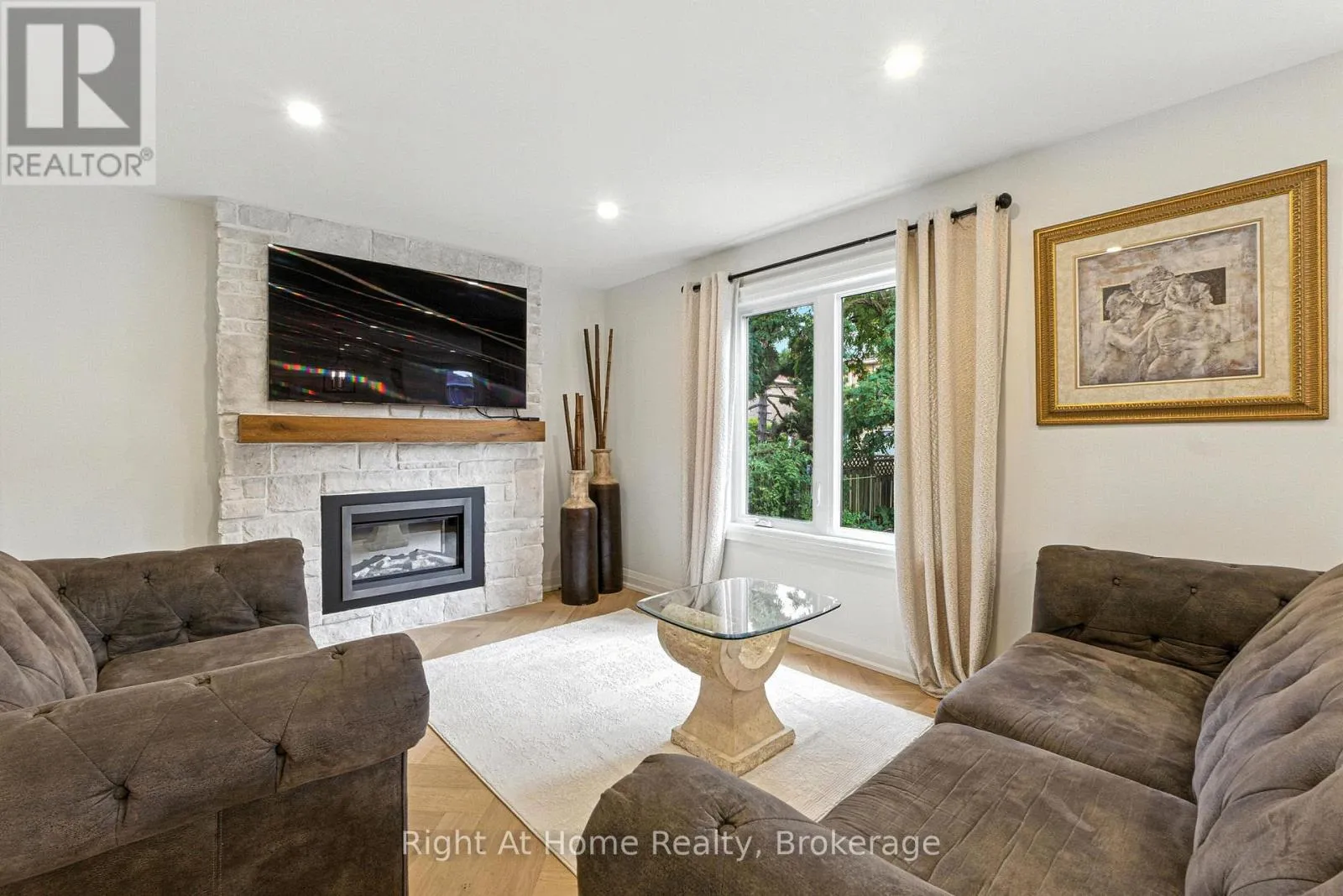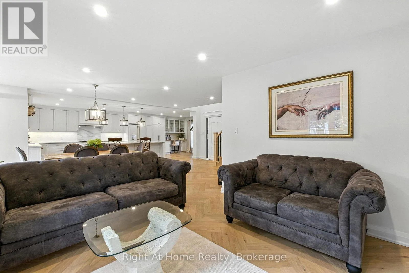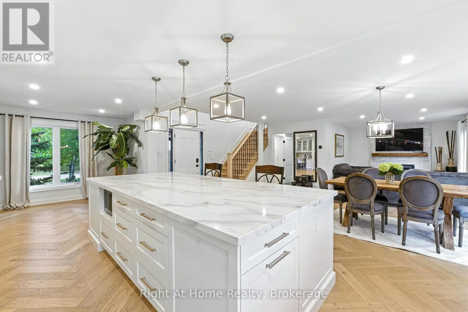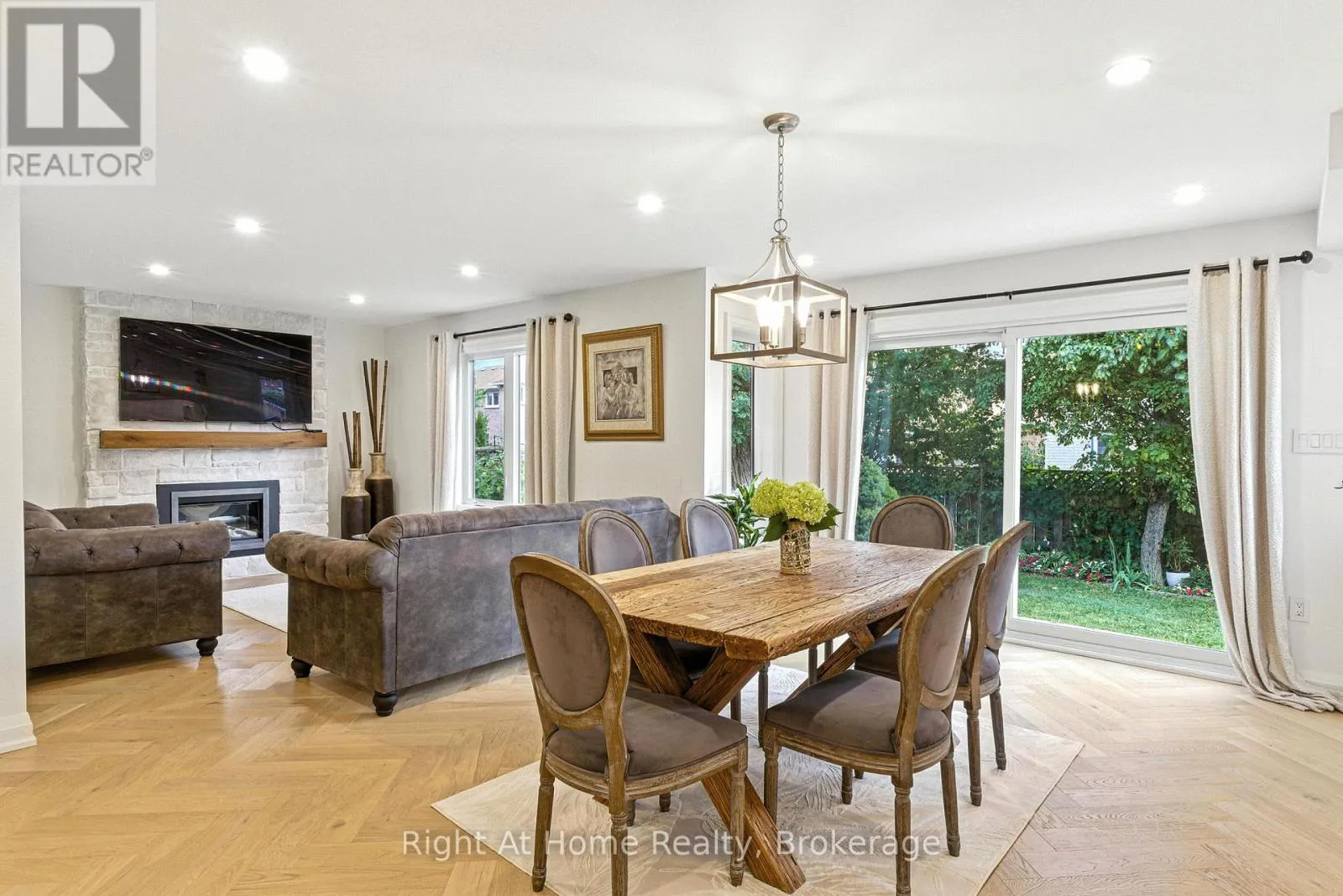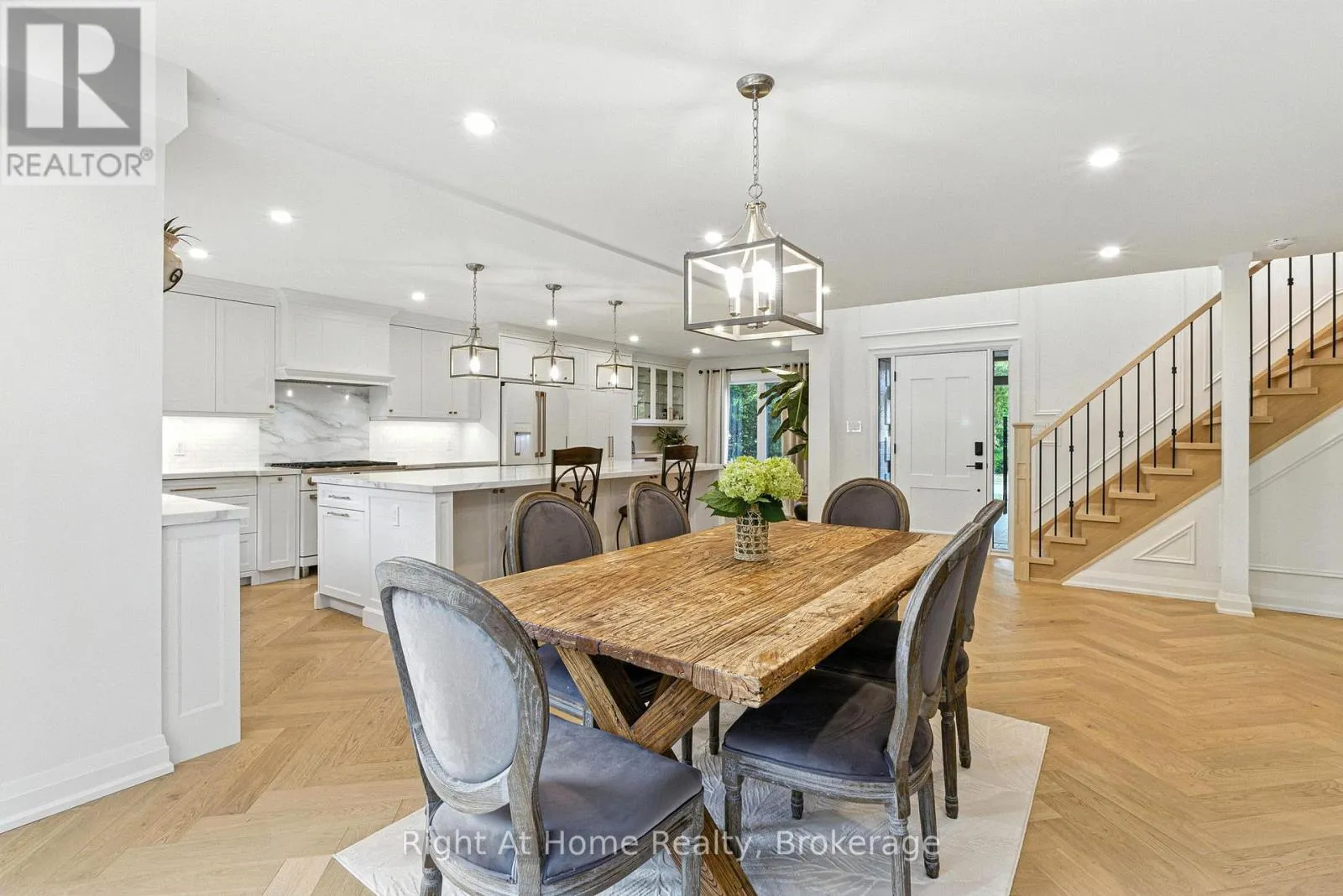 Cross Streets: Sixth Line/Munn's Avenue. ** Directions: Sixth Line to Munn's Ave./ head West on Munn's Ave/ Turn Right On Poole Drive. Beautiful home in one of the most sought-after communities in Oakville.Premium location on a quiet street in the heart of River Oaks. 3+1 bedrooms+ den/office and 4 bathrooms.Once you step in the house you will see a beautifully designed open concept home with a lot of light from the large second floor windows.Elegant and sophisticated European white oak engineered hardwood floors throughout the entire house even in the basement. Main floor hardwood laid in herringbone pattern.Custom designed kitchen offers a clean,open-concept layout with high-end finishes.The large centre island with quartz countertops making it ideal for entertaining.Full-height backsplash create a modern, elegant look.Top-of-the-line Cafe collection white matte appliances, including a 6 burner gas range and French door refrigerator.A cozy built-in desk area with glass-front cabinets adds versatility.Dining room offers a perfect blend of warmth and sophistication, ideal for entertaining or intimate family meals.The space is bathed in natural light from expansive sliding glass doors that open to a lush, private backyard.Family room exudes warmth and sophistication, making it the perfect space for relaxation and entertaining.The focal point is a striking whitewashed stone fireplace,elegantly framed with a rustic wooden mantel.Well-appointed mudroom offers practical storage with custom built-in cabinetry,a wood bench & convenient drawers for organization.Custom white oak staircase with elegant moulding wall leads you to the second floor where you'll find 3 generously sized bedrooms, each with B/I closets.The spacious primary bedroom is a true retreat , complete with luxurious 5 piece ensuite bathroom with infloor heating. 7.5" Eng. White Oak Hardwood throughout the second floor. 2nd oak staircase leads you to the basement which flows into additional living spaces: 1 bedroom, 3 pc. bathroom, 1 den/office and spacious open concept area ideal for relaxation. (id:27476)
