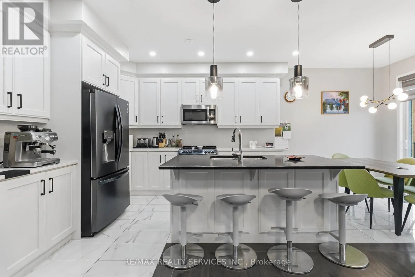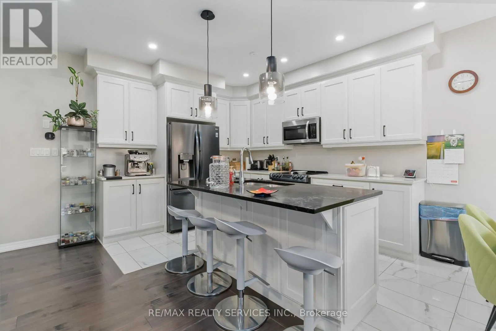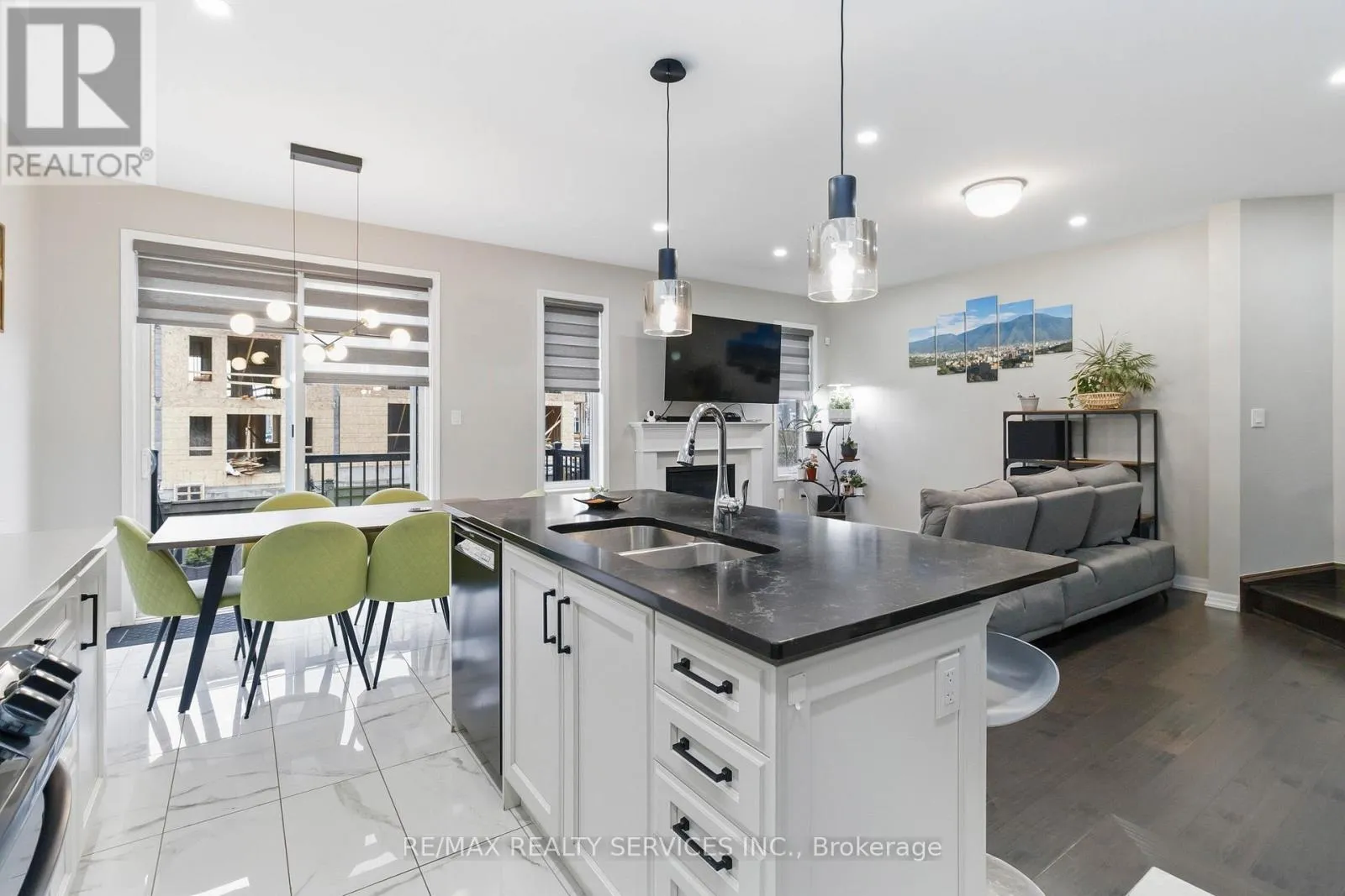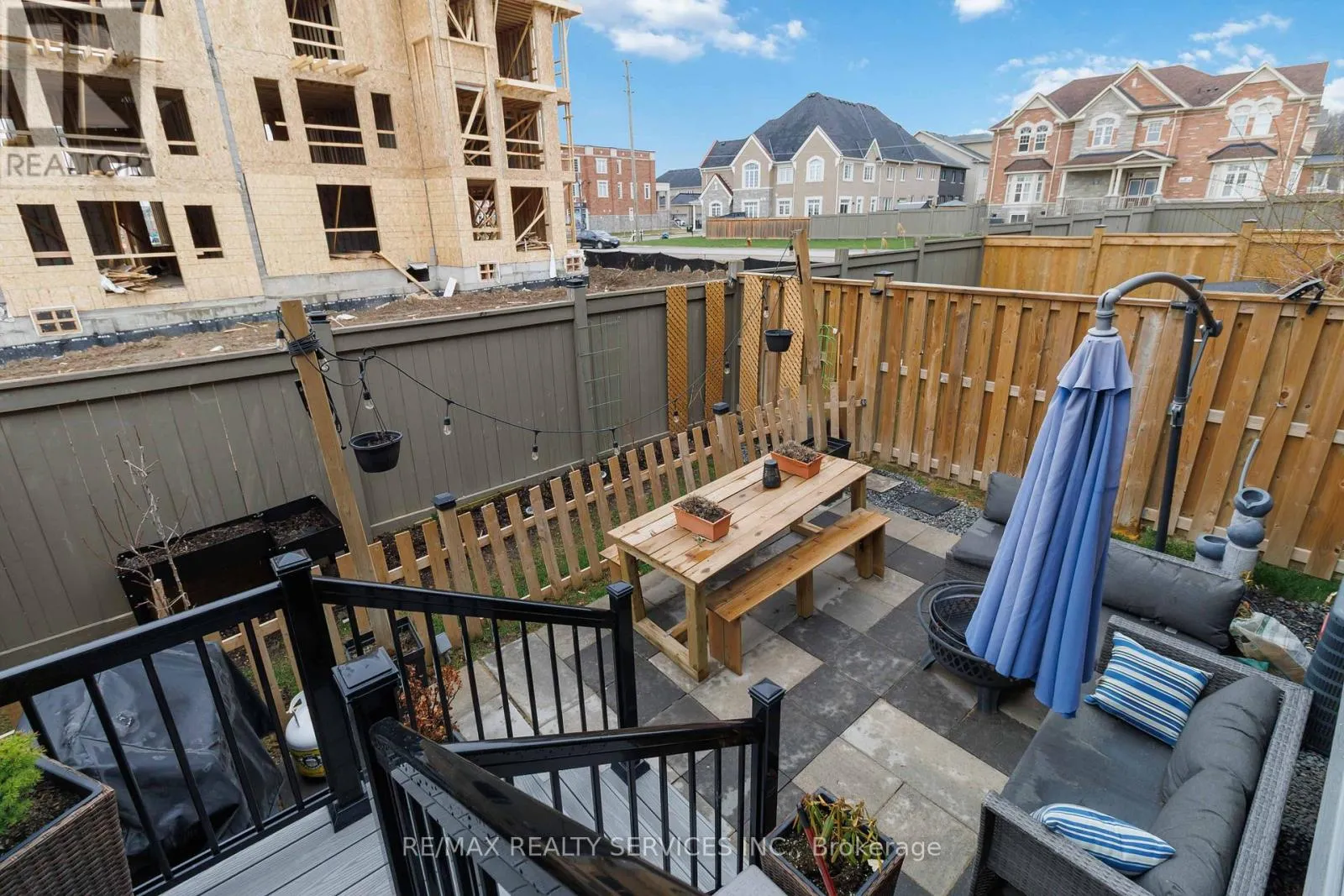 Burnhamthorpe and Sixth Line Welcome to this beautiful 2-storey townhome in the highly sought-after North Oakville community, ideally located close to all amenities, top-rated schools, parks, Oakville Hospital, Highway 403, 401 & 407. The second floor offers 3 spacious bedrooms, 2 full bathrooms, and the convenience of upper-level laundry-perfect for modern family living. The main floor features elegant hardwood flooring, a stylish powder room, and an upgraded kitchen complete with stainless steel appliances and sleek quartz countertops, ideal for both everyday use and entertaining. The fully finished basement provides additional living space, including an extra bedroom and a full attached bathroom-perfect for guests, extended family, or a private retreat. Enjoy a beautifully finished backyard with a brand-new deck, creating the perfect setting for outdoor relaxation and summer gatherings. (id:27476)