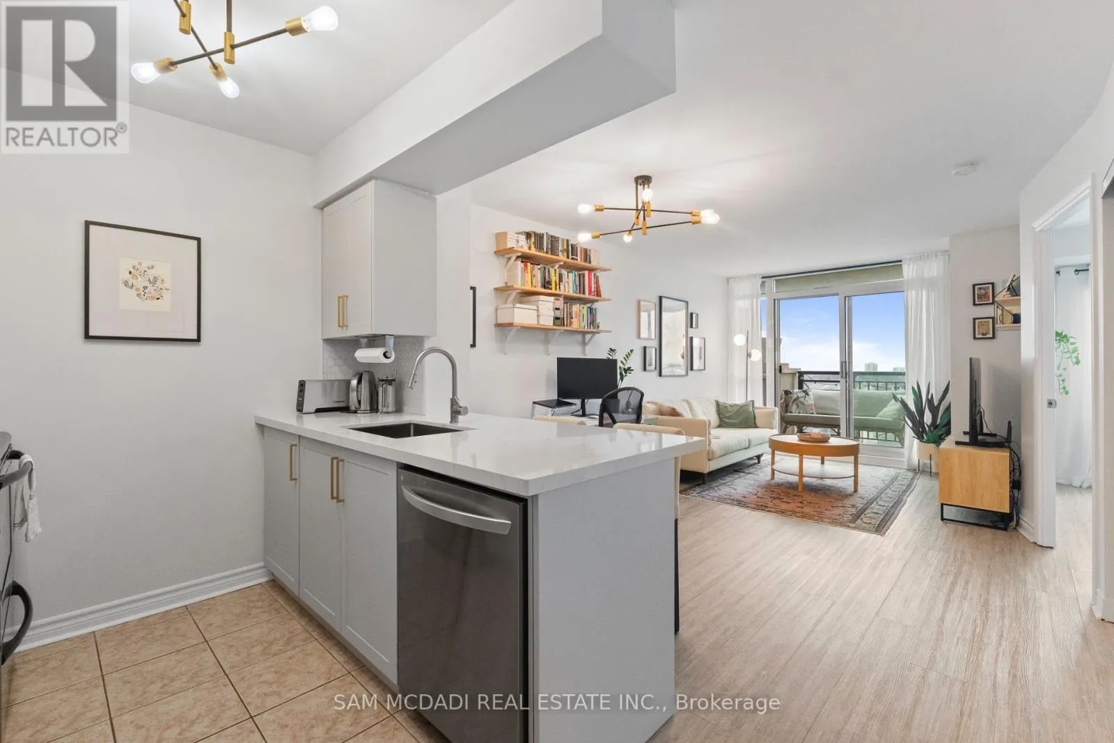 Cross Streets: Oak Park Blvd & Central Park Dr. ** Directions: Dundas Street E & Traf. Welcome to this beautifully updated 9th-floor residence offering breathtaking, unobstructed views from your private balcony. This bright and modern 1-bedroom condo showcases a thoughtfully renovated kitchen featuring quartz countertops, a stylish backsplash, stainless steel appliances, and a convenient breakfast bar-perfect for both everyday living and entertaining. Enjoy seamless laminate flooring throughout, a spacious bedroom complete with a walk-in closet, and an updated 4-piece bathroom. Added conveniences include in-suite laundry and rare two parking spaces.Set within a meticulously maintained courtyard-style community, residents enjoy access to exceptional amenities including a large outdoor pool, lounge area with BBQ patio, sauna, gym, party room, visitor parking. Ideally located in the heart of Oakville's Uptown Core, you're just steps to trendy cafes, boutique shopping, scenic trails, and lush green spaces including Memorial Park. With easy access to transit and major highways, this is an ideal home for commuters and lifestyle seekers alike. (id:27476)