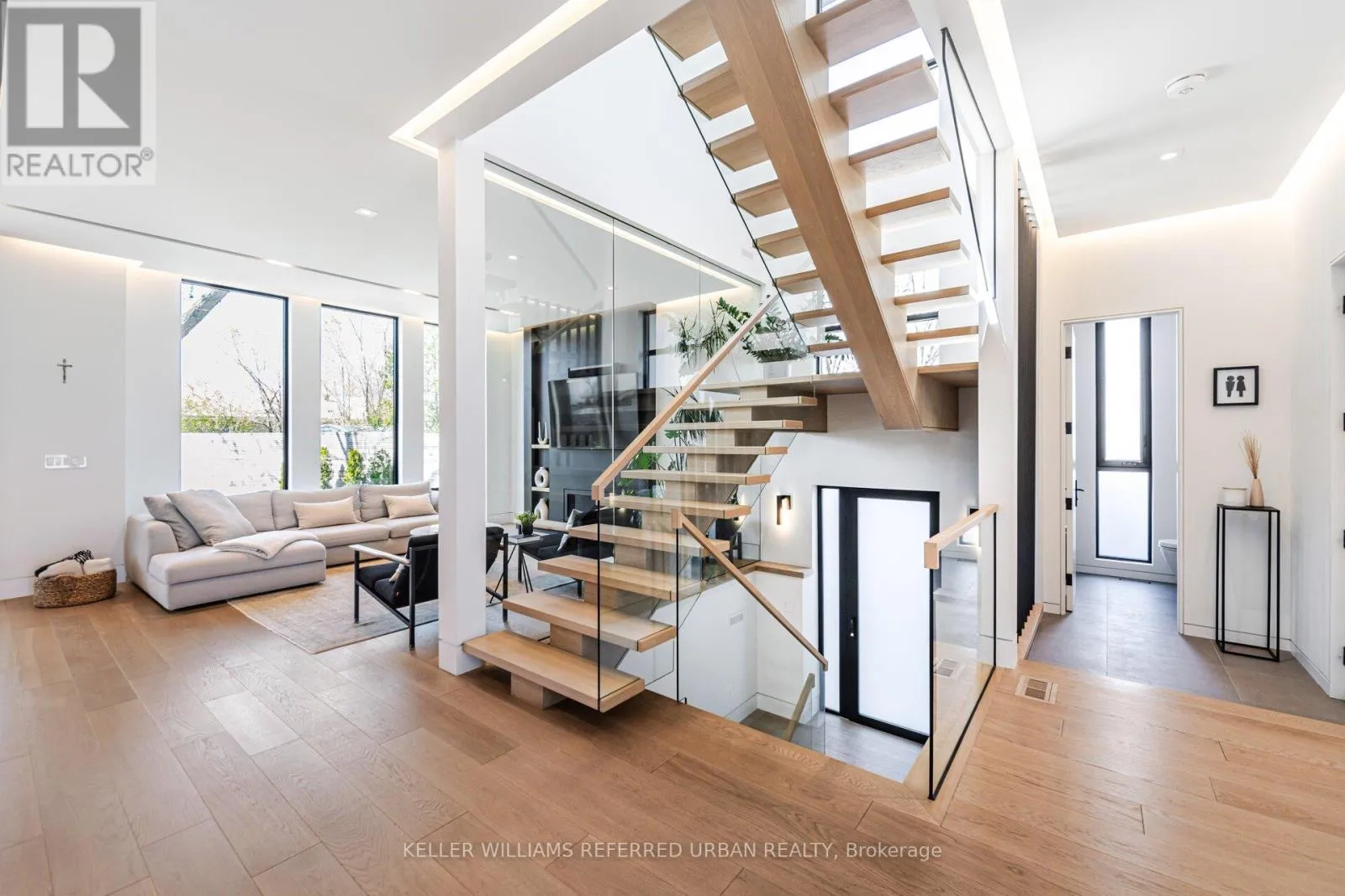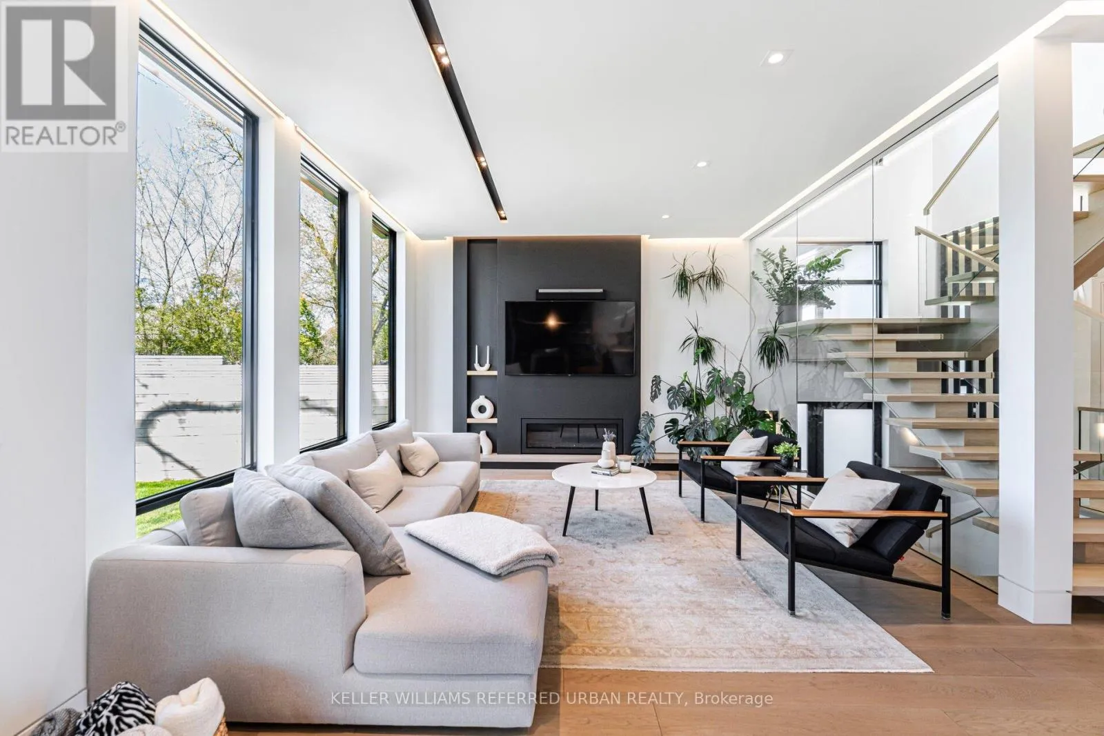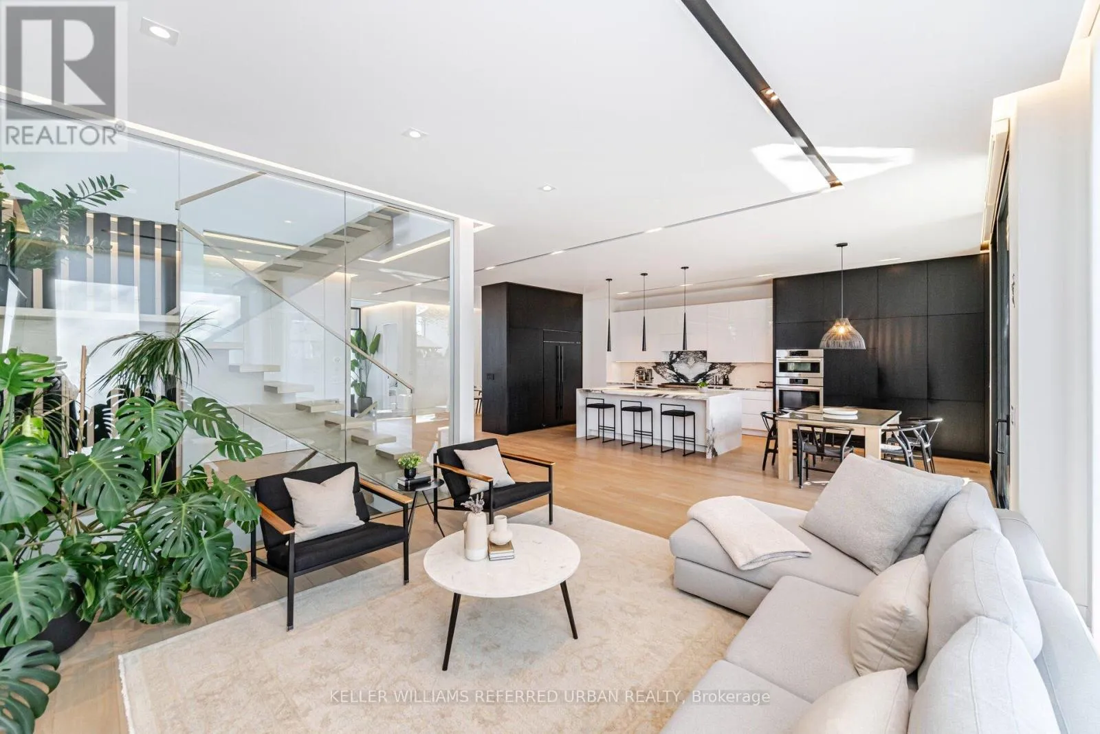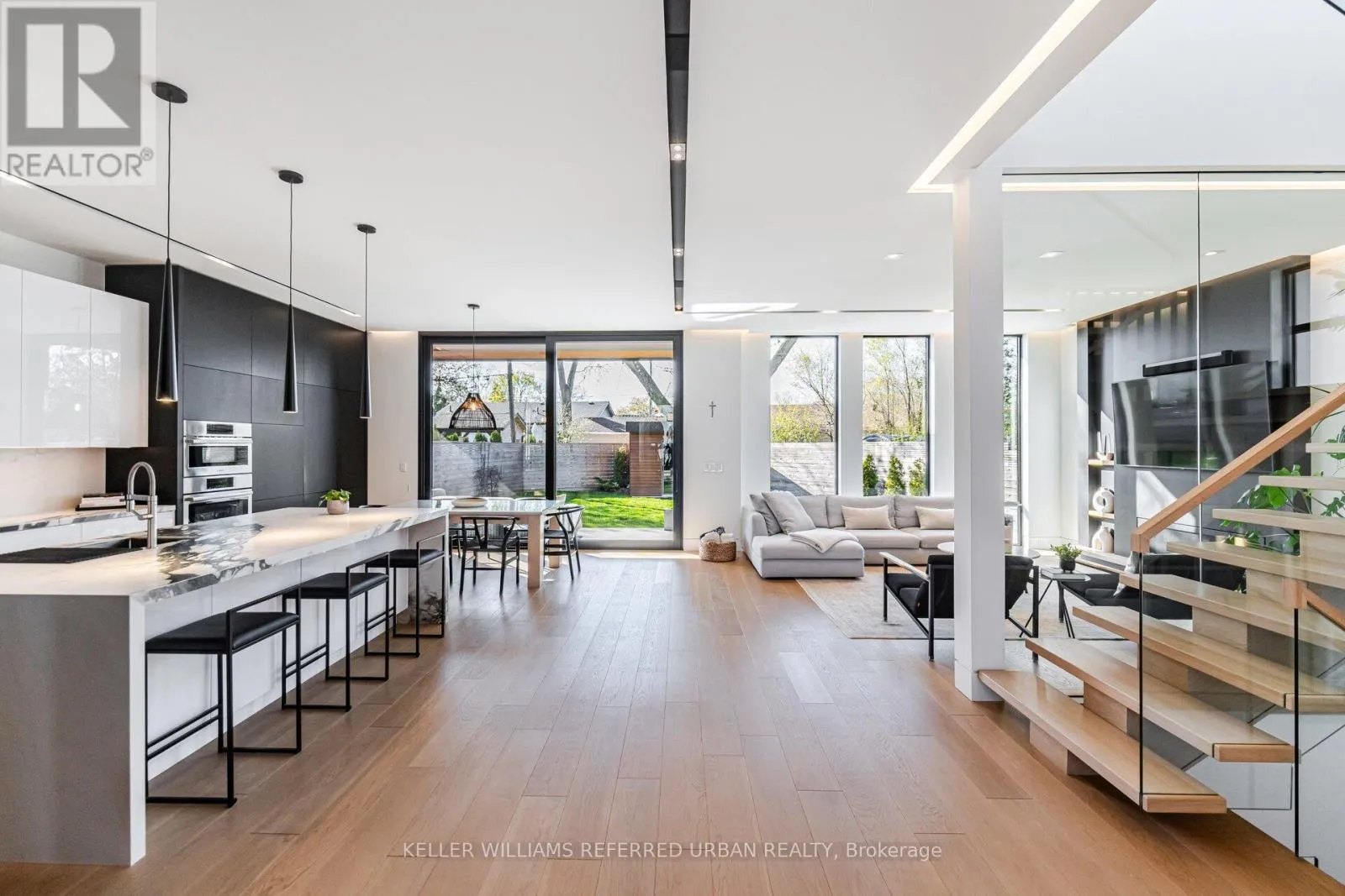 Rebecca/Third Line Step into the pinnacle of modern elegance with this stunning custom-built executive home, nestled in the highly sought-after heart of Southeast Oakville. Offering a seamless blend of sophisticated design, premium finishes, and an abundance of natural light. From the moment you enter, you'll be captivated by the open and intelligently configured interior layout, soaring 10' floating ceilings with cove lighting, and floor-to-ceiling windows that fill the space with sunlight. Every detail has been meticulously crafted, from the European white oak engineered hardwood floors to the 8' solid core doors, flush trim, and hidden anchored glass railings that exude contemporary sophistication. The heart of the home is the designer kitchen, featuring an oversized island, 10' cabinetry, and top-of-the-line appliances, perfect for entertaining or enjoying quiet family moments. The main floor flows effortlessly into a spacious living area, complete with a gas fireplace, built-in surround sound, and motorized blinds for ultimate convenience. Upstairs, natural light continues to shine through skylights and oversized windows, illuminating four generously sized bedrooms, each with its own ensuite bathroom and custom-built walk-in closets. The bespoke laundry room, with floor-to-ceiling cabinetry, adds a touch of practicality and style. The finished basement offers additional living space, ideal for a home theatre, gym, or playroom, while the mono-stringer staircase and glass railings create a striking visual statement from top to bottom. This home is more than just a residence; it's a lifestyle. With its unparalleled craftsmanship, high-end finishes, and prime location in one of Oakville's most desirable neighbourhoods, this property is truly Luxury at Its Finest. Don't miss the opportunity to experience the intricate quality and modern elegance of this exceptional home. (id:27476)