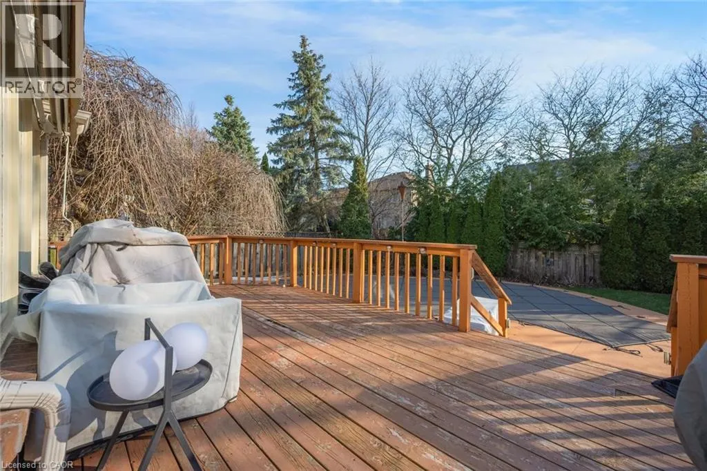 Nottinghill Gate/Pilgrims Way Exceptional opportunity in one of Oakvilleâs most desirable, established neighbourhoods. Set on a beautifully treed lot, this 4+1 bedroom, 4 bathroom detached residence offers a spacious and functional layout with outstanding potential. An open foyer with a spiral staircase creates an elegant first impression, leading to well-appointed principal rooms including separate formal living and dining areas, ideal for both everyday living and entertaining. The kitchen features a breakfast nook with walkout to a large deck overlooking the private, fully fenced backyard, complete with mature trees, lush greenery, and an in-ground pool. The main level also offers a generous family room with fireplace, 2-piece powder room and main floor laundry for added convenience. Upstairs, four well-sized bedrooms include a primary retreat with an expansive walk-in closet and private ensuite. The finished basement adds versatility with an additional bedroom, 2-piece bathroom, and a spacious recreation room with wet bar. Located close to top-rated schools, parks, and amenities, this property presents an exceptional opportunity to renovate, customize, or enjoy in a highly sought-after Oakville community. Taxes estimated as per cityâs website. Property is being sold under Power of Sale. Sold as is, where is. RSA. (id:27476)
